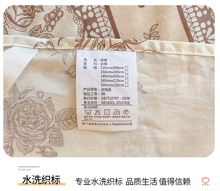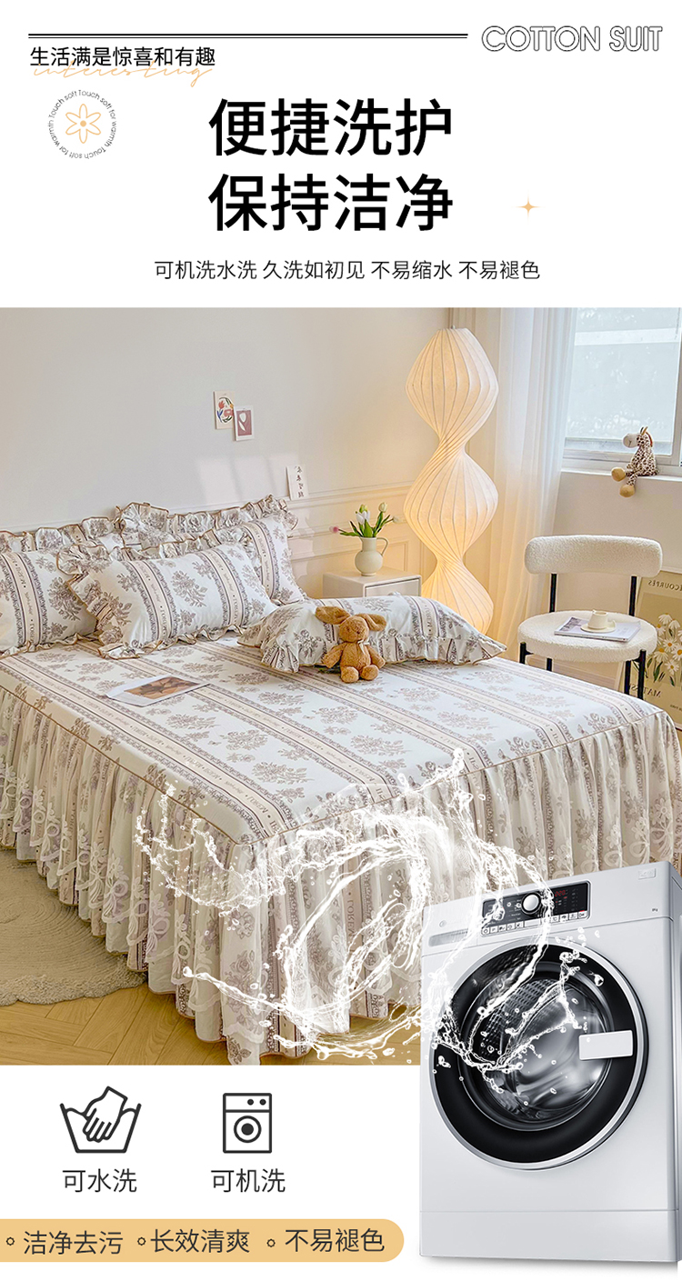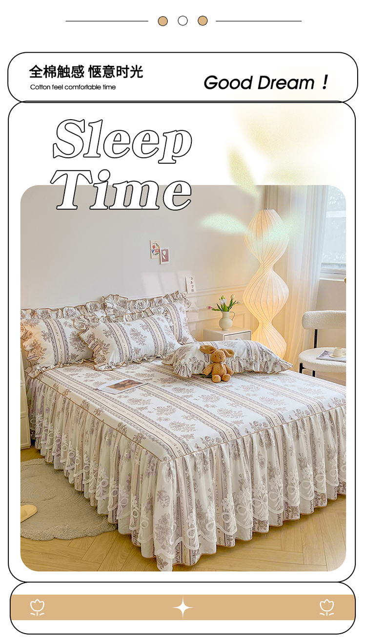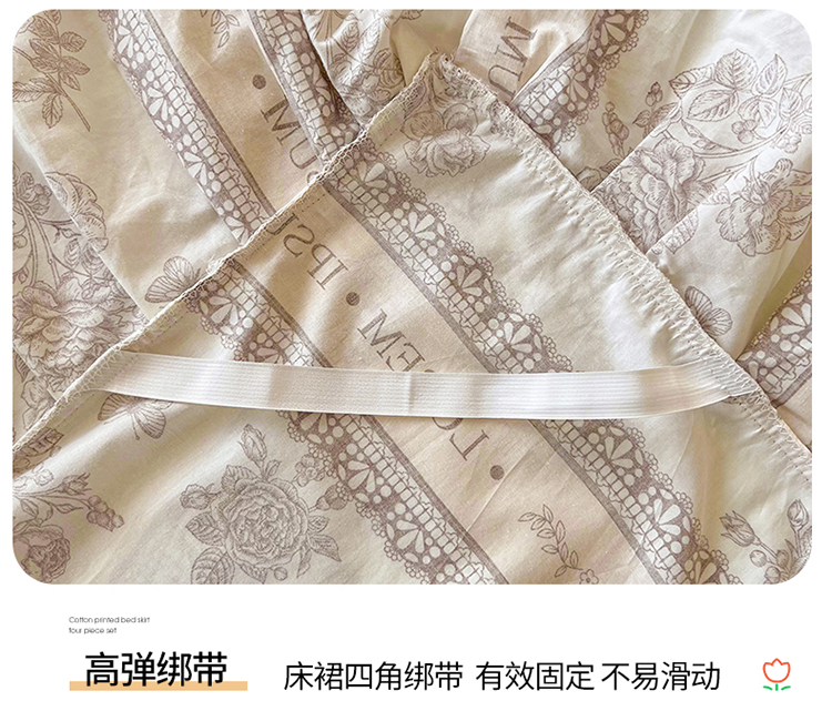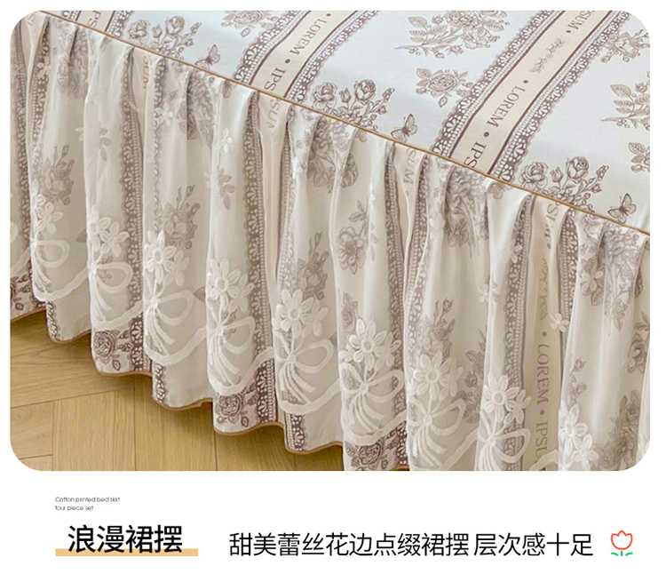 当前位置: 91家纺网 > 商品网购 > 床品套件 > 三件套 > 宜凡家纺 2023新款全棉印花单层床裙三件套 茵姿