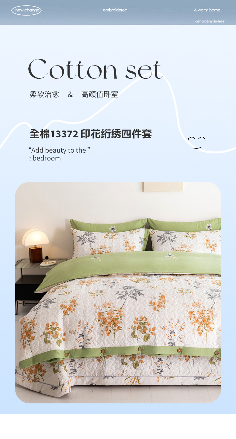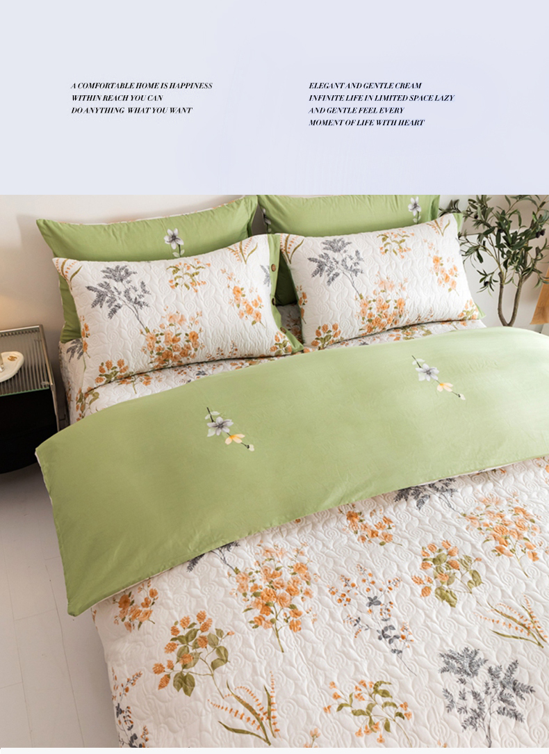 当前位置: 91家纺网 > 商品网购 > 床品套件 > 四件套 > 全棉普通四件套 > 优乐家纺 2023新款夹棉绗缝套件及单品系列-四件套 如梦花季