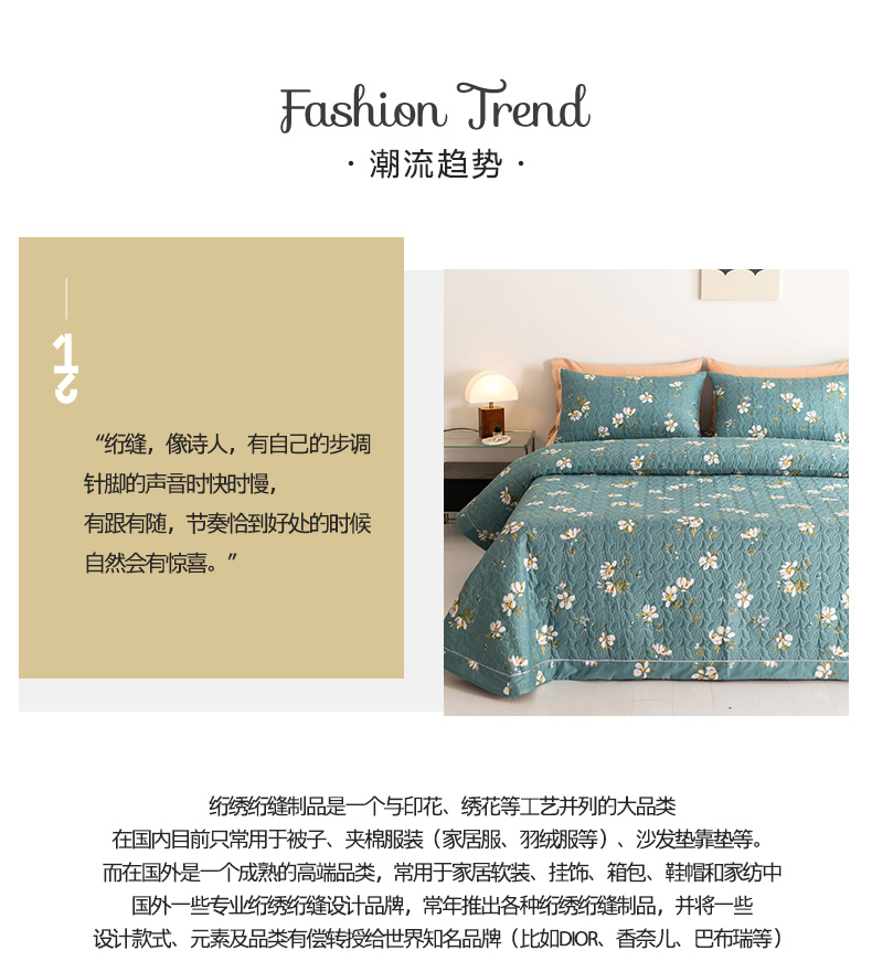 商品名称:优乐家纺 2023新款夹棉绗缝套件及单品系列-单床盖 仙草