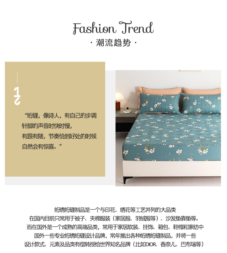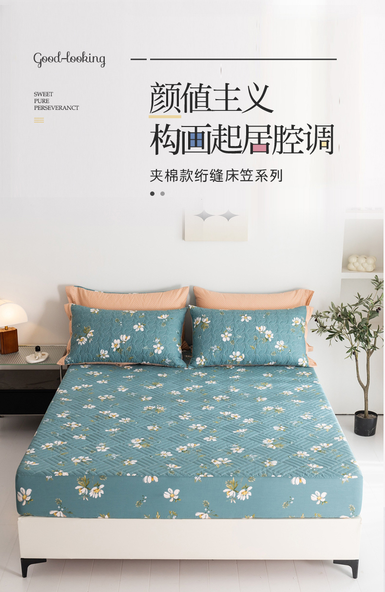 • 91家纺网 家纺一手货源 找家纺 优乐家纺 2023新款夹棉绗缝套件及单品系列-单床笠 仙草