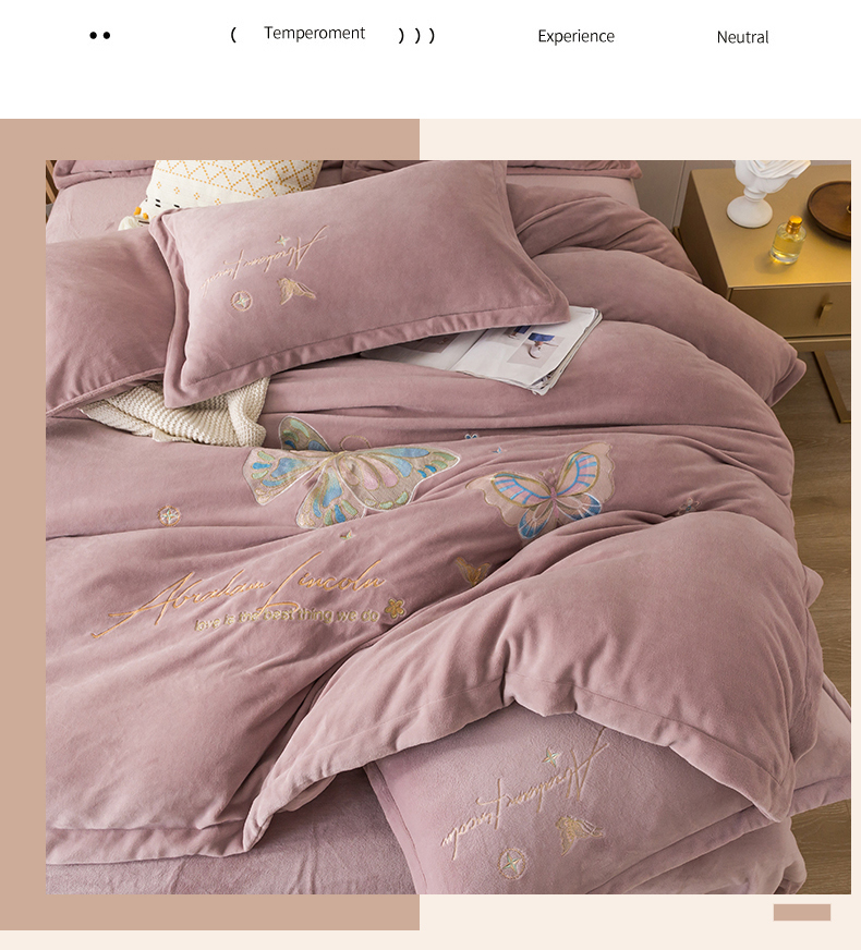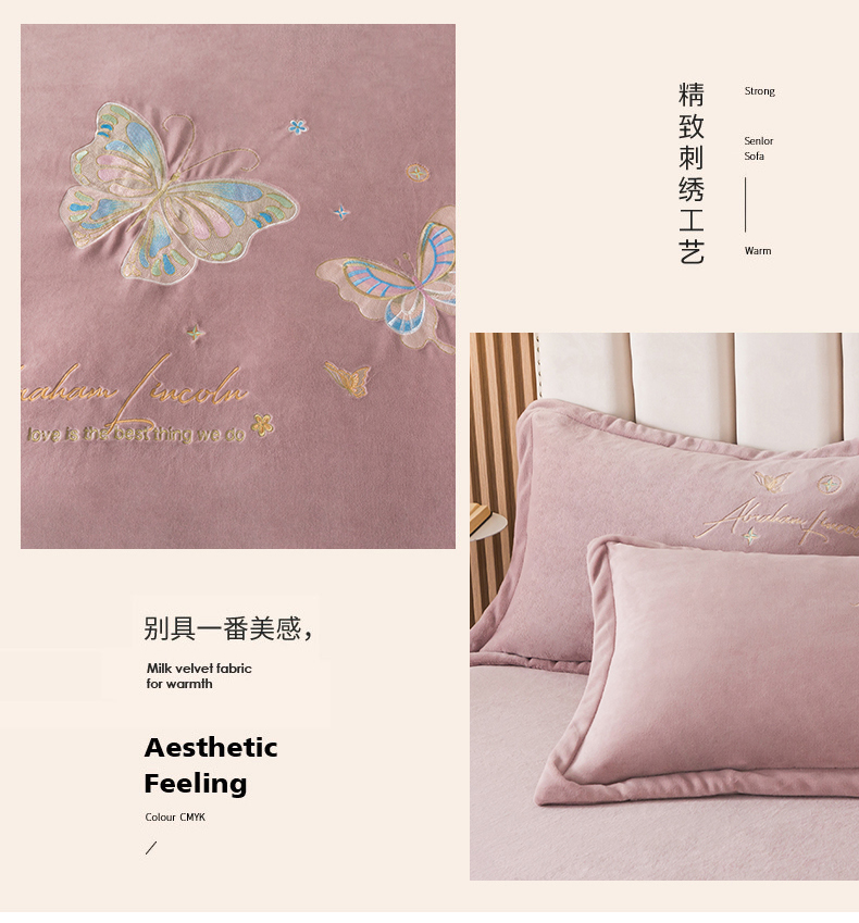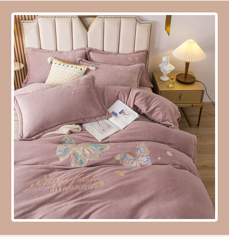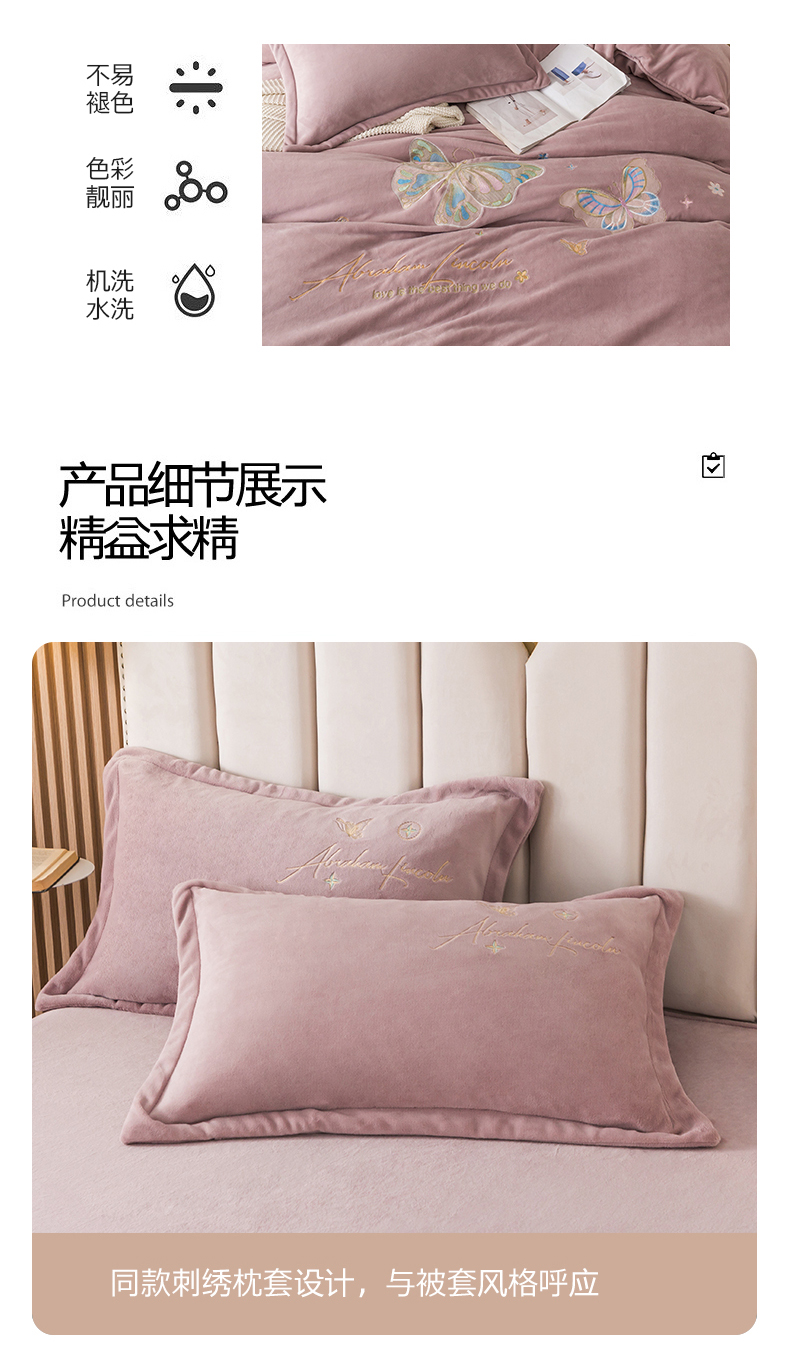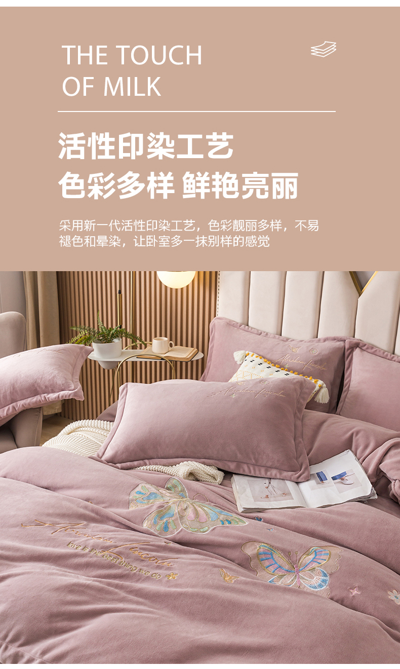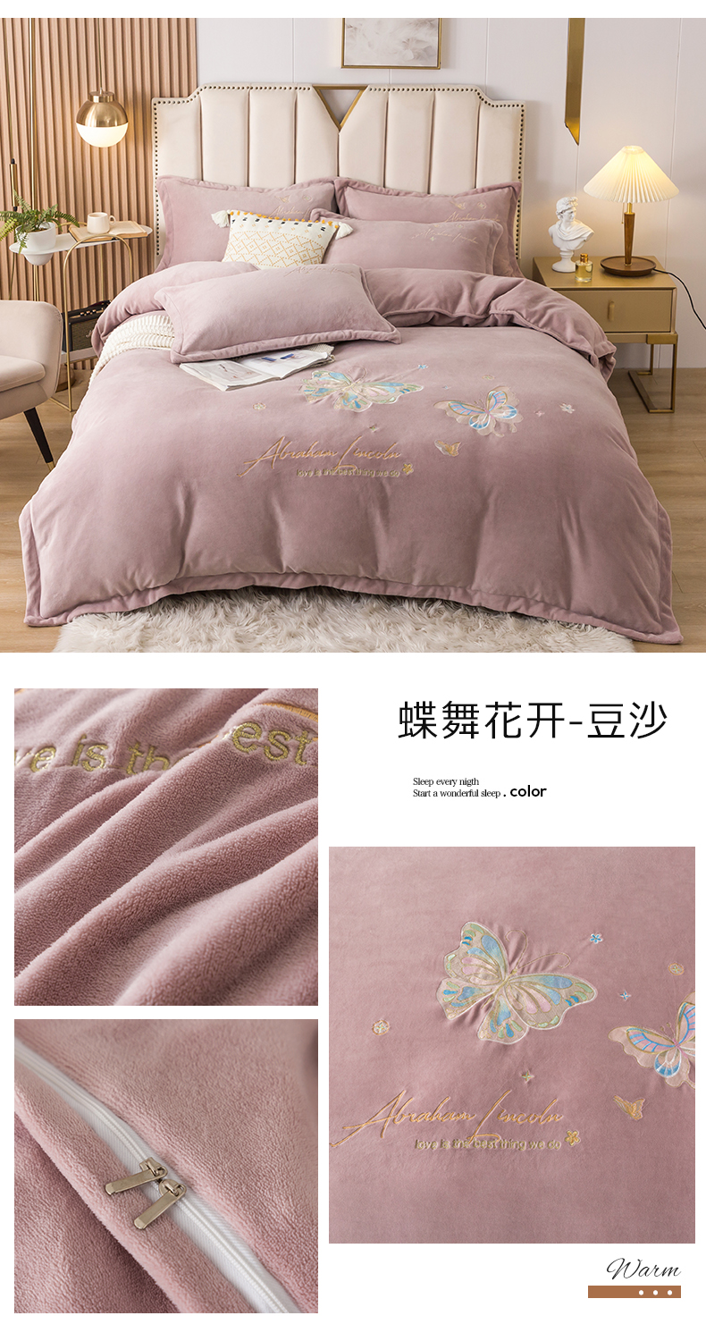 商品名称:找底底家纺 2023款220克全消光重工刺绣纯色牛奶绒四件套-蝶舞花开 蝶舞花开-豆沙