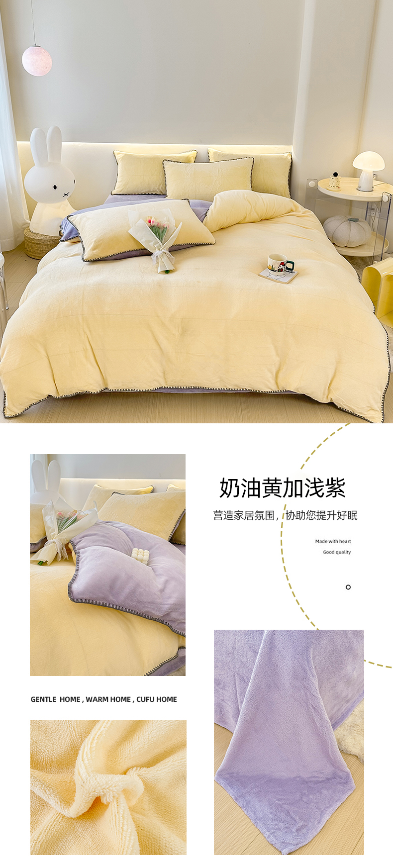 (总)迷仙巢家纺 2023新款双拼牛奶绒四件套,白加卡其,白加天空蓝,奶油黄加焦糖,奶油黄加浅紫,奶油黄加天空蓝,浅绿灰,浅紫加玉,天空蓝加灰,天空蓝加玉,玉加灰,玉加奶油黄
