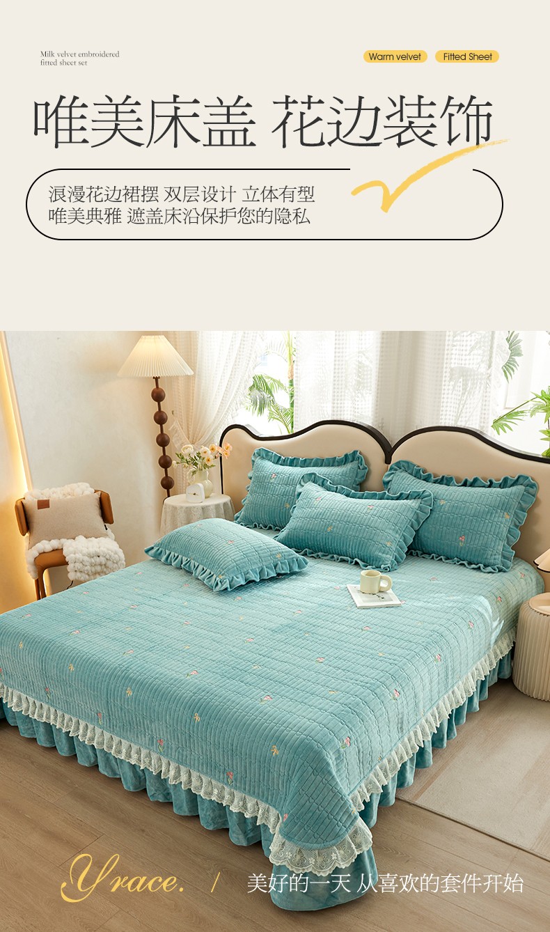 (总)宜凡家纺 2025新款兔绒提花牛奶绒夹棉床裙四件套,爱心 少女粉,爱心 粉紫,爱心 驼色,蝶舞 大红,蝶舞 米色,蝶舞 浅紫,蝶舞 玉色,简爱 苍青,简爱 豆沙紫,简爱 玉色,樱桃 苍青,樱桃 豆沙紫,樱桃 奶油白