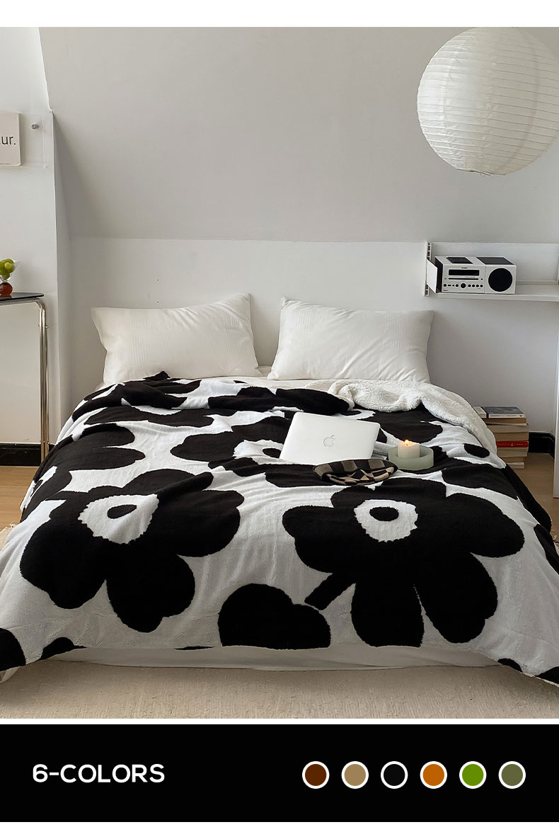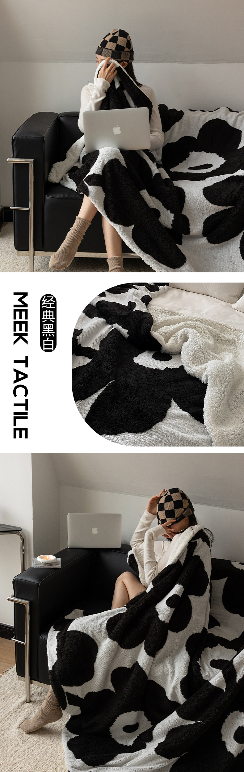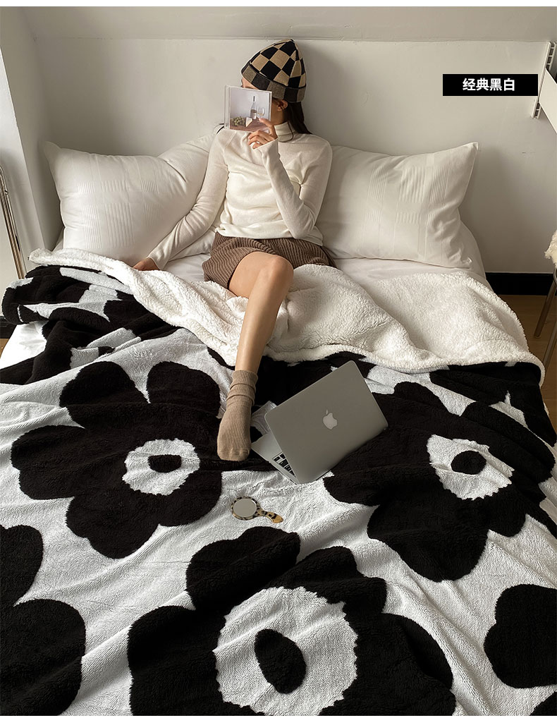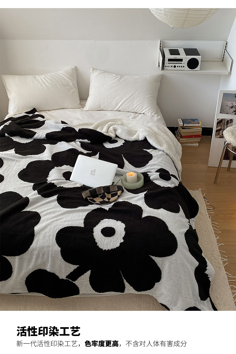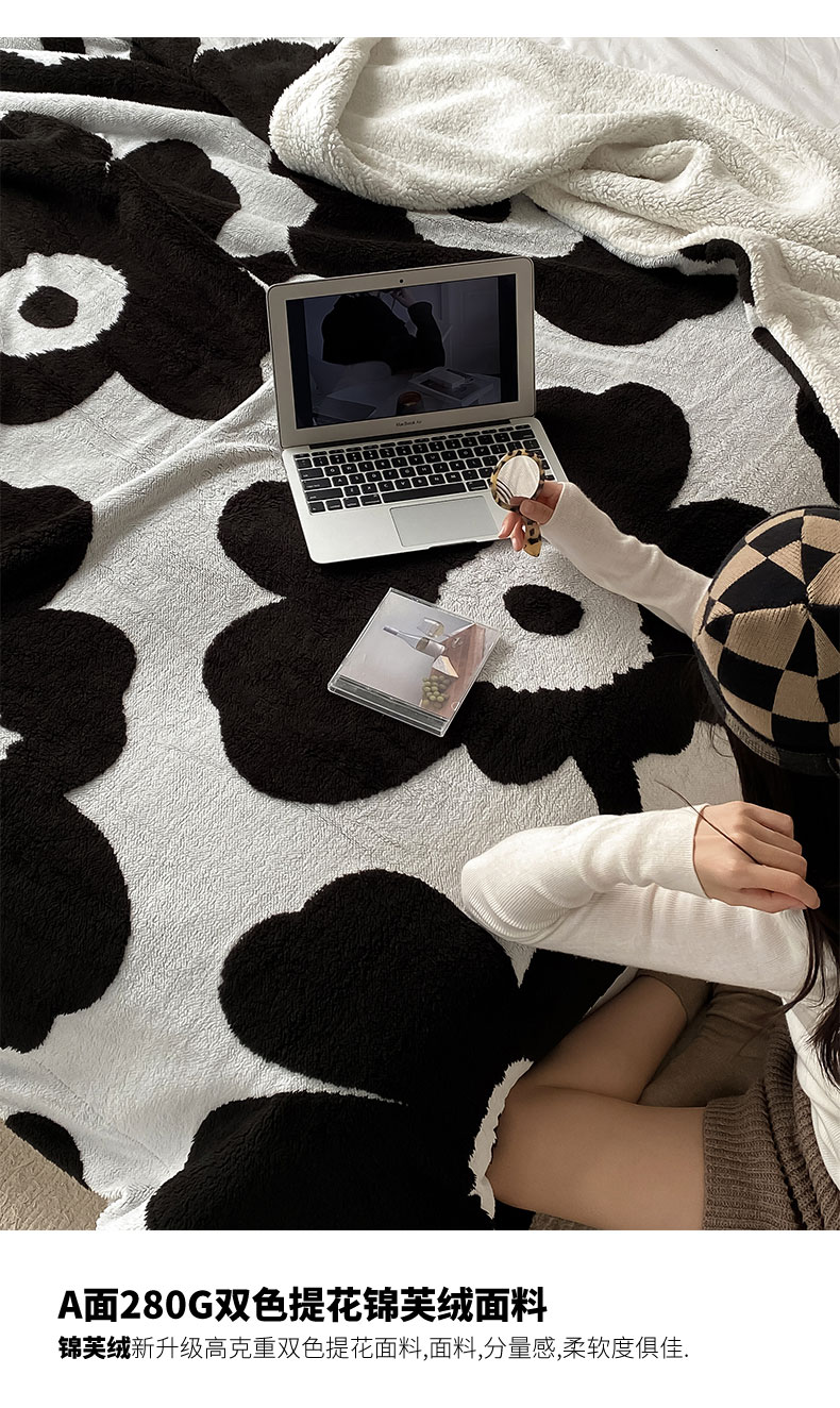 商品名称:安莱生活 2023新品专版锦芙绒太阳花毛毯 经典黑白