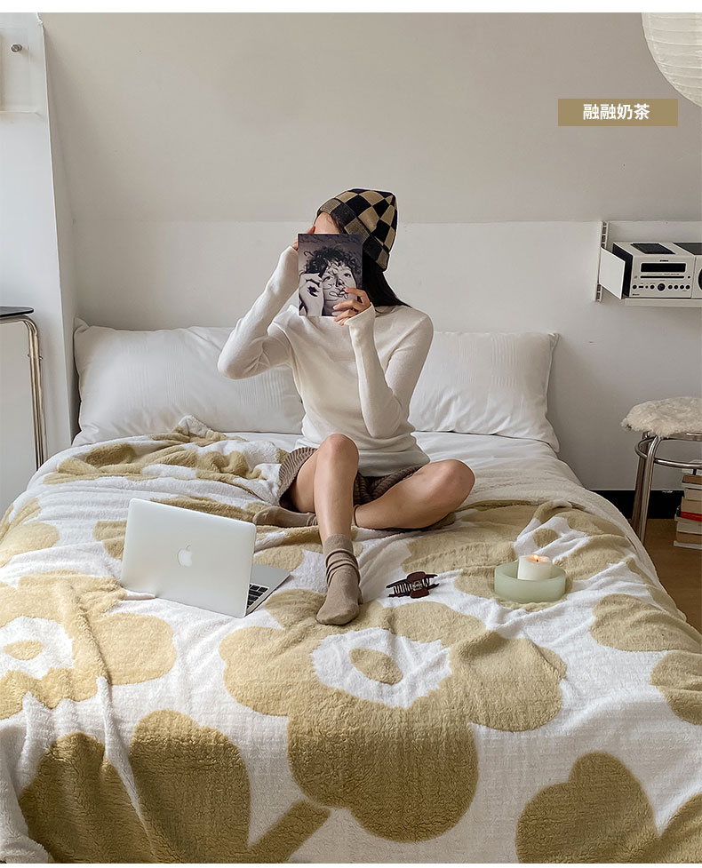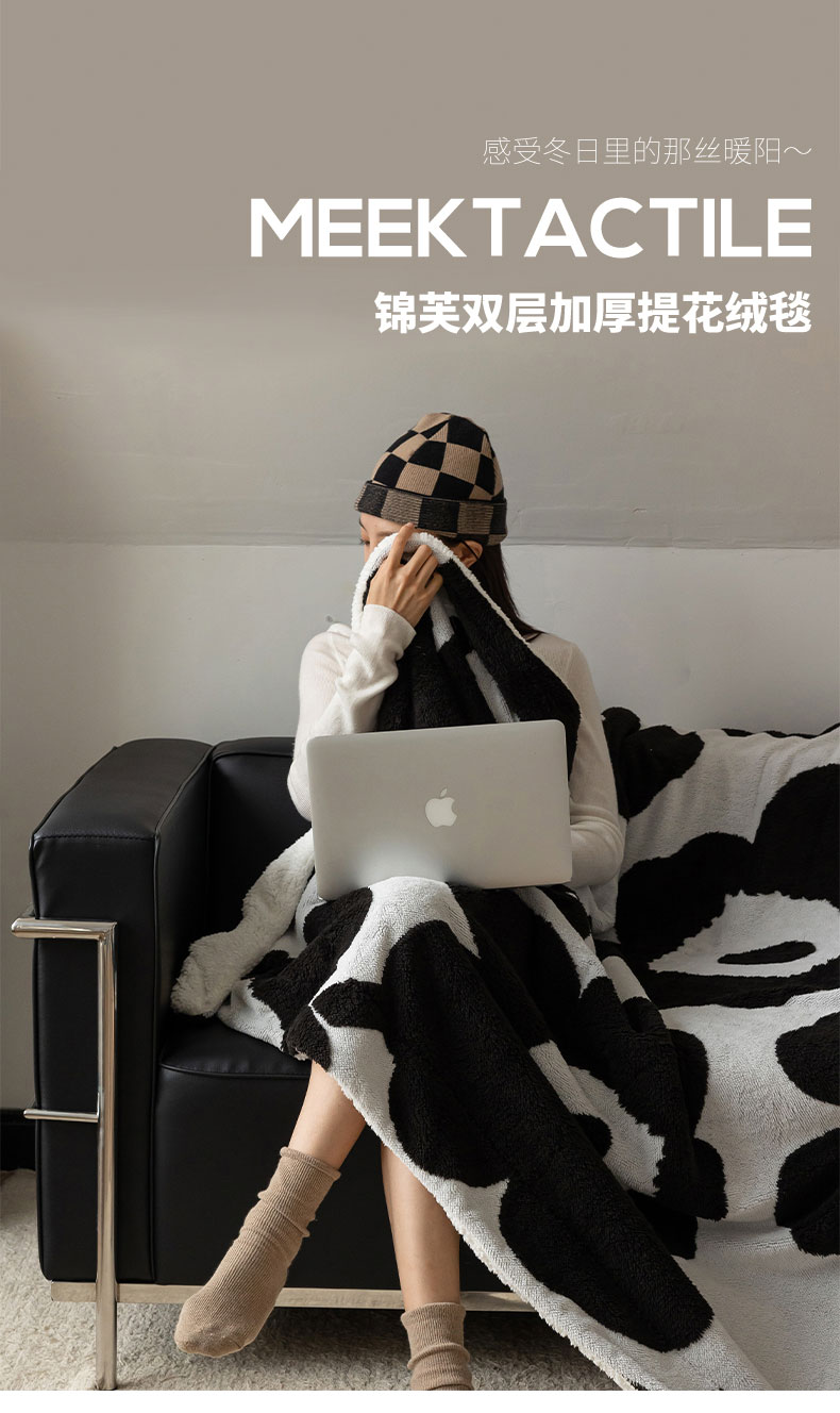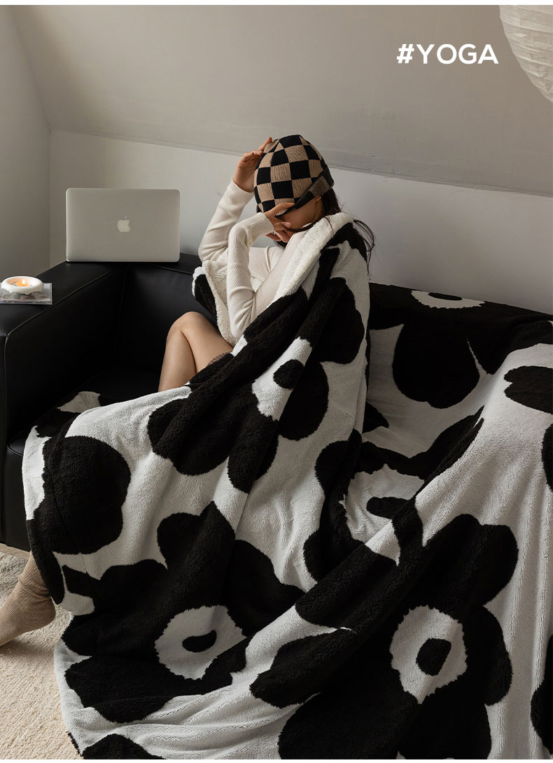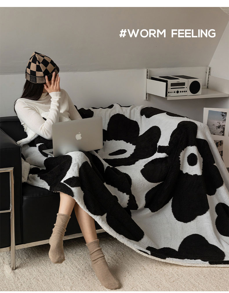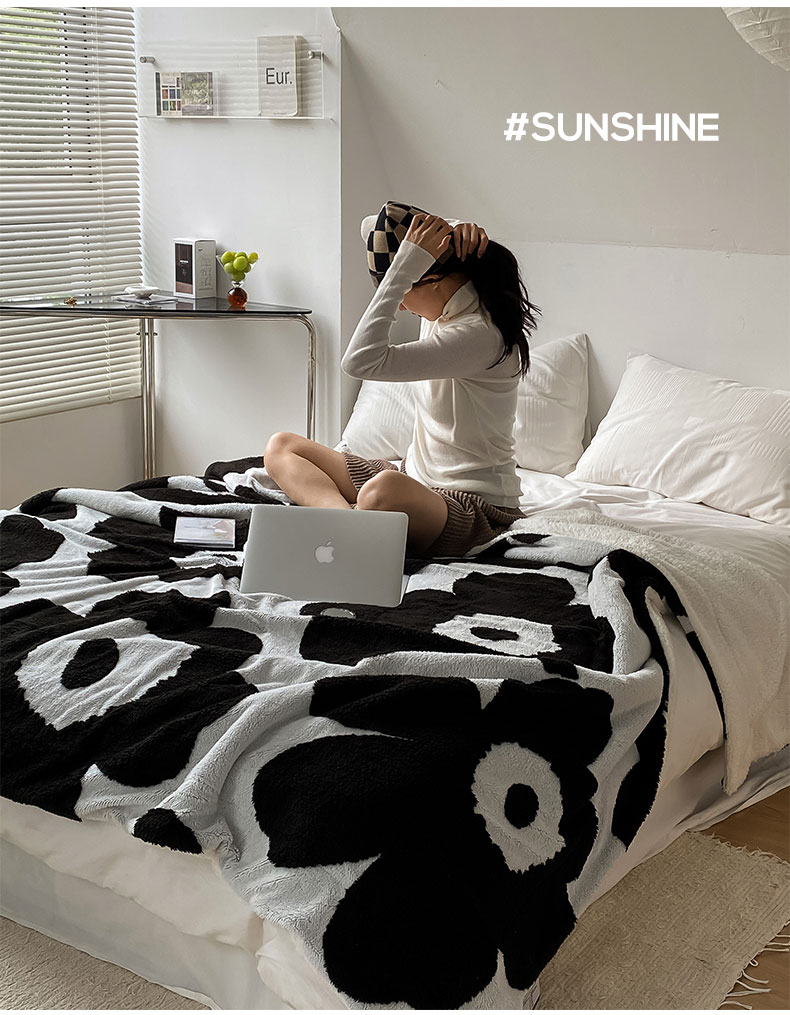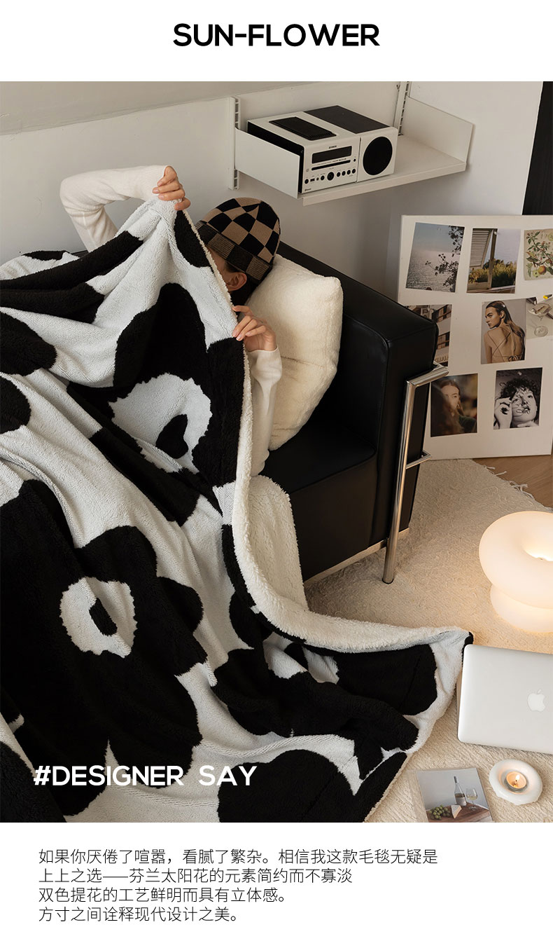 安莱生活 2023新品专版锦芙绒太阳花毛毯 经典黑白