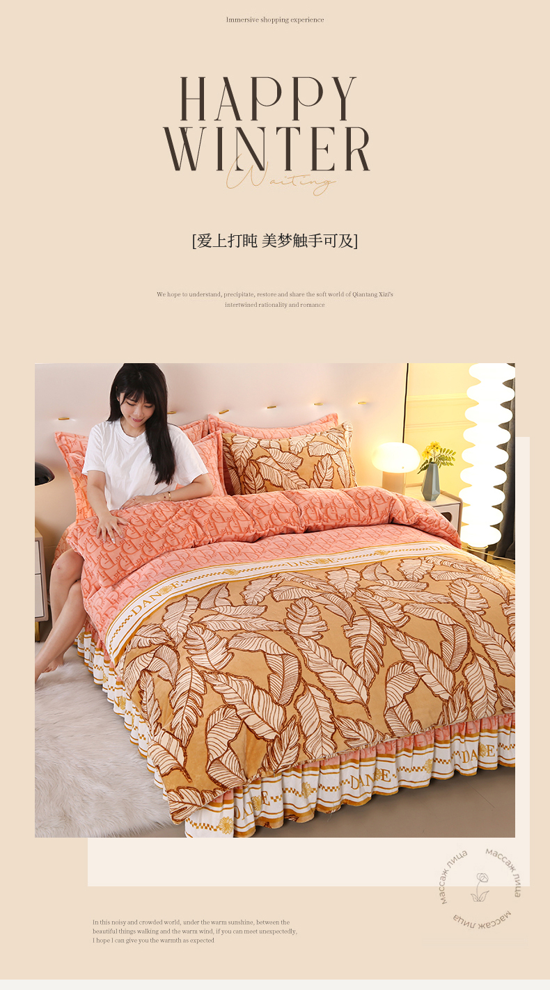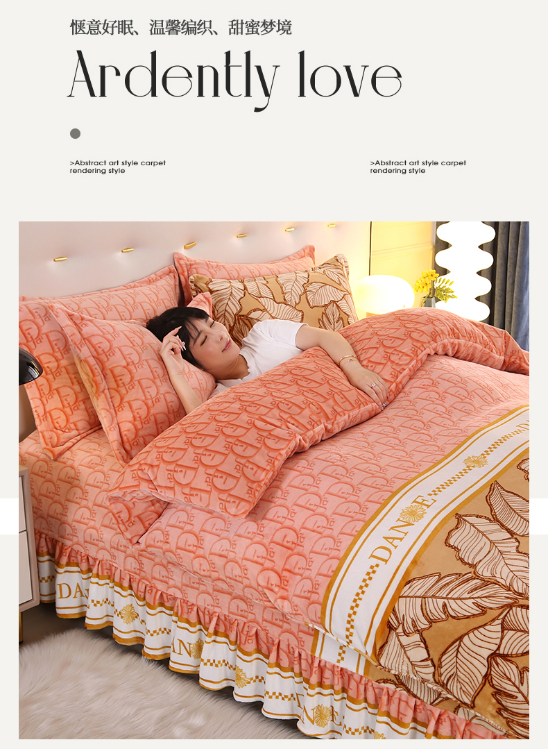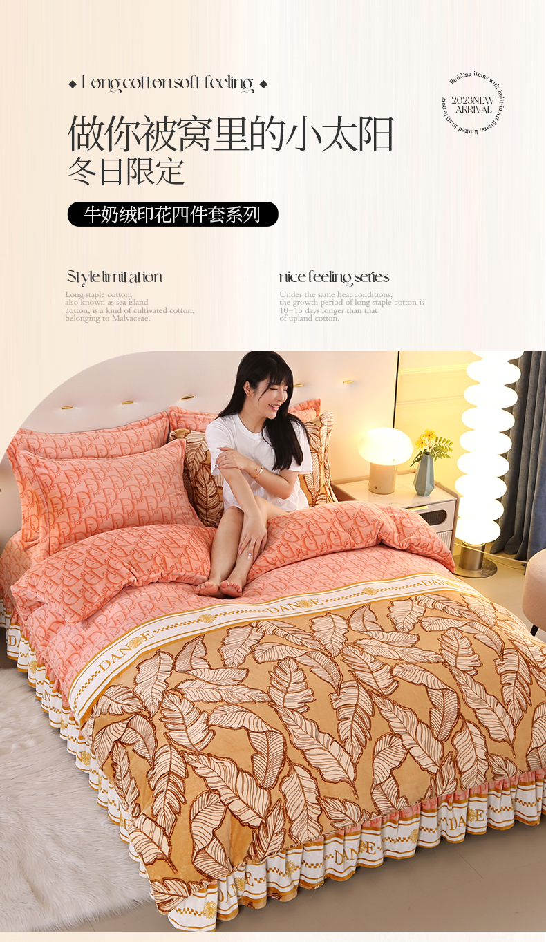 (总)爱洛 2023新款高克重印花牛奶绒四件套金貂绒四件套