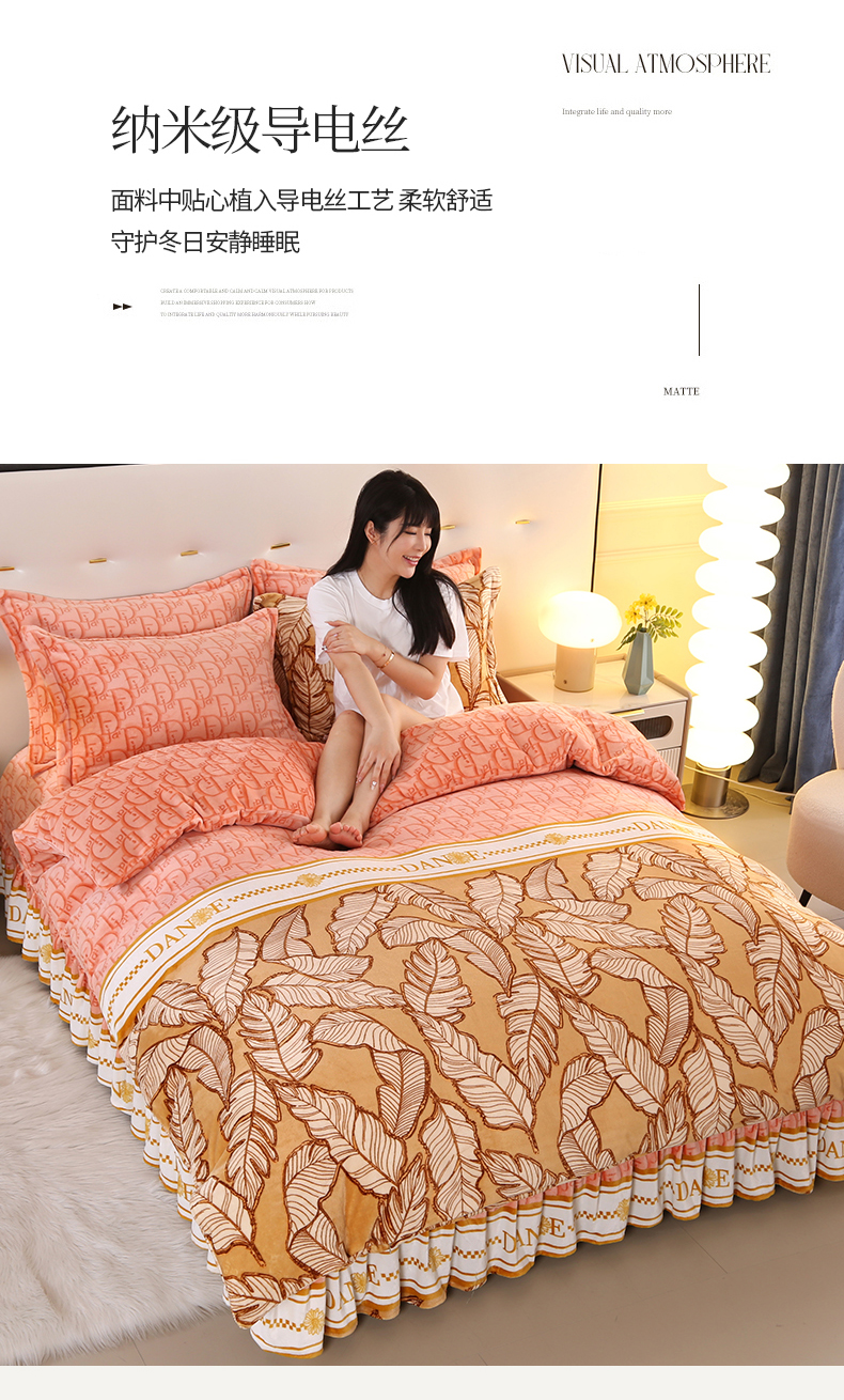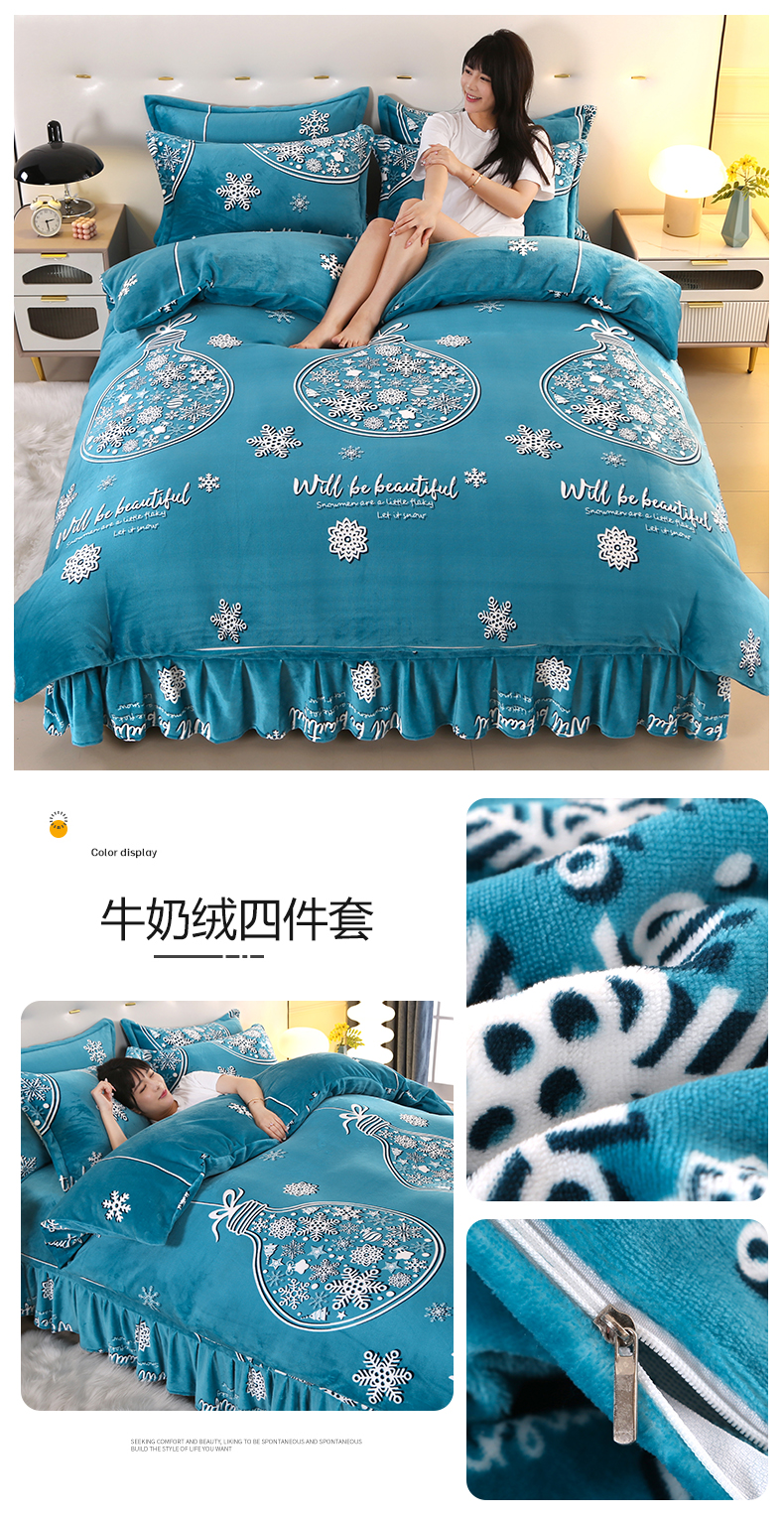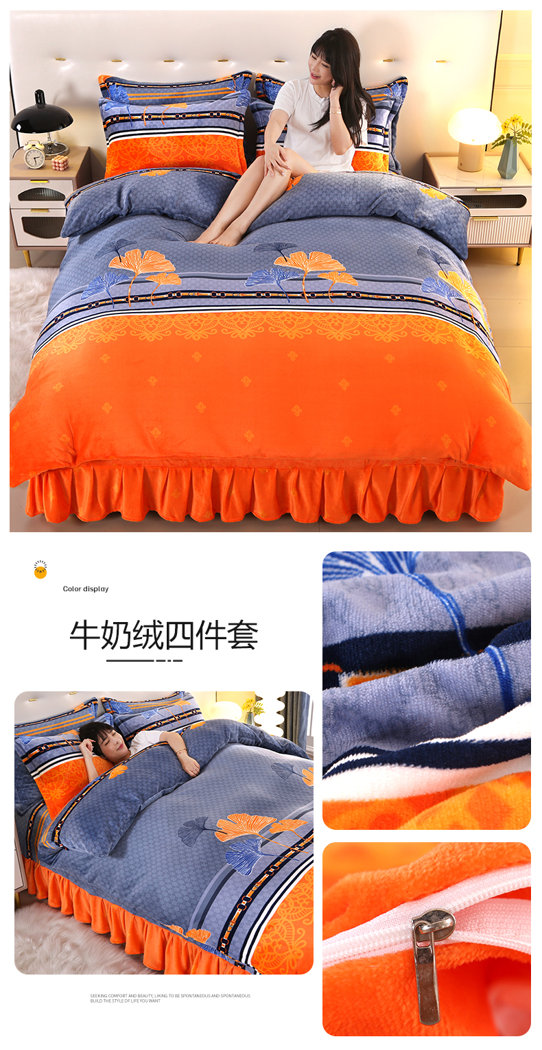 (总)爱洛 2023新款高克重印花牛奶绒四件套金貂绒四件套