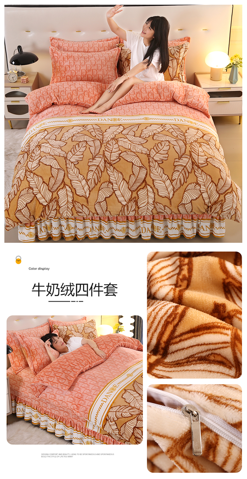 (总)爱洛 2025新款牛奶绒四件套牛奶绒雕花四件套纯色牛奶绒四件套,荷叶-粉白,荷叶-浅蓝,蝴蝶-粉玉,蝴蝶-浅绿,枫叶-绿,枫叶-粉,枫叶-蓝,枫叶-咖