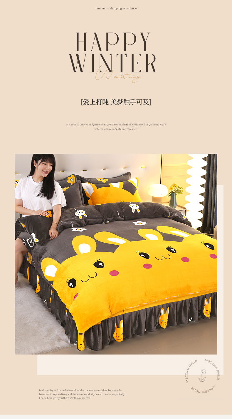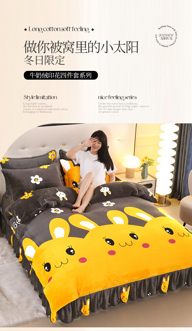 商品名称:爱洛 2023新款高克重印花牛奶绒四件套金貂绒四件套 萌萌兔