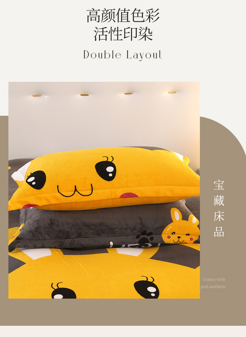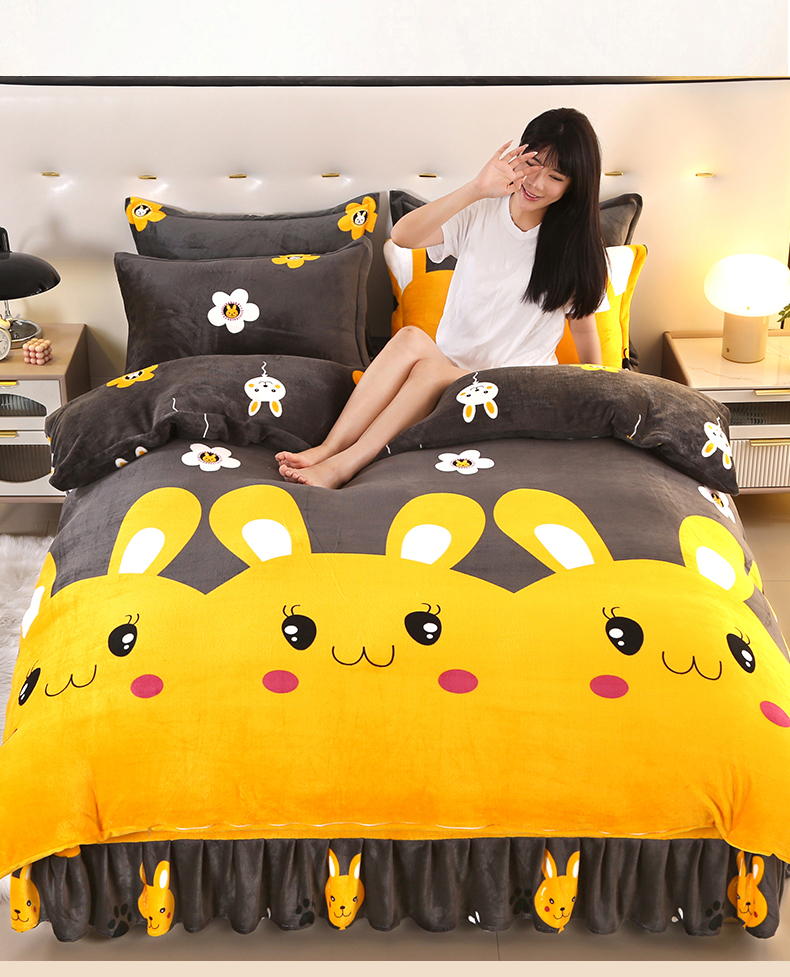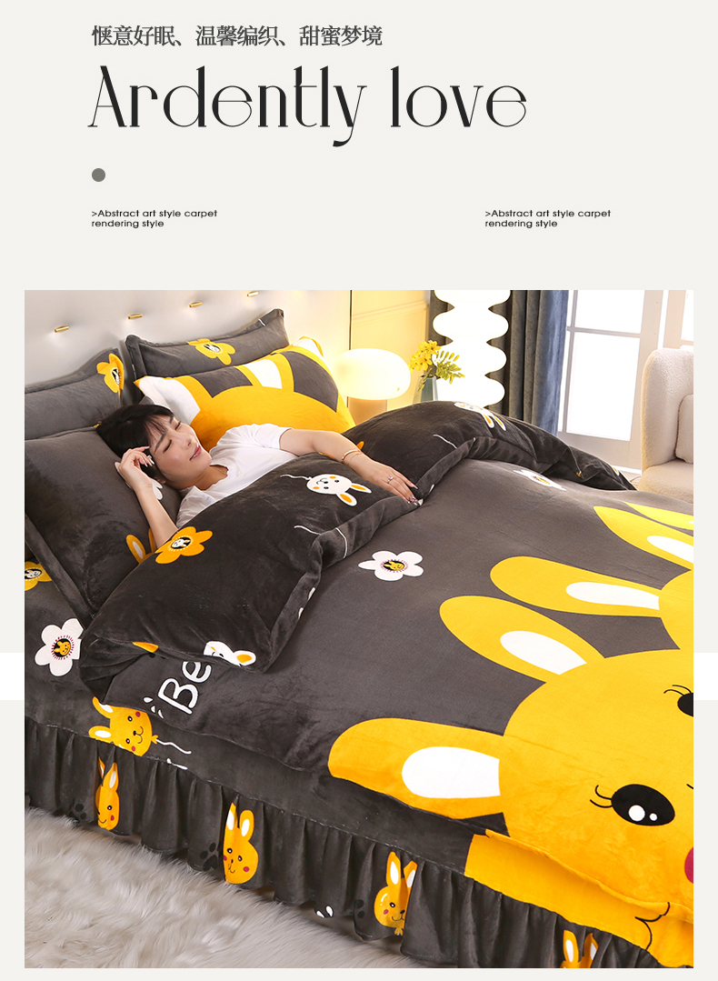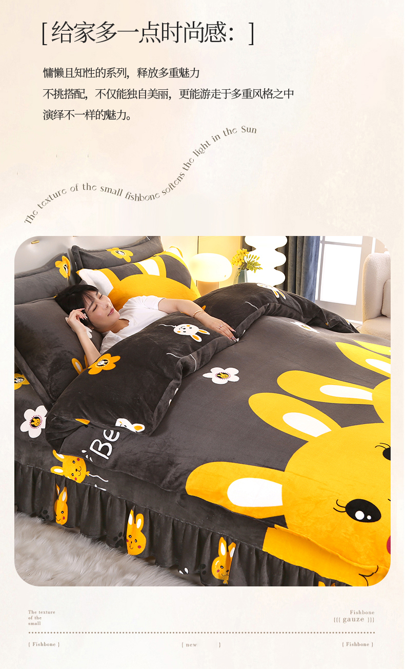 爱洛 2023新款高克重印花牛奶绒四件套金貂绒四件套 萌萌兔