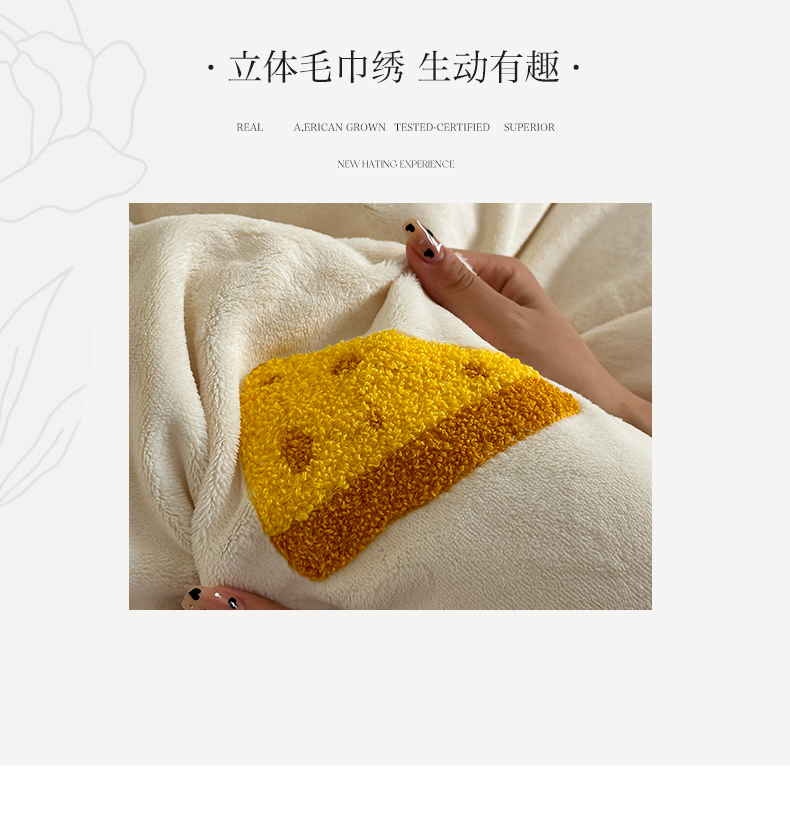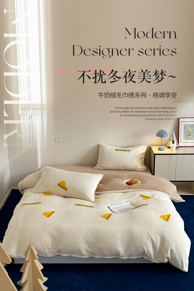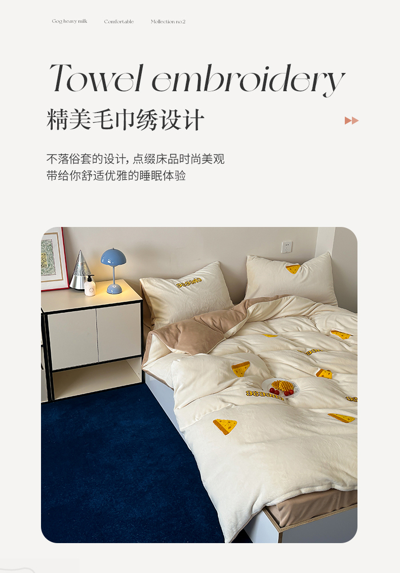 当前位置: 91家纺网 > 商品网购 > 床品套件 > 四件套 > 牛奶绒四件套 > 时年家纺 2023新款高克重牛奶绒立体毛巾绣四件套 充值会员优惠5元 起司奶酪