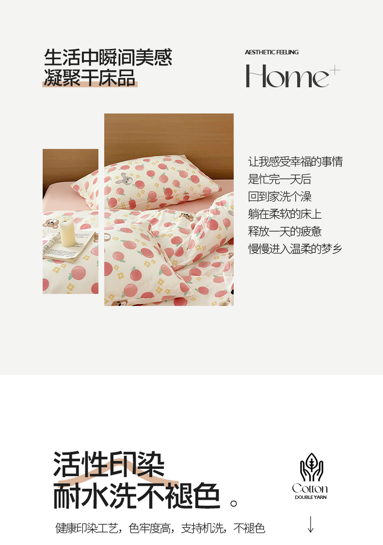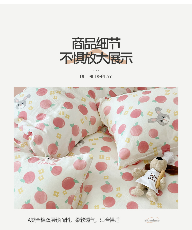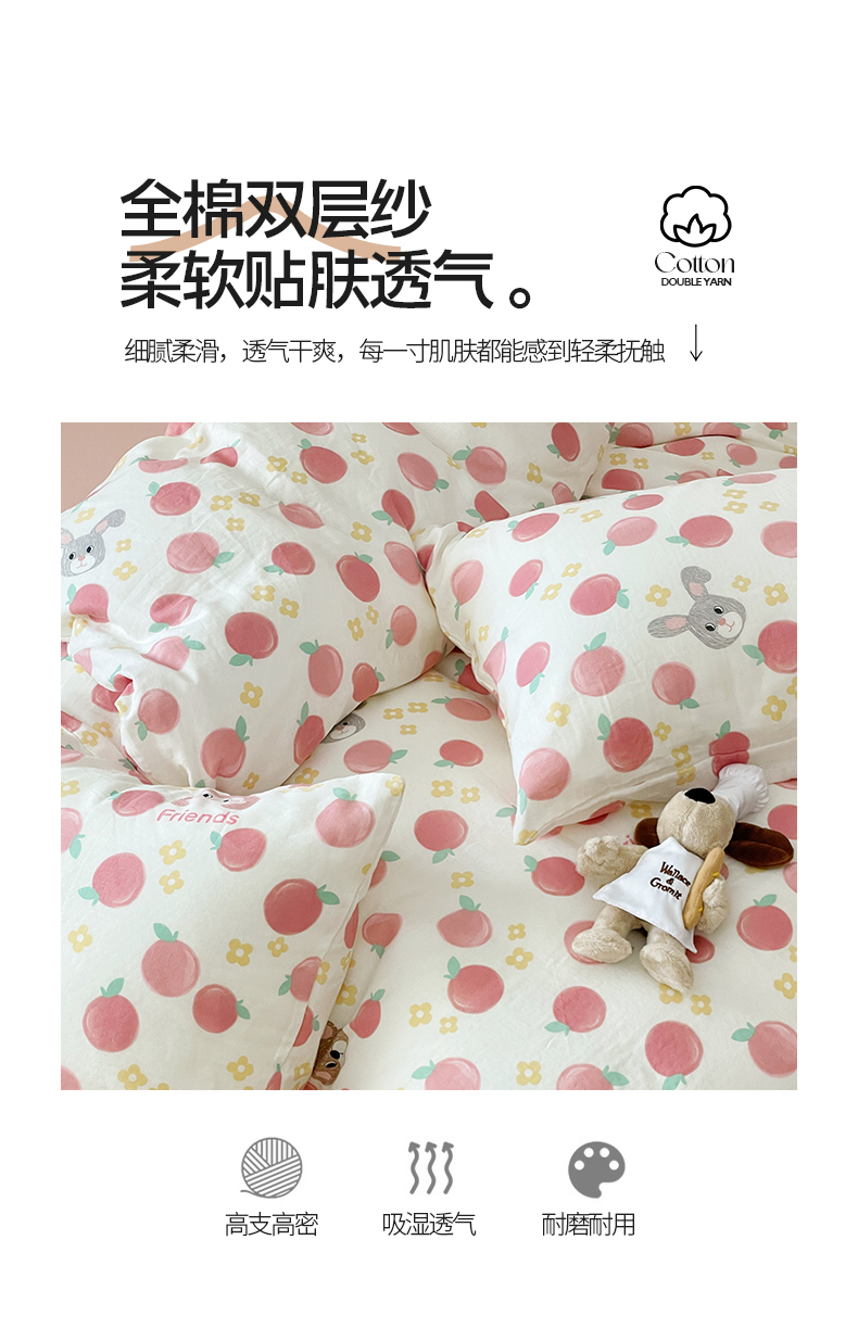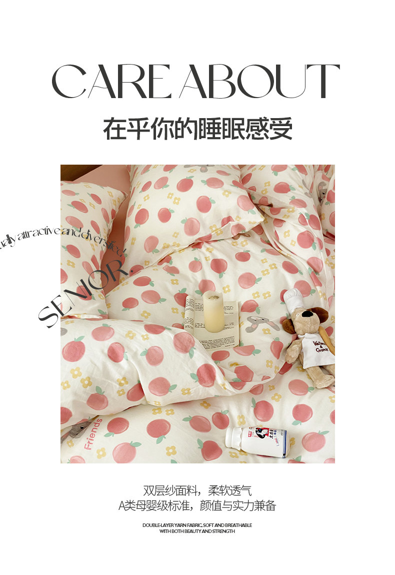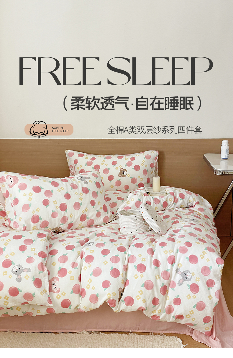 当前位置: 91家纺网 > 商品网购 > 床品套件 > 四件套 > 全棉普通四件套 > 窝米 2023秋季新品全棉双层纱四件套系列 蜜桃恋