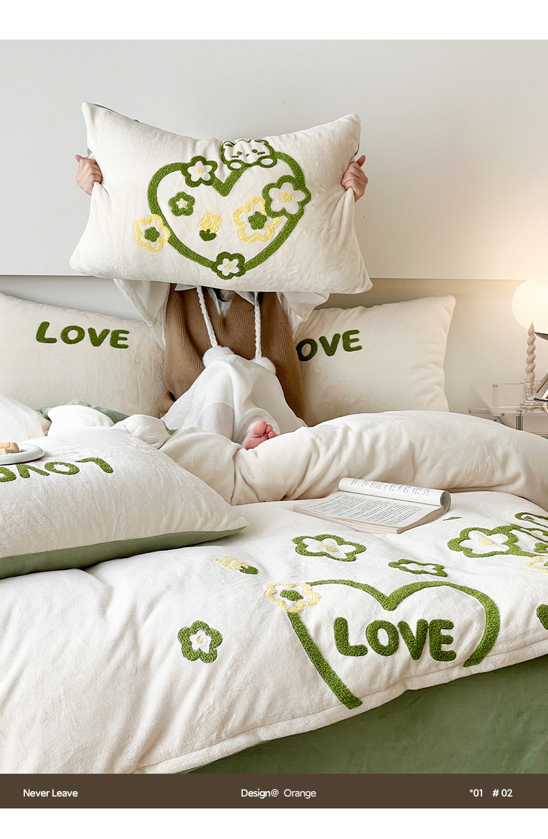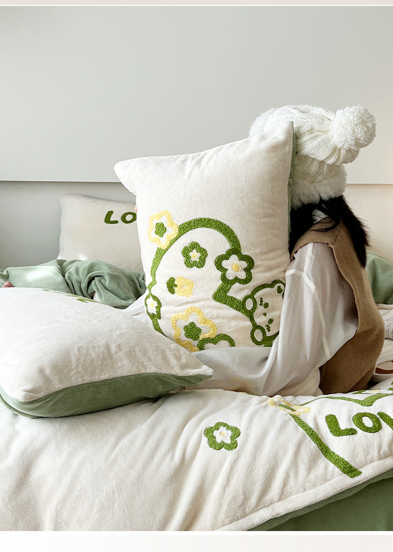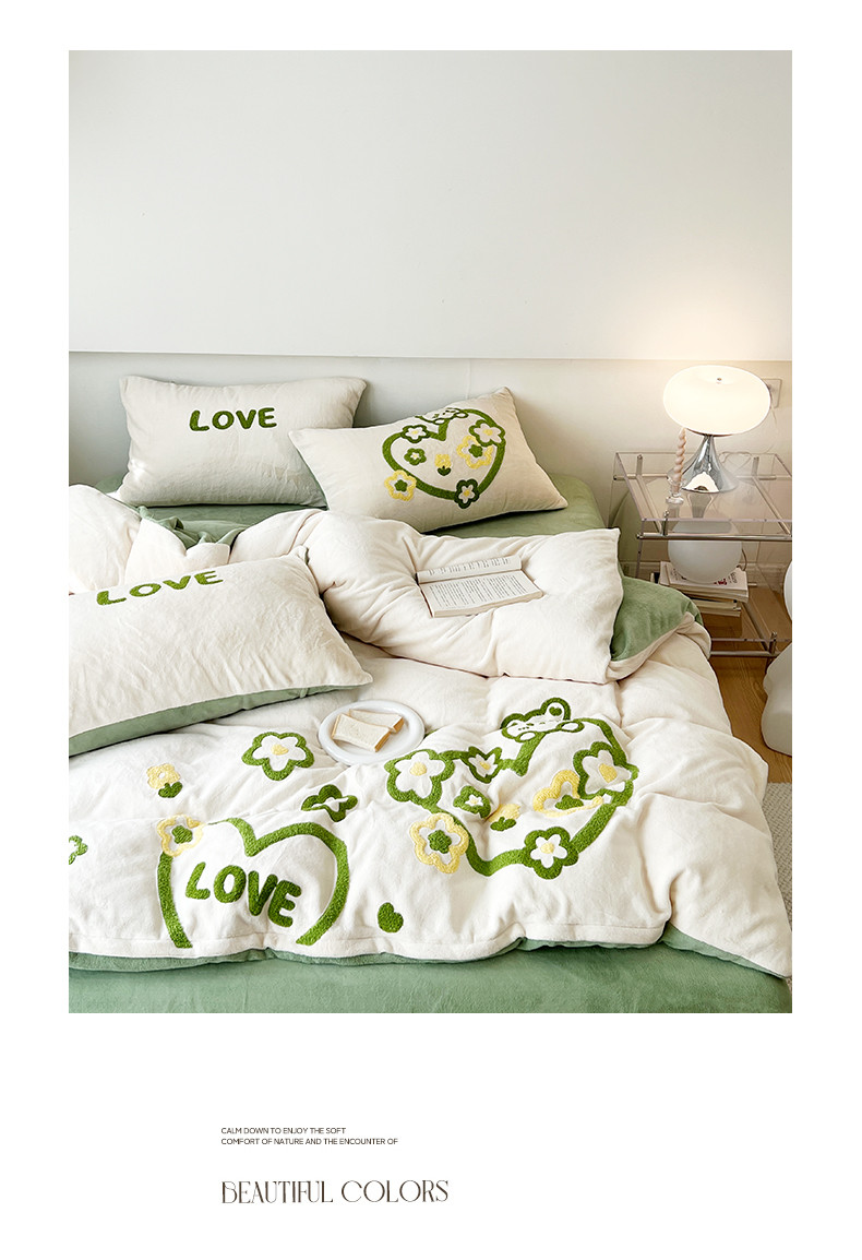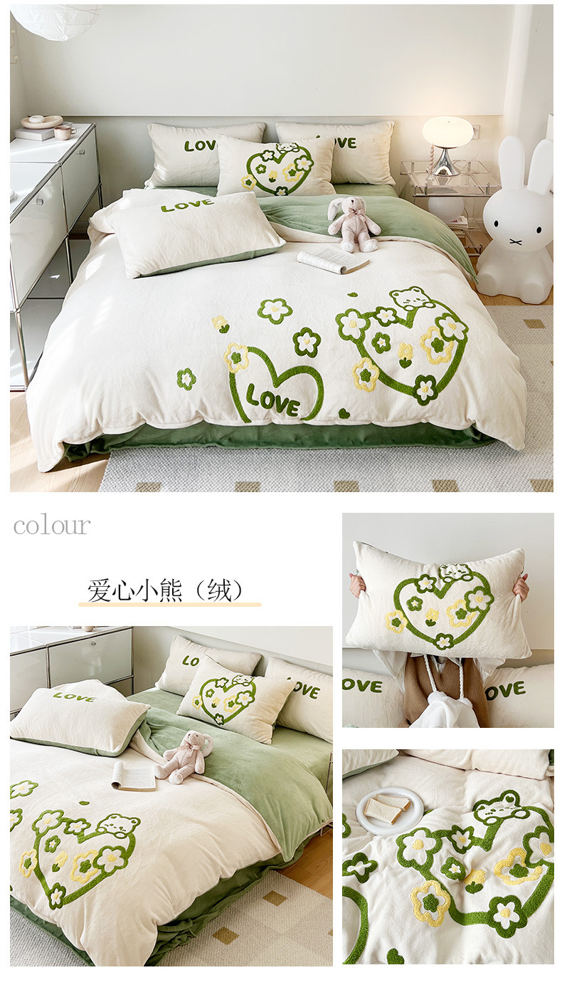 当前位置: 91家纺网 > 商品网购 > 床品套件 > 四件套 > 牛奶绒四件套 > 眠屿家纺 2023新款加厚高克重牛奶绒单边四件套 爱心小熊