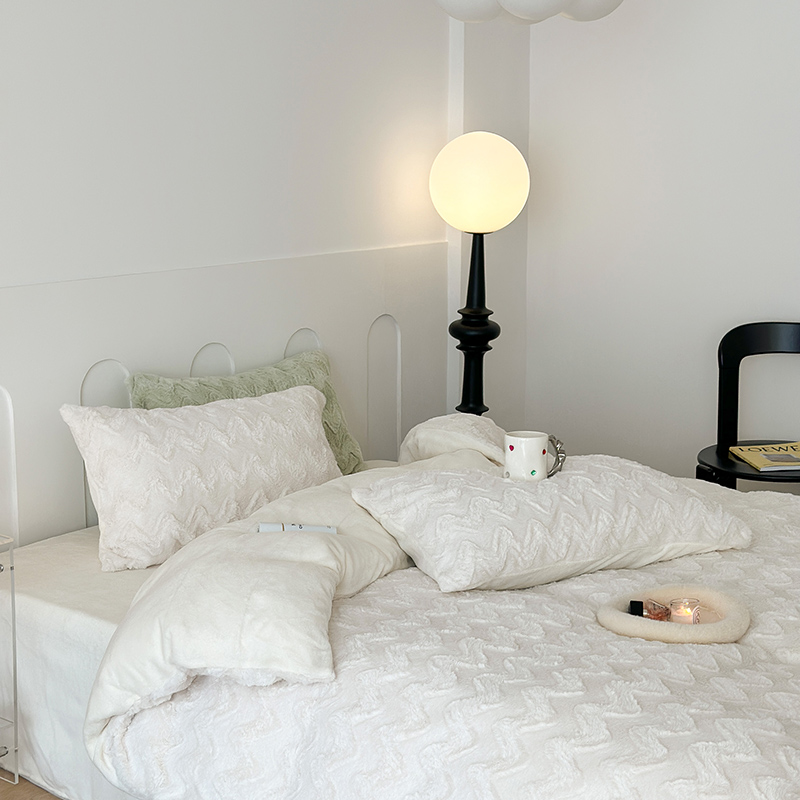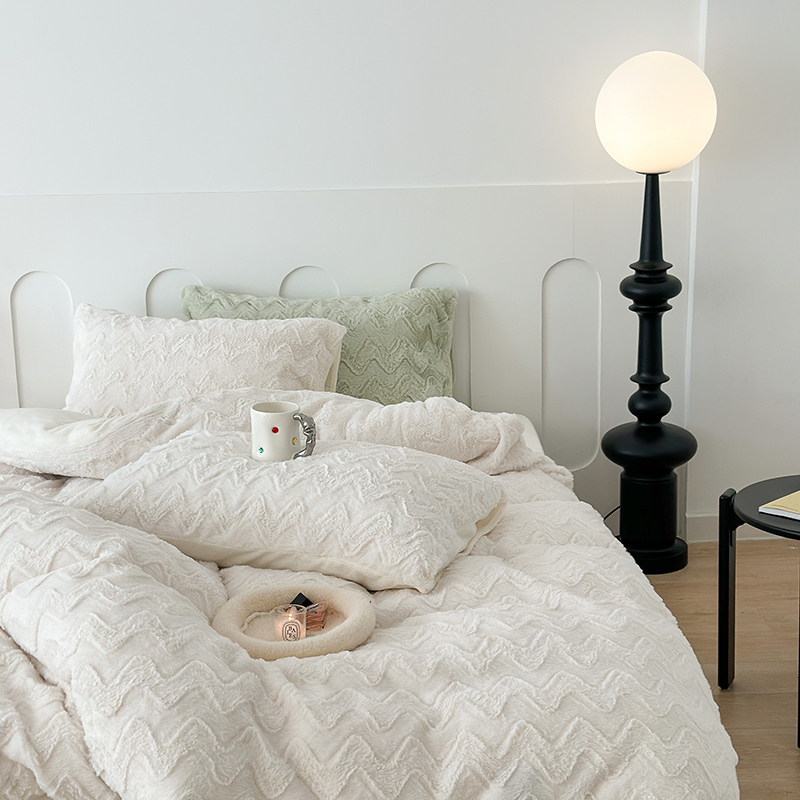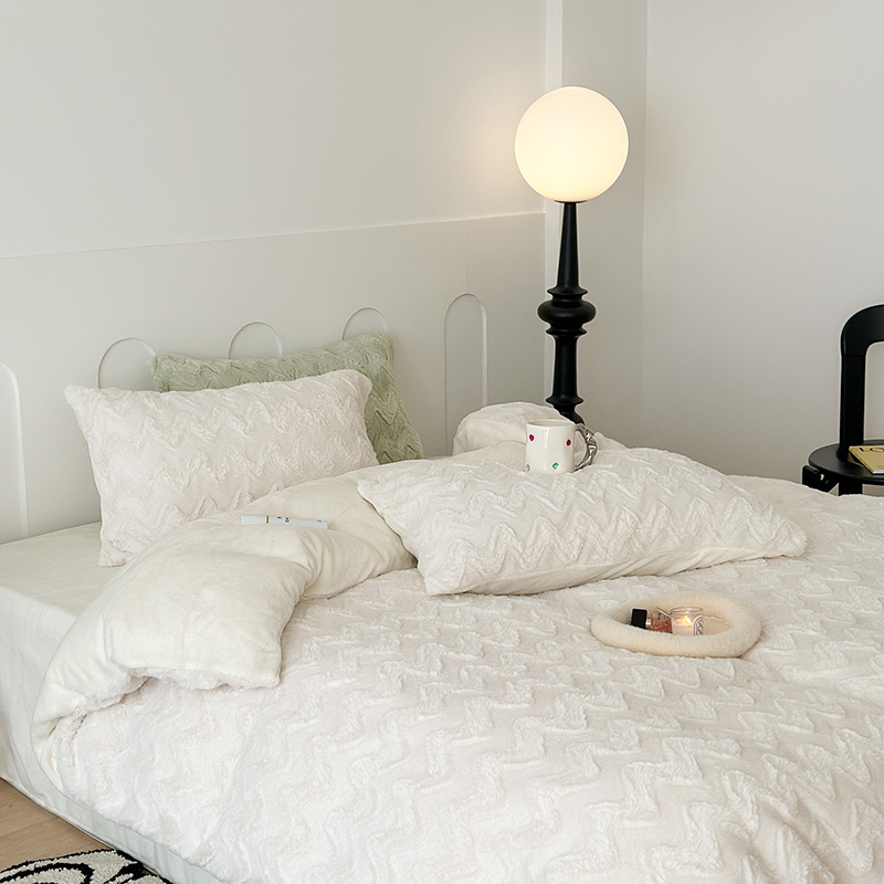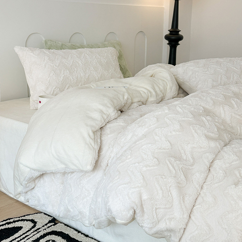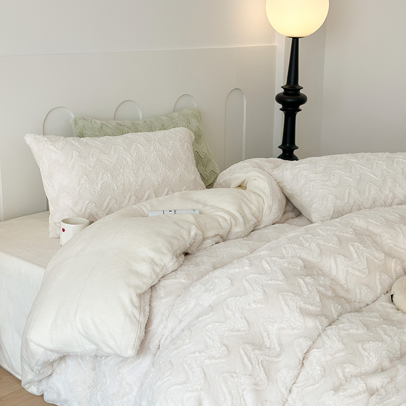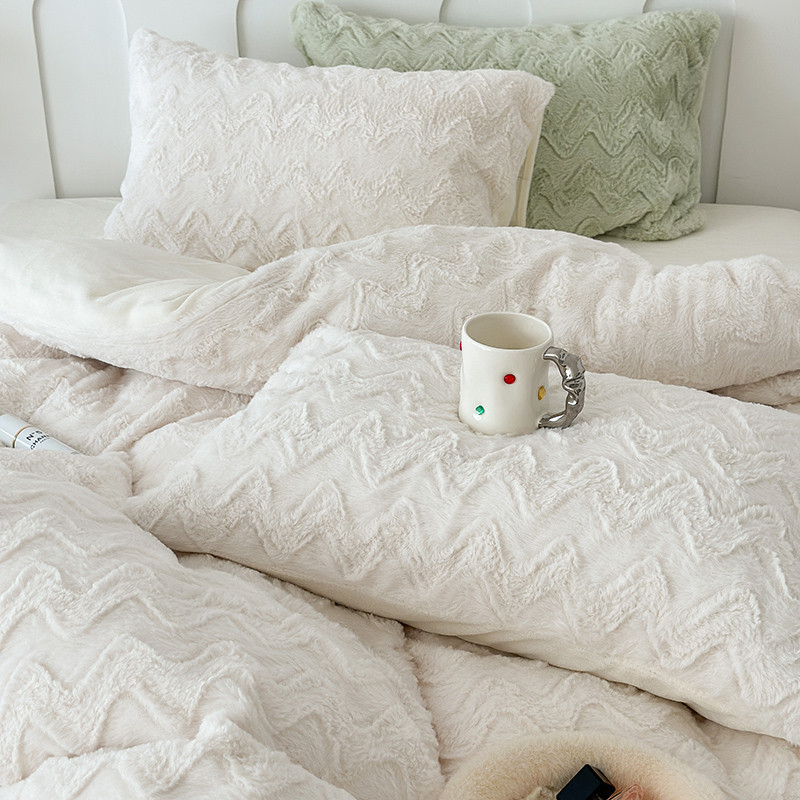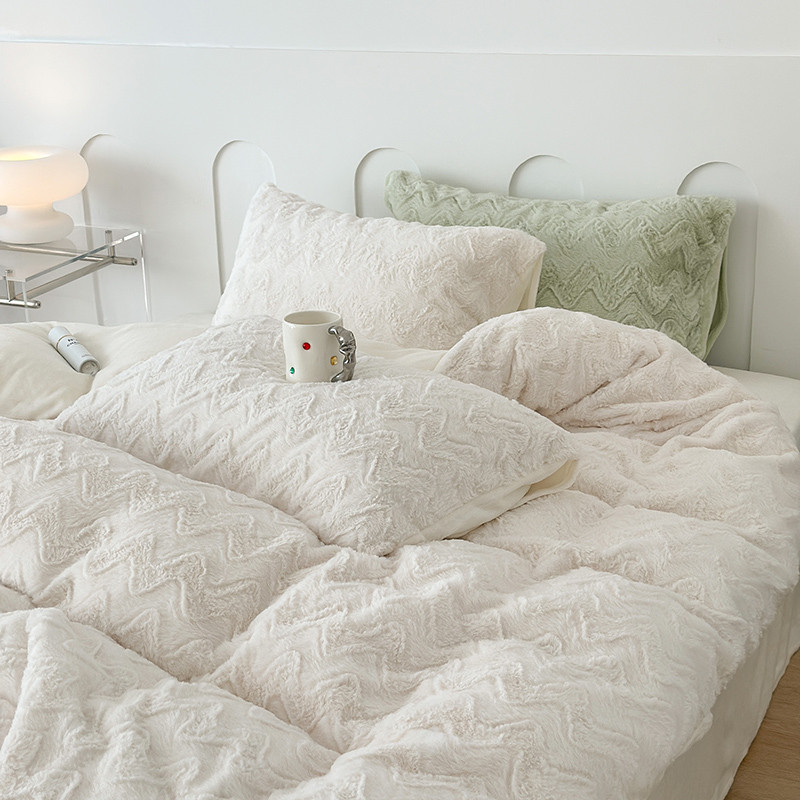 昔可家纺 2023新款ins风纯色兔兔绒兔毛四件套 奶白波纹