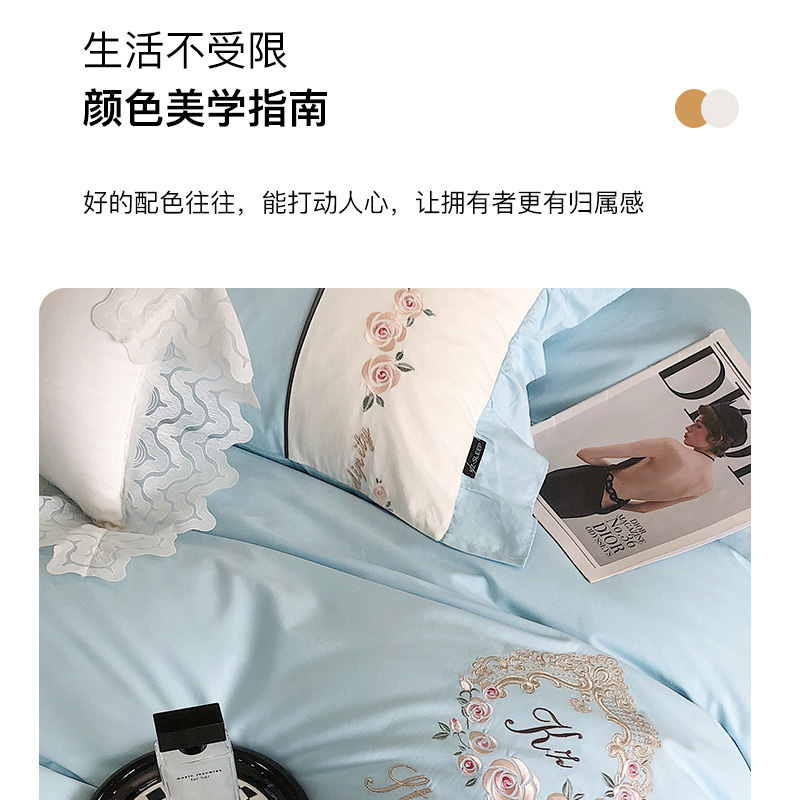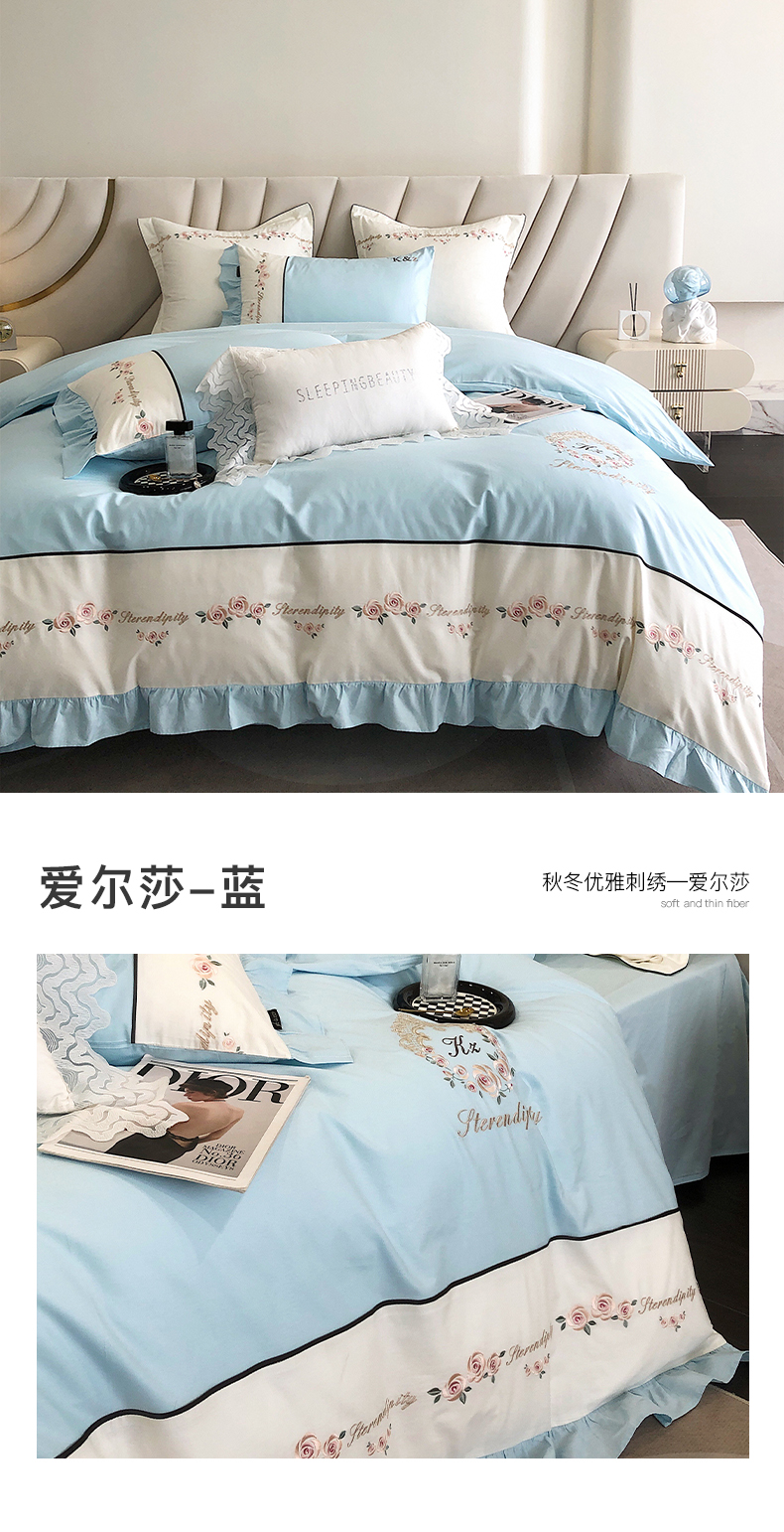 商品名称:卡姿家纺 2023新款秋冬优雅刺绣—爱尔莎 爱尔莎-蓝