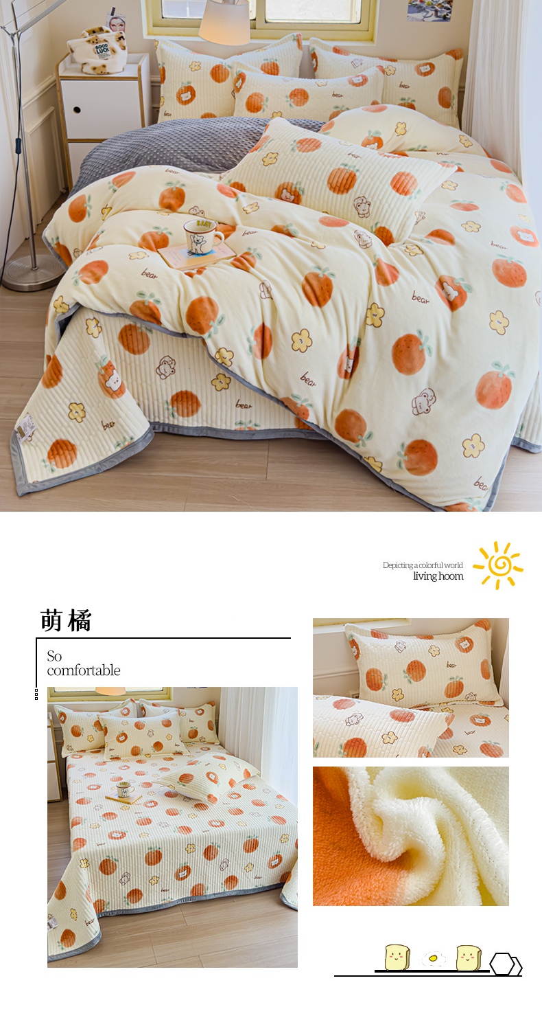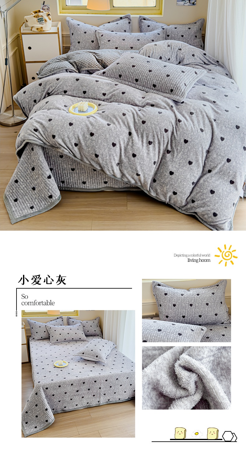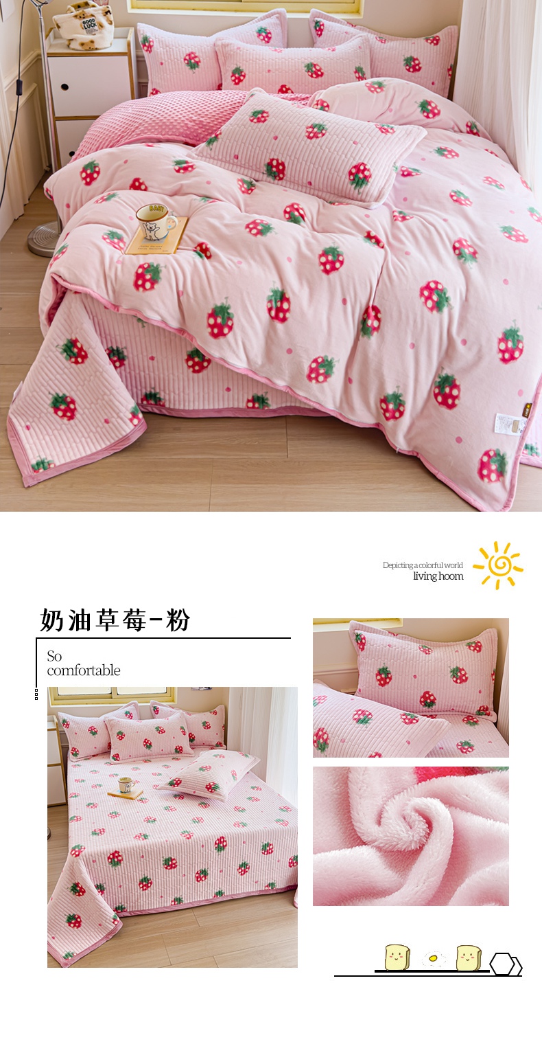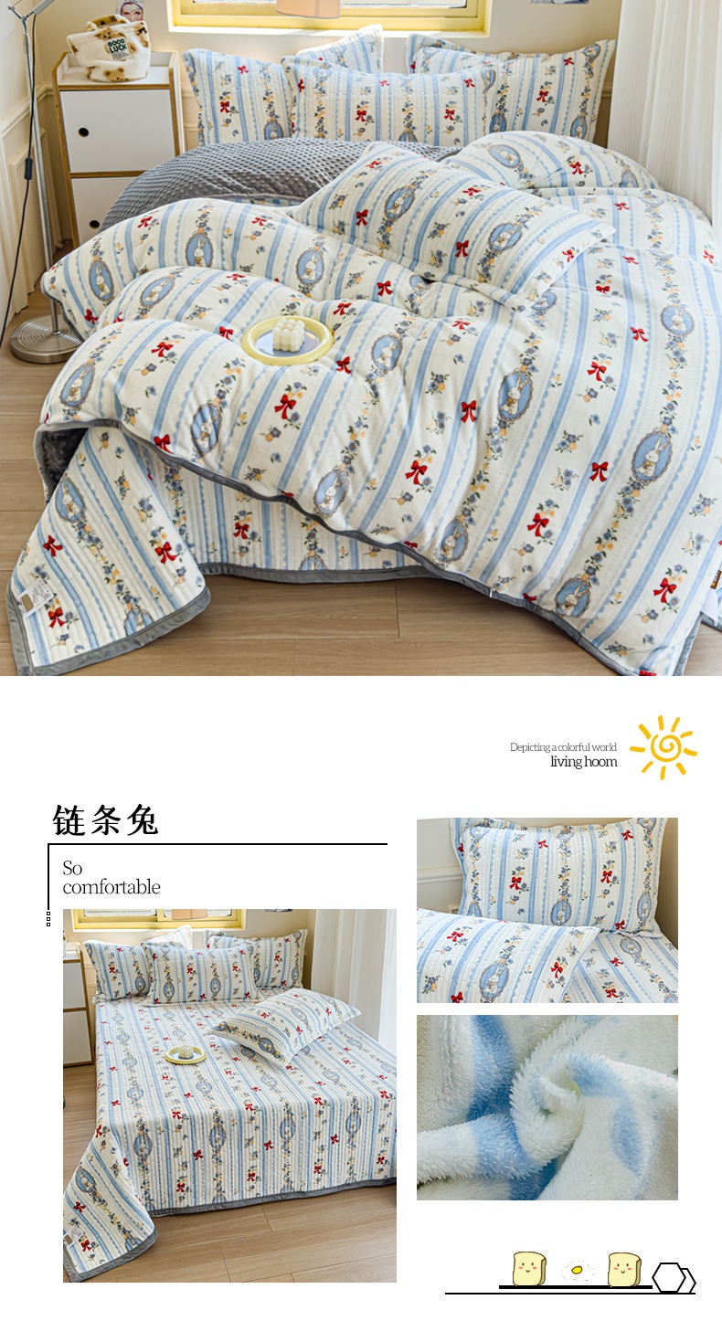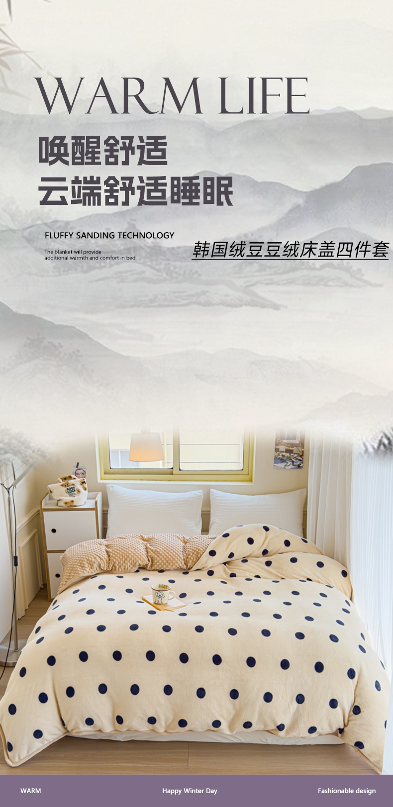 (总)元熙 2025新款印花小清新韩国绒牛奶绒豆豆床盖四件套