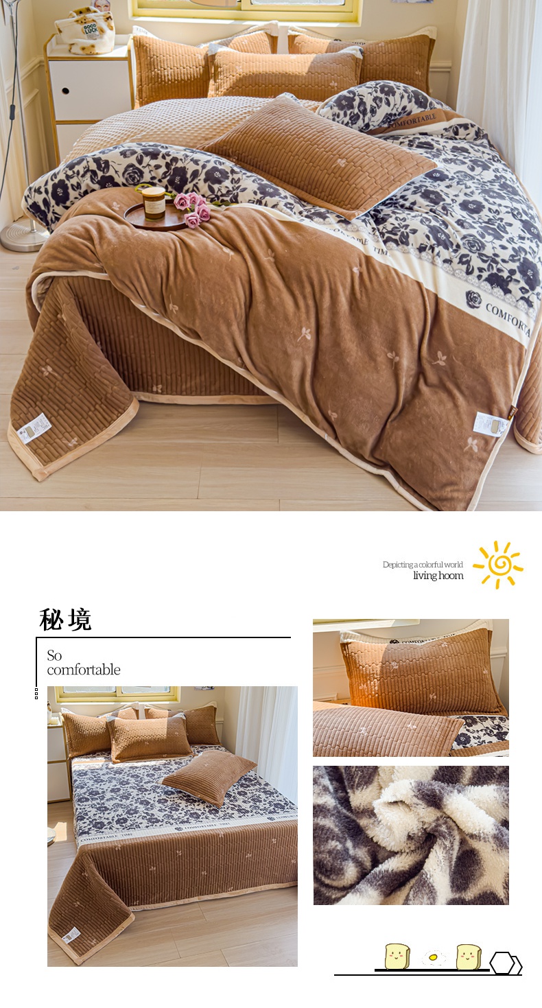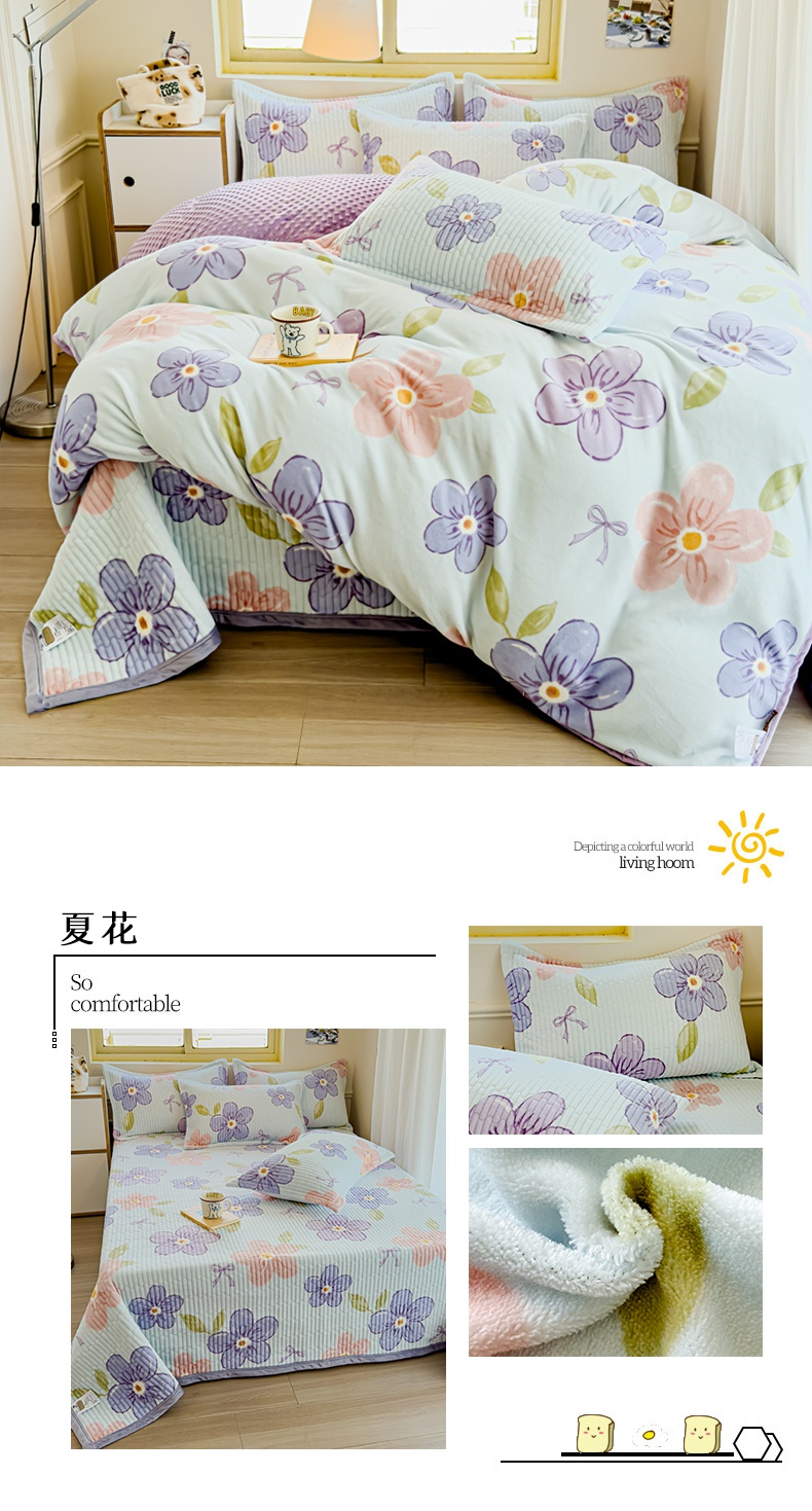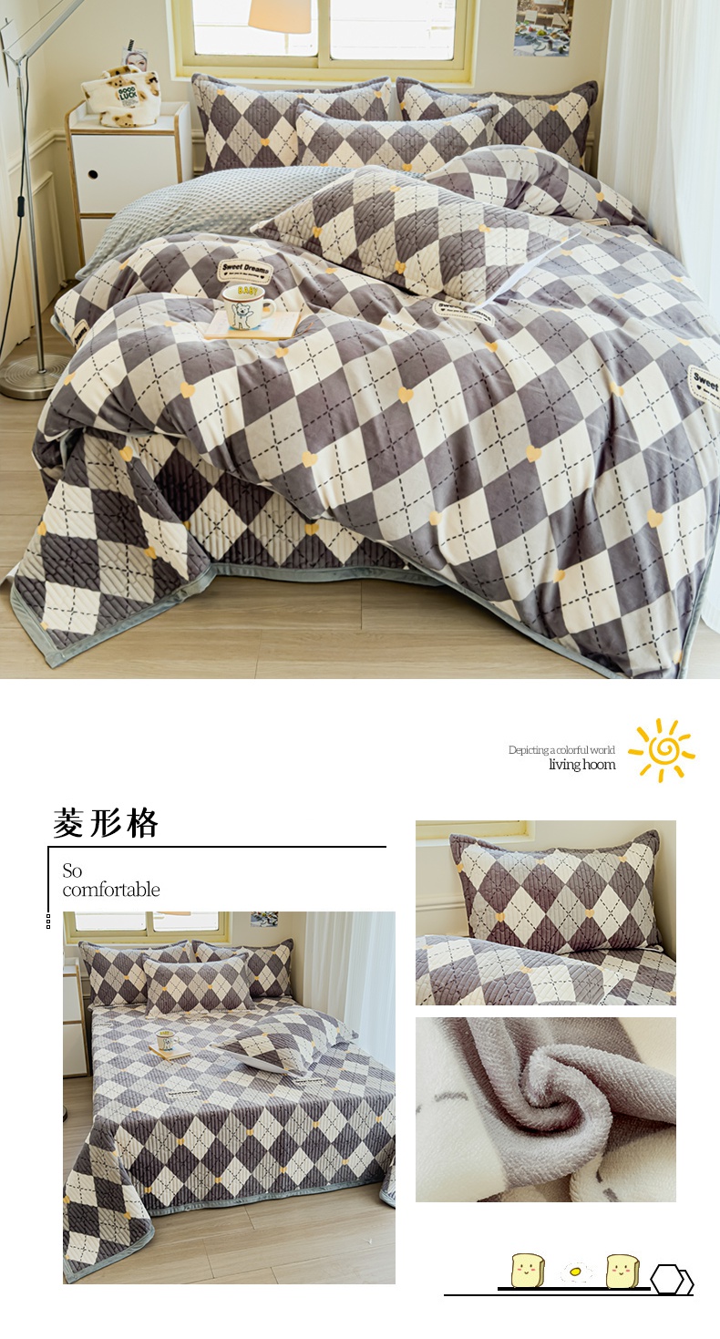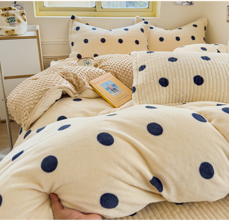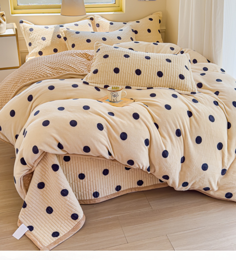 (总)元熙 2025新款印花小清新韩国绒牛奶绒豆豆床盖四件套