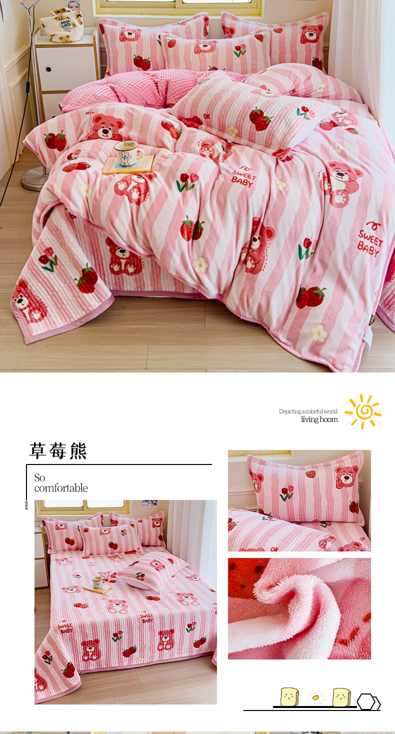 元熙 2025新款印花小清新韩国绒牛奶绒豆豆床盖四件套-蔷薇粉,蔷薇粉