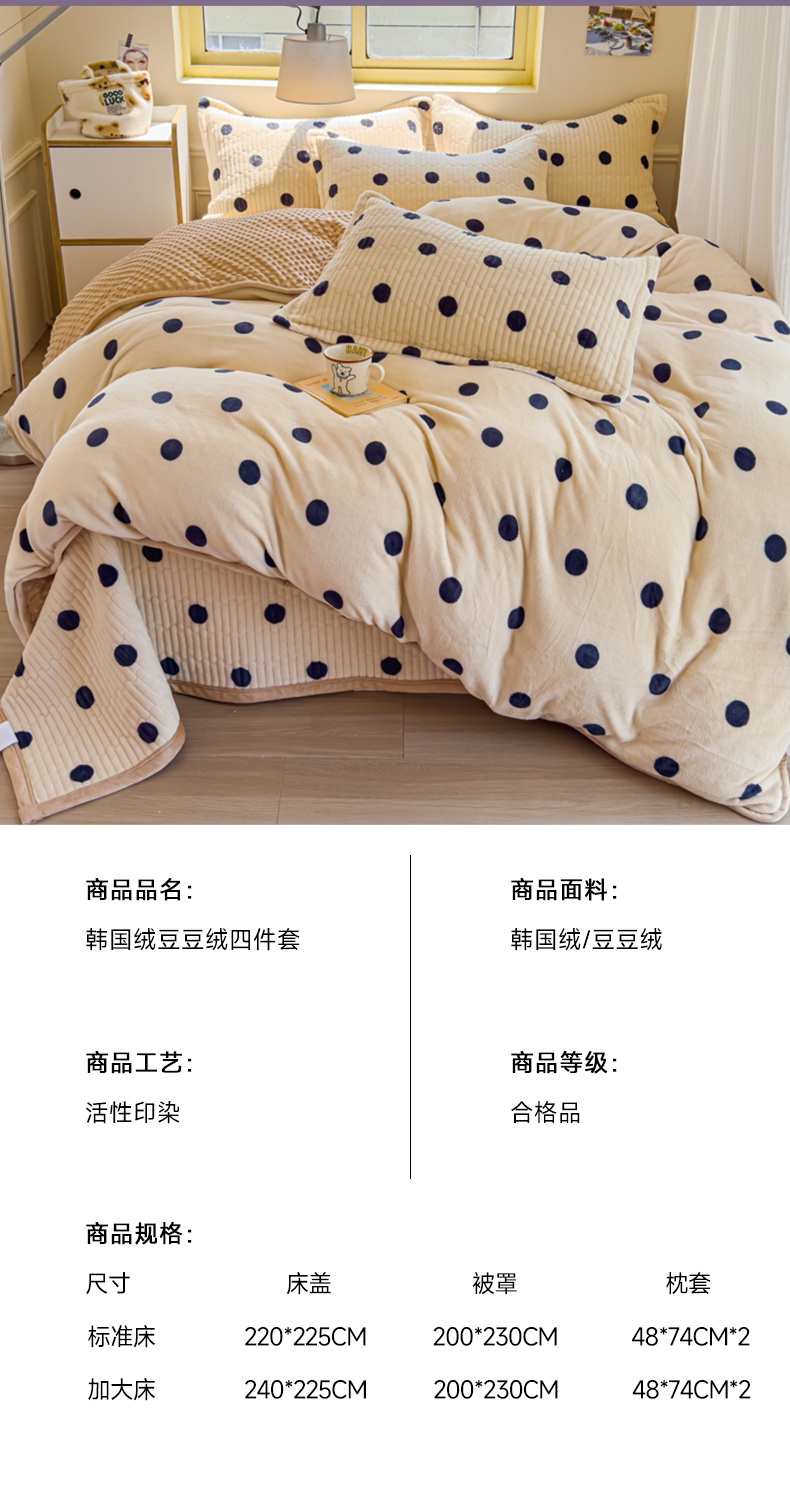 商品名称:(总)元熙 2025新款印花小清新韩国绒牛奶绒豆豆床盖四件套