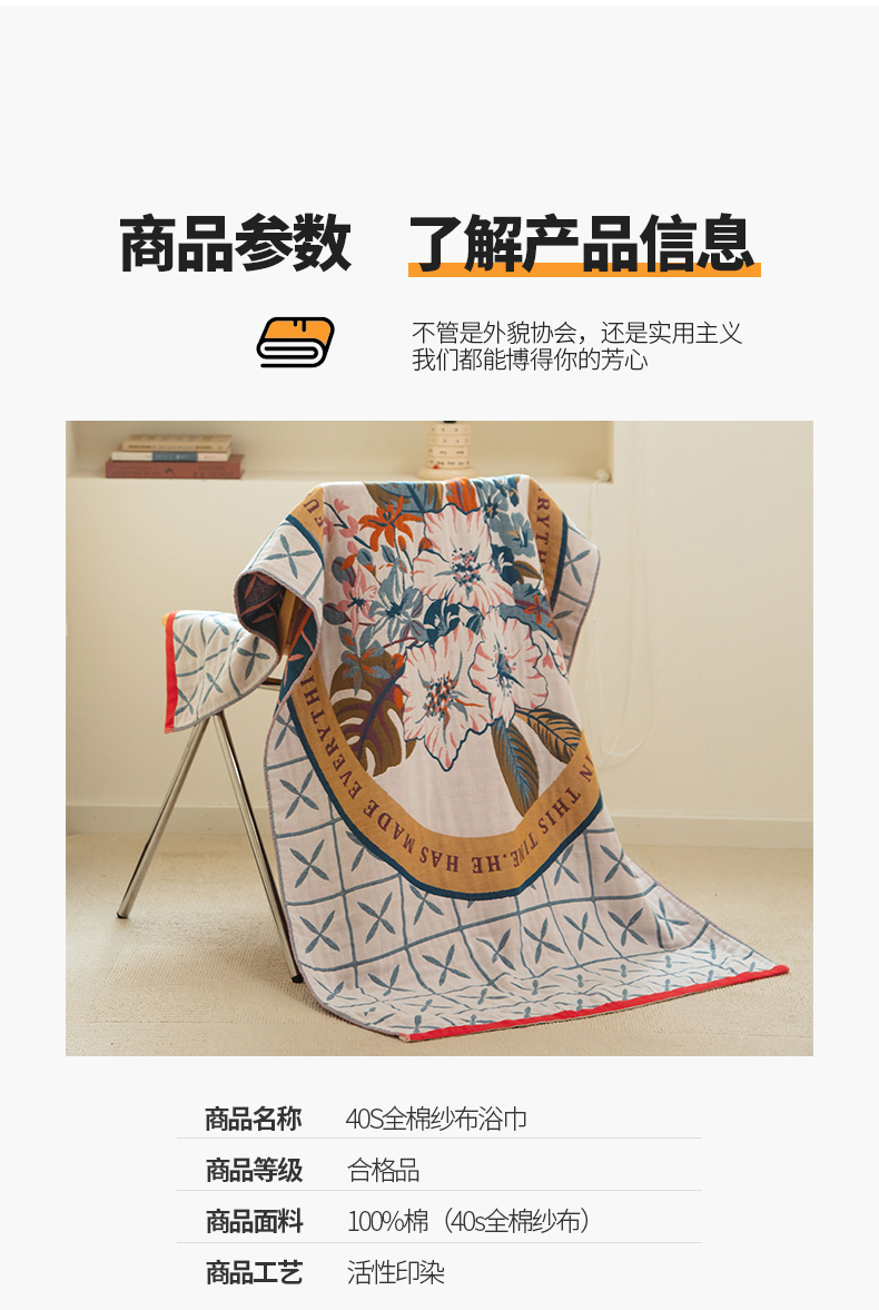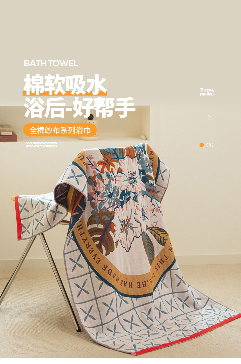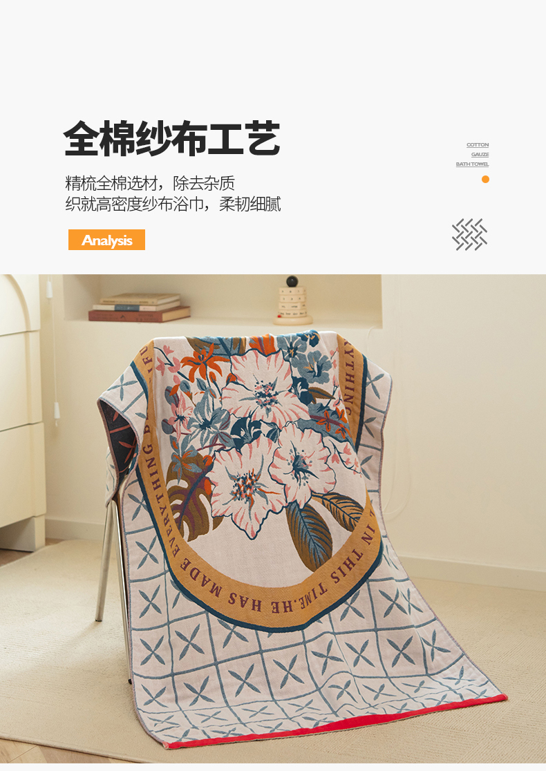 当前位置: 91家纺网 > 商品网购 > 居家日用 > 毛巾/浴巾/浴袍 > 浴巾 > 雯雨家纺 2023新款全棉卡通系列纱布浴巾 花园之间-兰