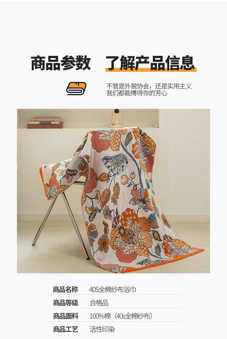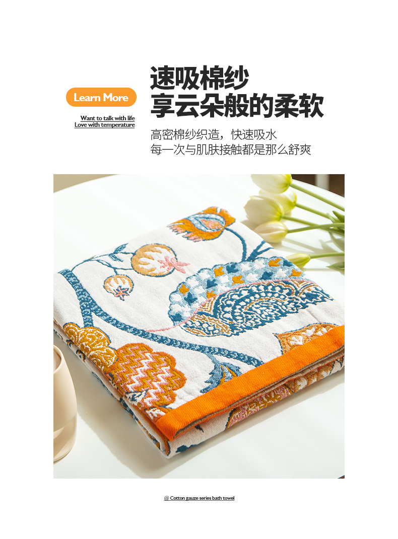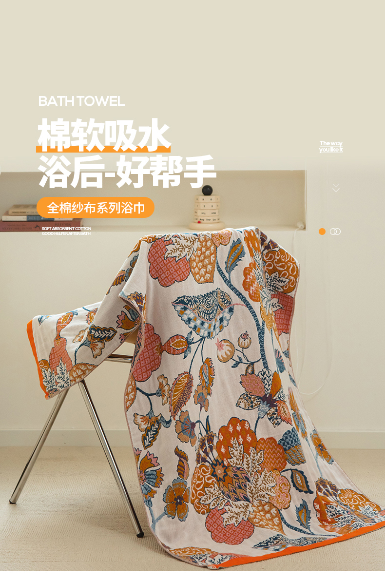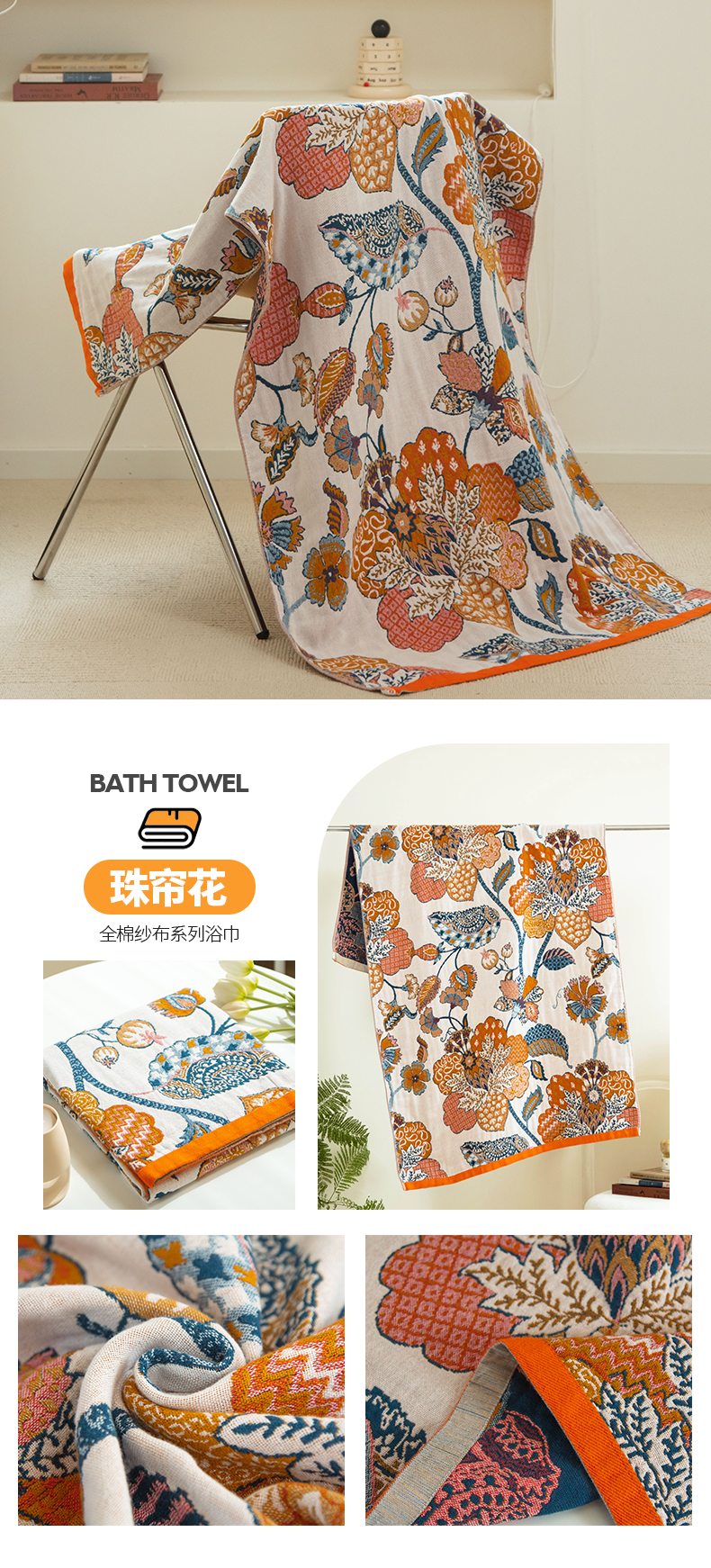 当前位置: 91家纺网 > 商品网购 > 居家日用 > 毛巾/浴巾/浴袍 > 浴巾 > 雯雨家纺 2023新款全棉卡通系列纱布浴巾 珠帘花