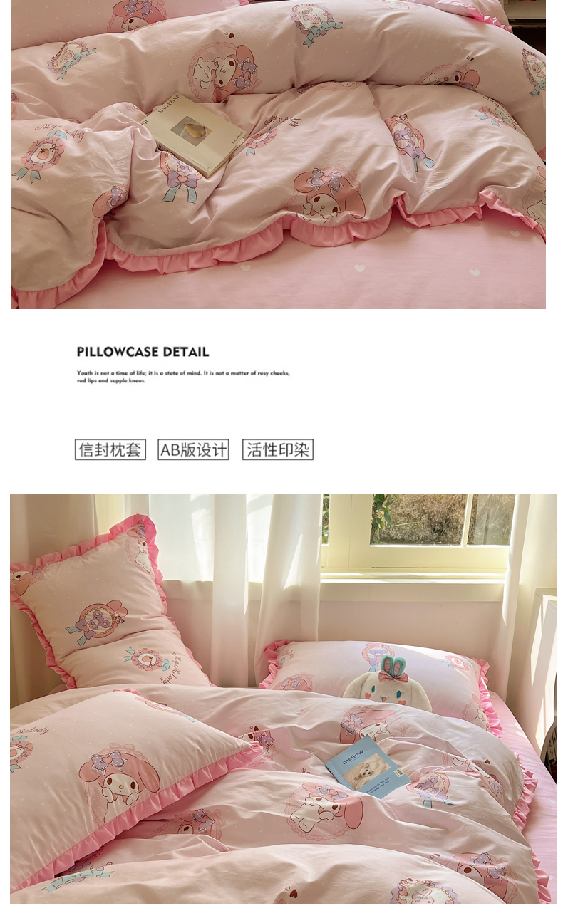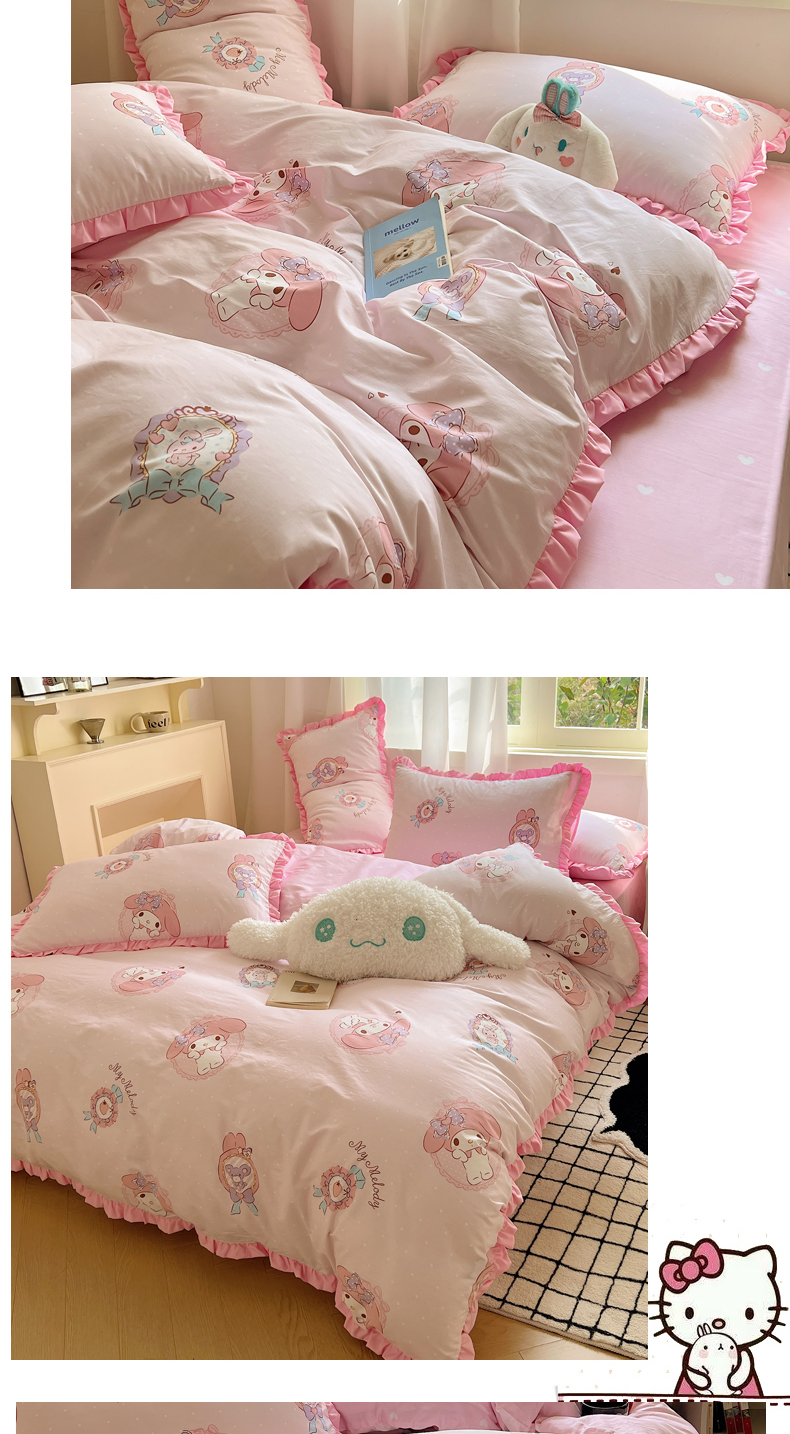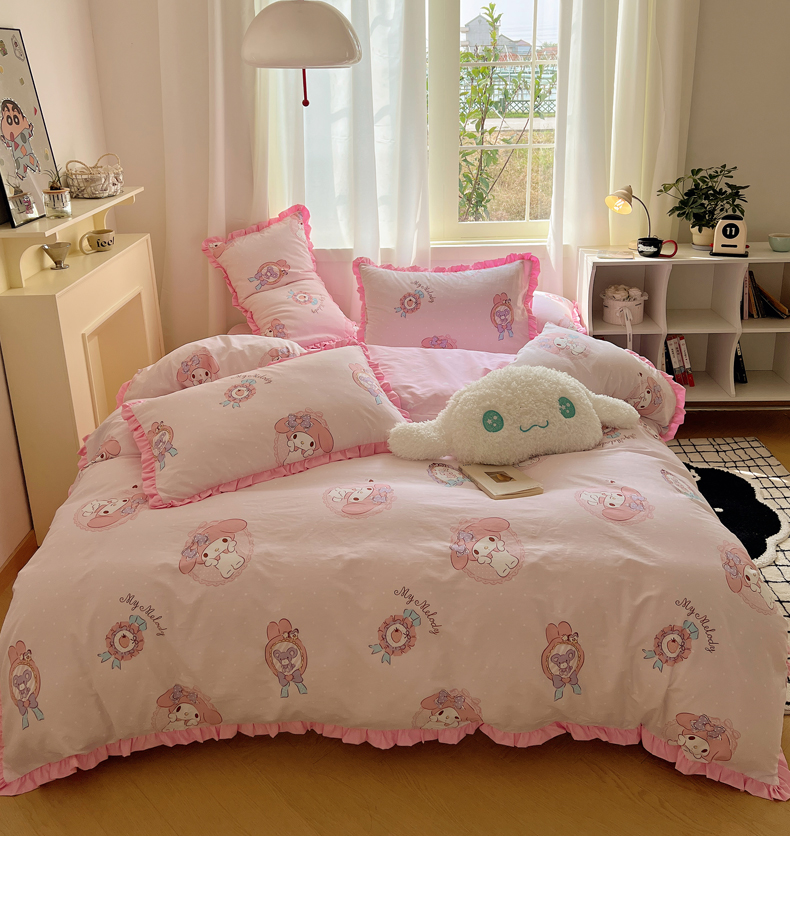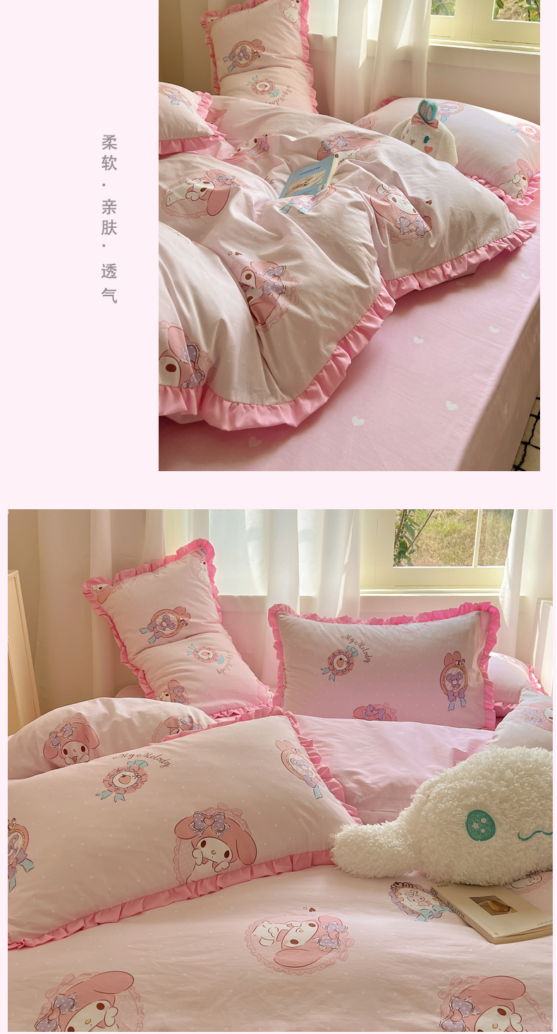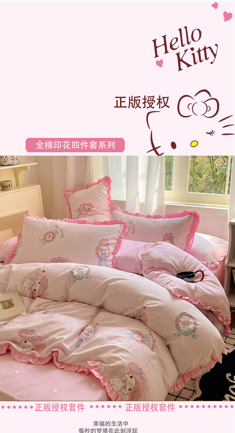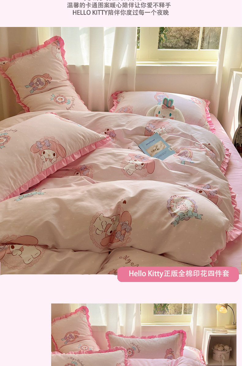 三朵家纺 2023新款全棉花边款三丽鸥系列四件套 小兔美乐蒂