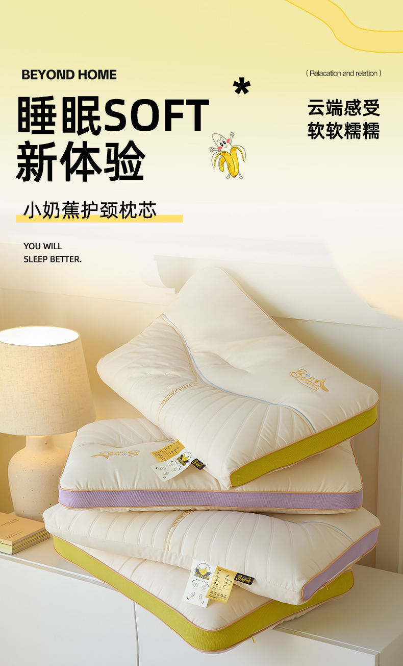 商品名称:纽乐家纺 2023新款小奶蕉护颈枕芯 小奶蕉-香蕉黄48*74cm/只