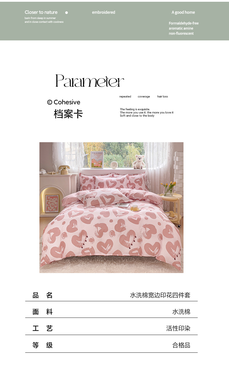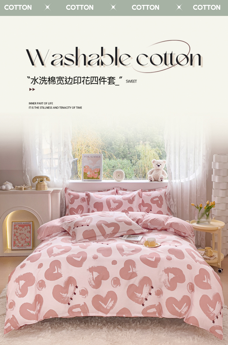 当前位置: 91家纺网 > 商品网购 > 床品套件 > 四件套 > 水洗棉四件套 > 布可家纺 2025新款水洗棉宽边印花四件套 怡心