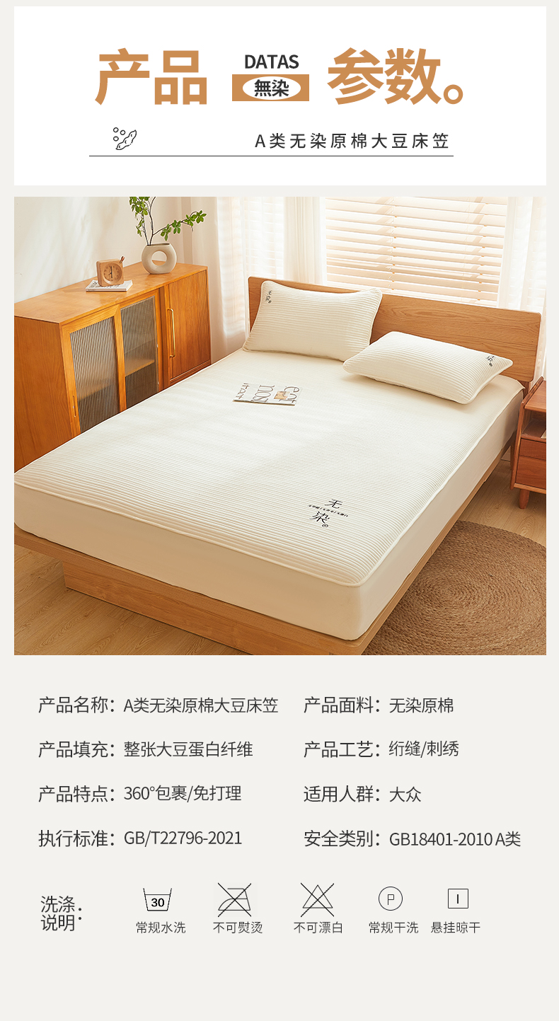 商品名称:(总)居眠 2024新款无染原棉大豆夹棉床笠