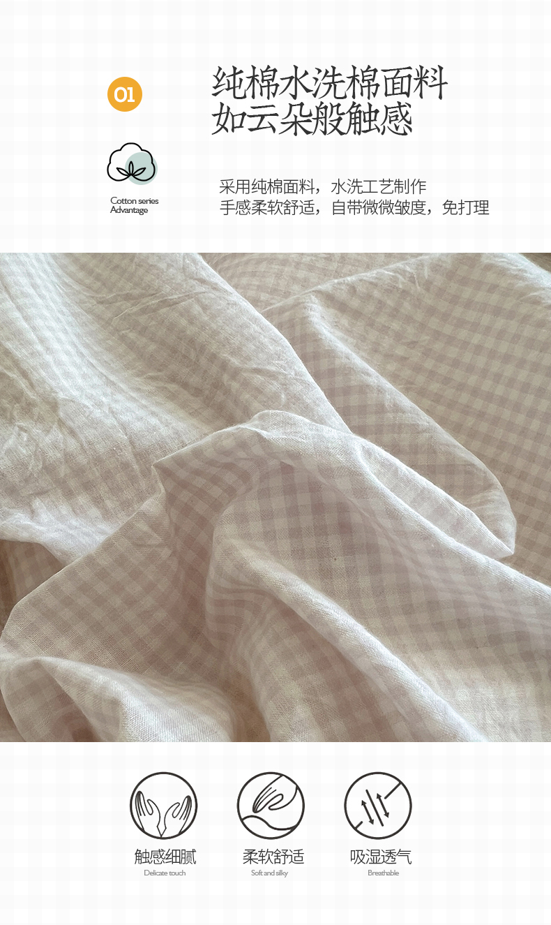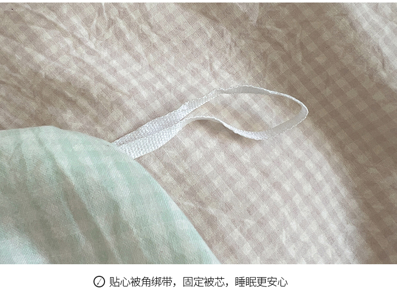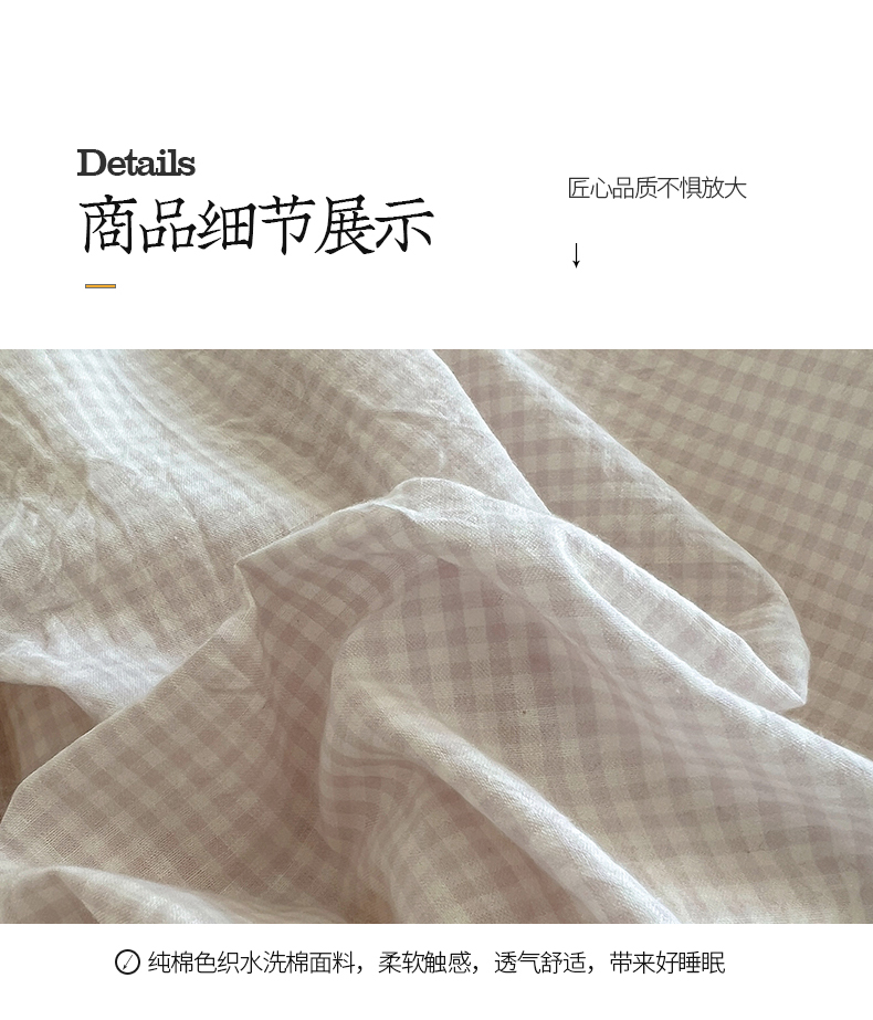 商品名称:桃子 2024新款ins色织水洗棉大眼毛巾绣奶油格子少女撞色纯棉系列四件套 水洗棉-奶油紫绿黄