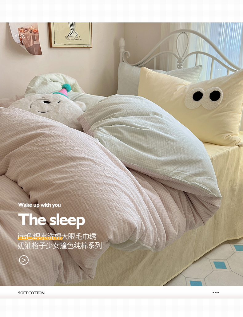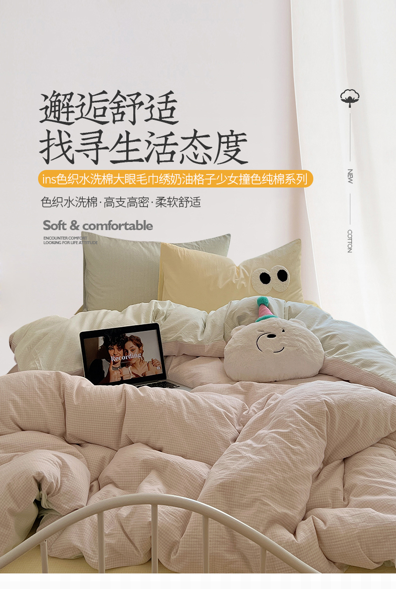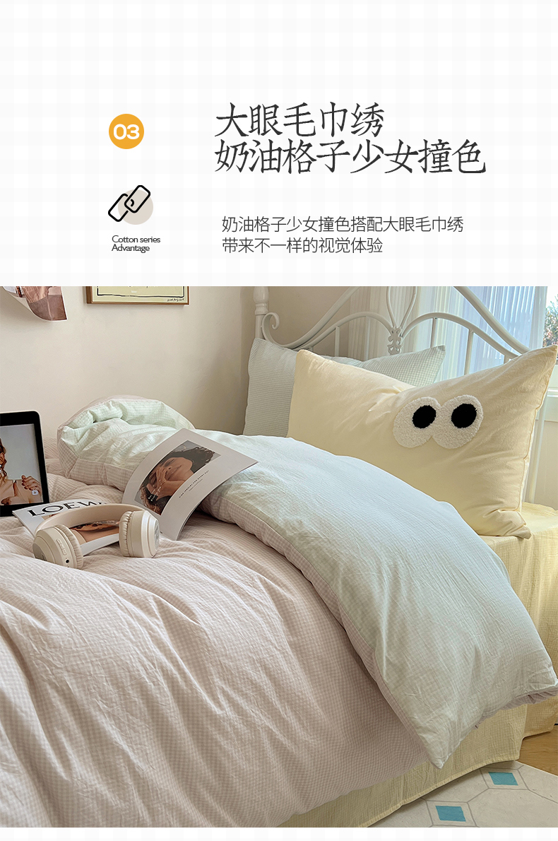 (总)桃子家居 2026新款A类ins色织水洗棉纯棉大眼睛毛巾绣混搭撞色少女多巴胺系列四件套,色织水洗棉-大眼蓝黄,色织水洗棉-大眼蓝黄2,色织水洗棉-大眼粉格奶黄,色织水洗棉-大眼粉条粉粉,色织水洗棉-大眼粉条灰灰,色织水洗棉-大眼格格灰条,色织水洗棉-大眼格格灰条2,色织水洗棉-大眼黄紫格,色织水洗棉-大眼黄紫格2,色织水洗棉-大眼灰条灰,色织水洗棉-大眼蓝条粉,色织水洗棉-大眼蓝条粉2,色织水洗棉-大眼奶黄粉格,色织水洗棉-大眼奶绿粉粉,色织水洗棉-大眼柠檬奶黄,色织水洗棉-大眼深灰白格