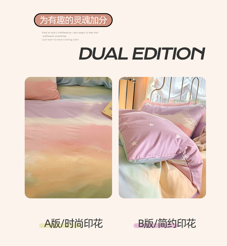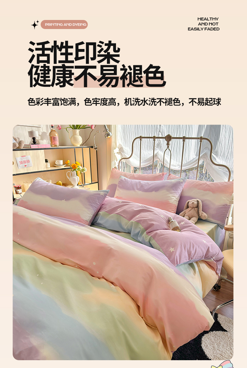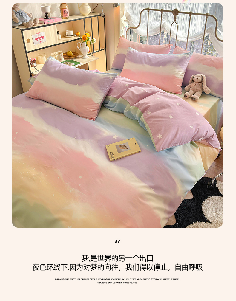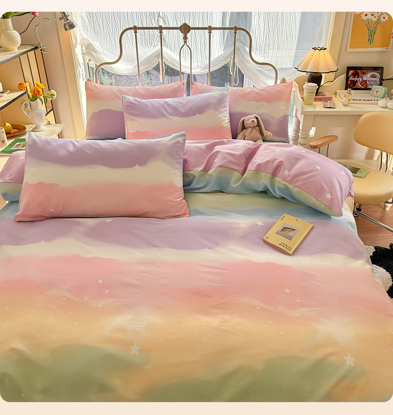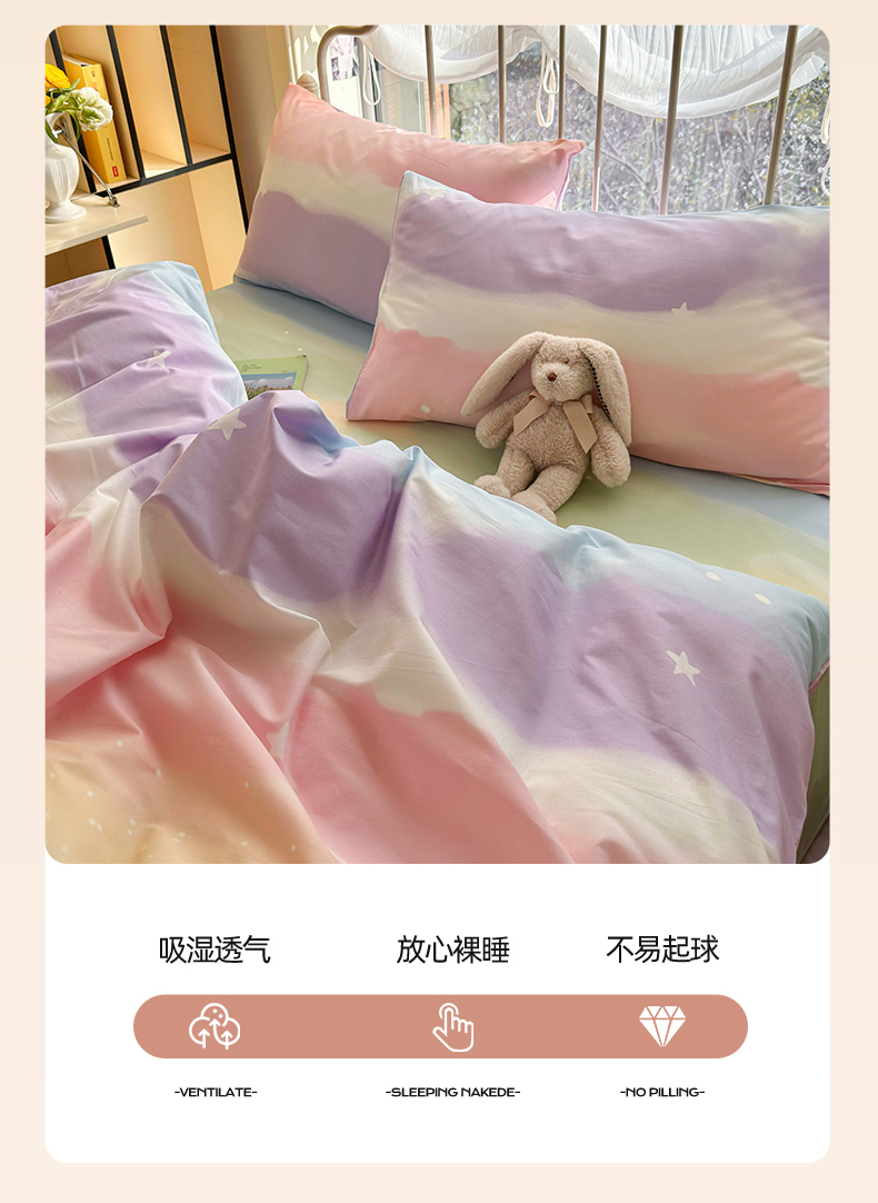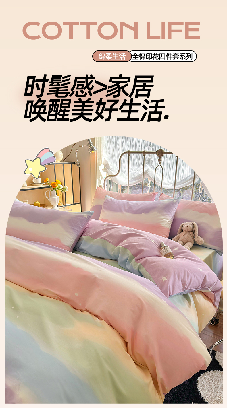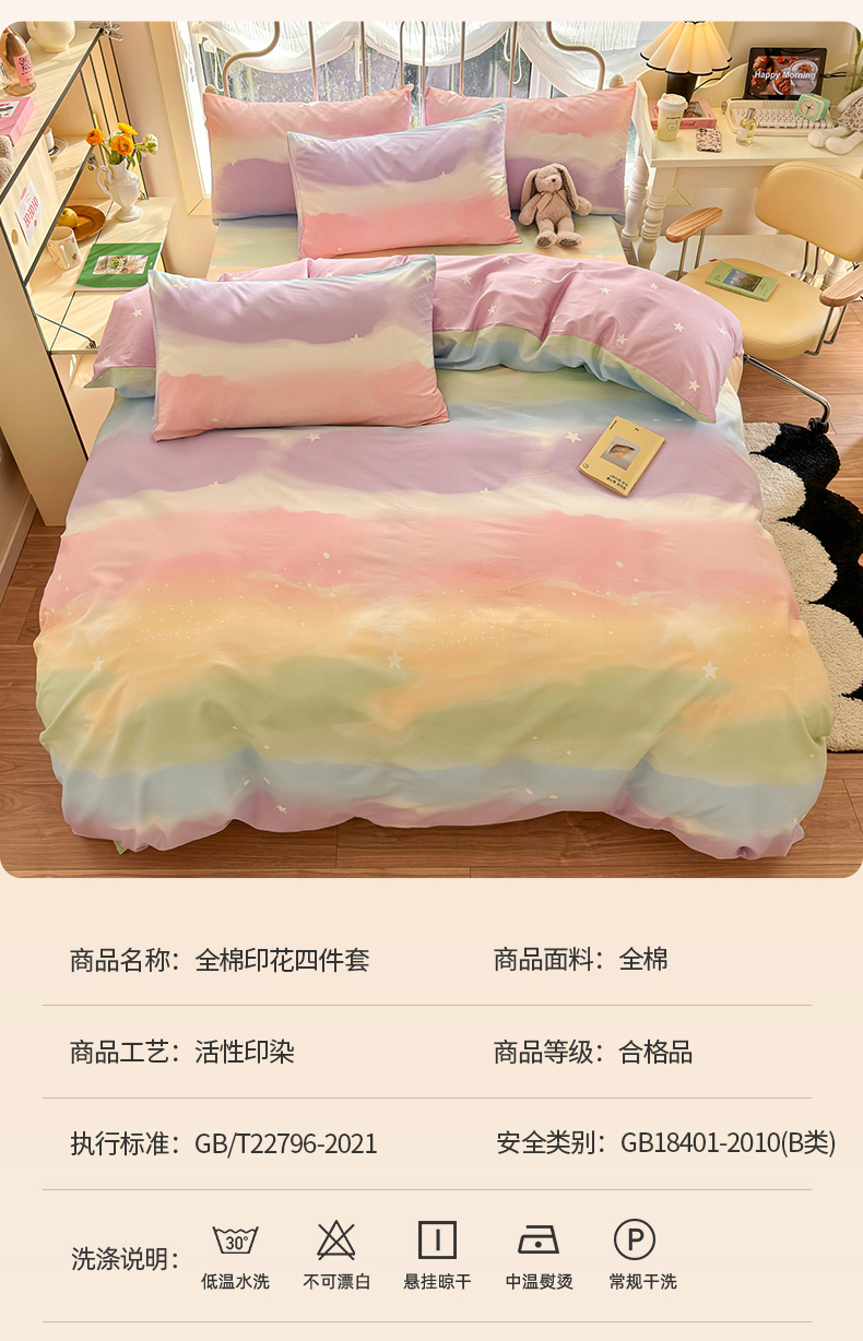 当前位置: 91家纺网 > 商品网购 > 床品套件 > 四件套 > 全棉普通四件套 > 名兮家居 2024新款极简风全棉印花四件套 彩色天空