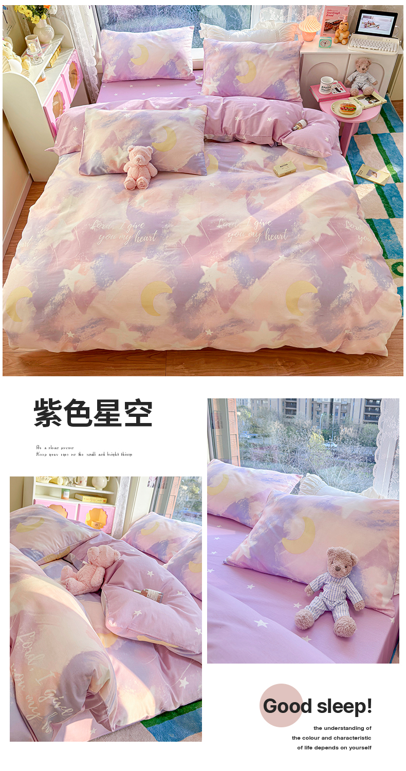 当前位置: 91家纺网 > 商品网购 > 床品套件 > 四件套 > 全棉普通四件套 > 名兮家居 2024新款极简风全棉印花四件套 紫色星空