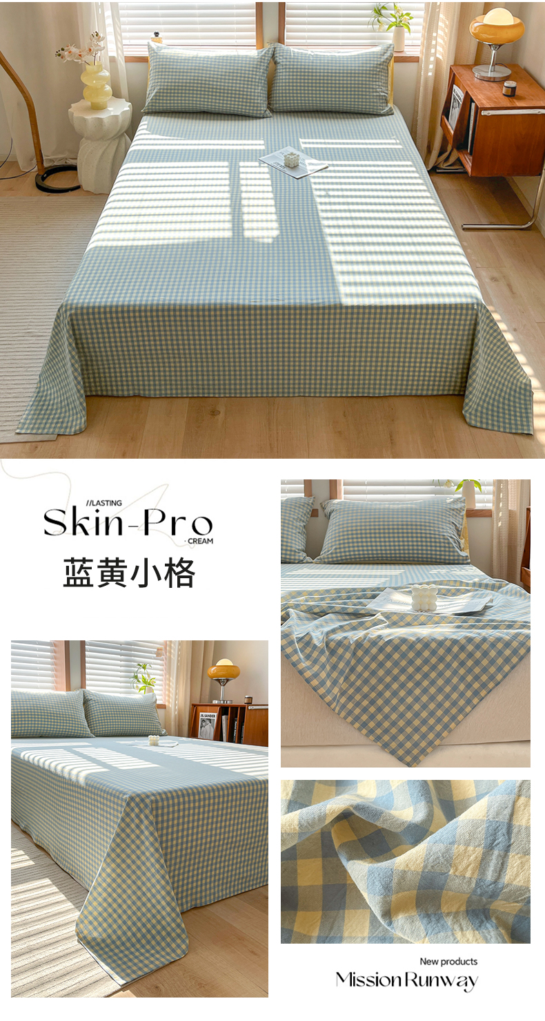启程家纺 2026新款全棉A类水洗棉多规格四件套单品-单床单 蓝黄小格