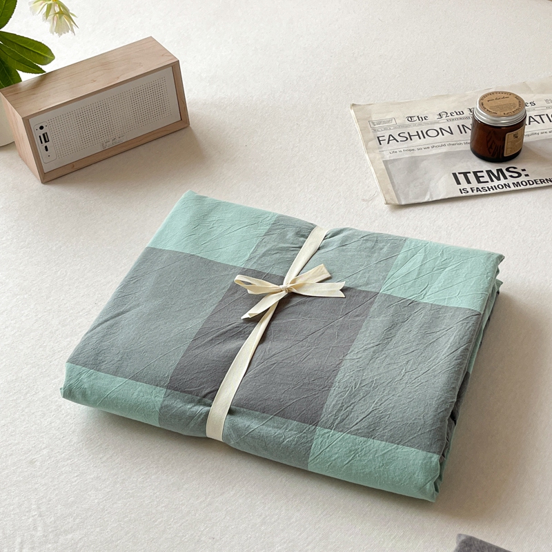 启程家纺 2026新款全棉A类水洗棉多规格四件套单品-单被套 绿灰大格