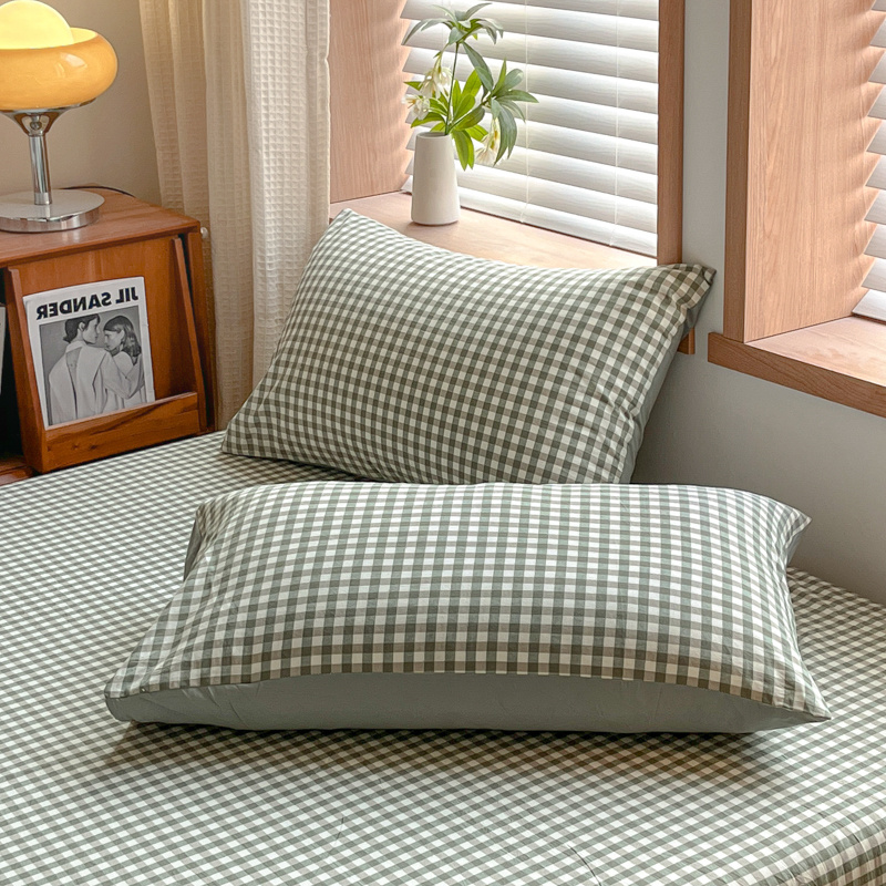 启程家纺 2026新款全棉A类水洗棉多规格四件套单品-单枕套 绿小格