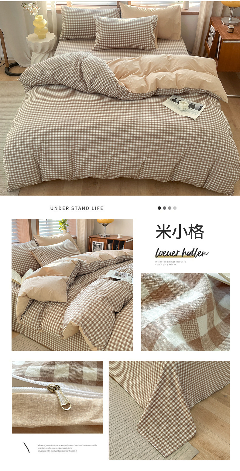 启程家纺 2026新款全棉A类水洗棉多规格四件套单品-四件套 米小格