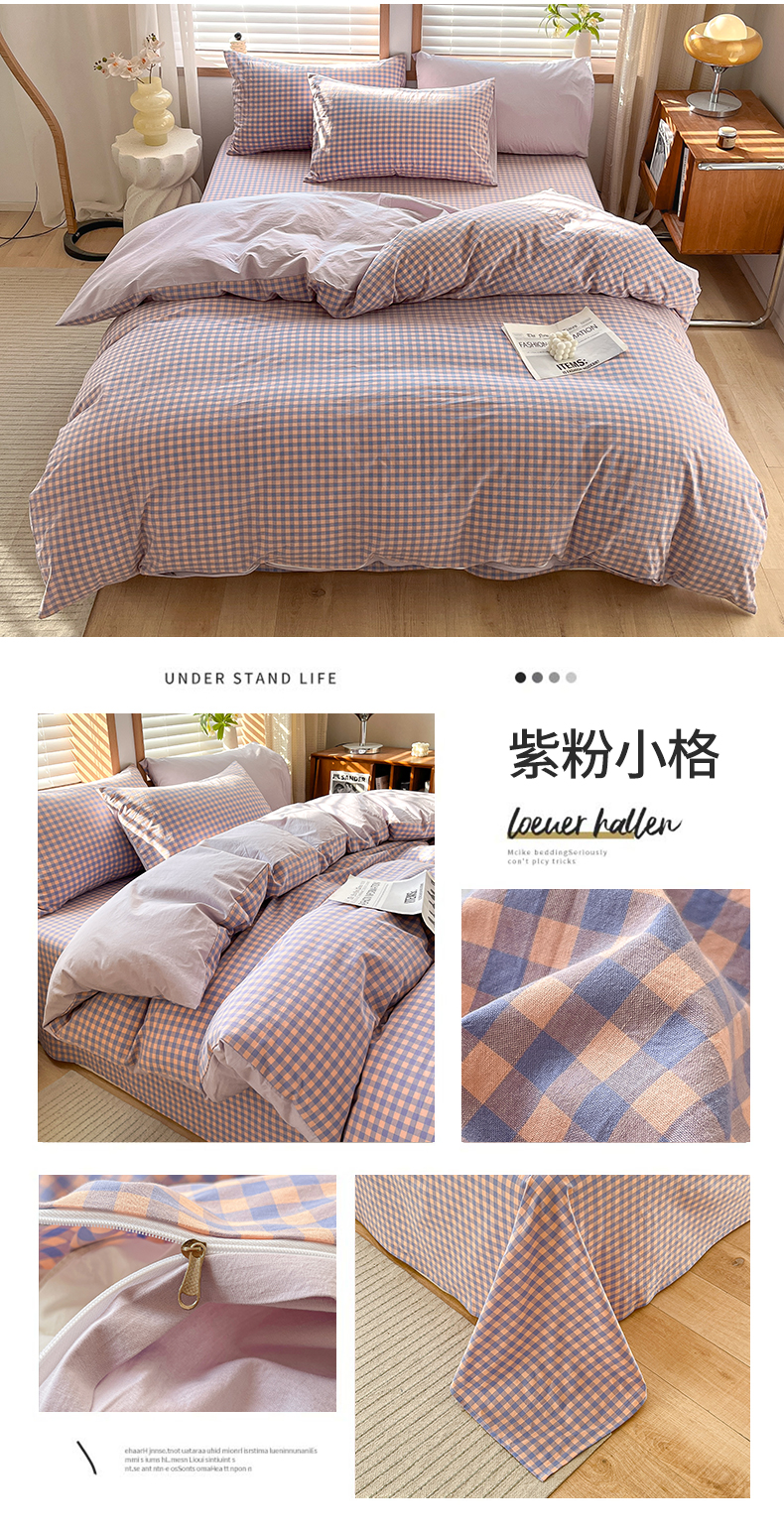 商品名称:启程家纺 2026新款全棉A类水洗棉多规格四件套单品-四件套 紫粉小格