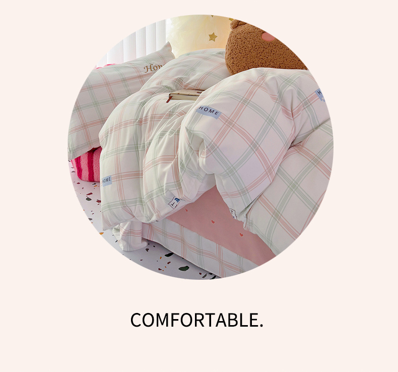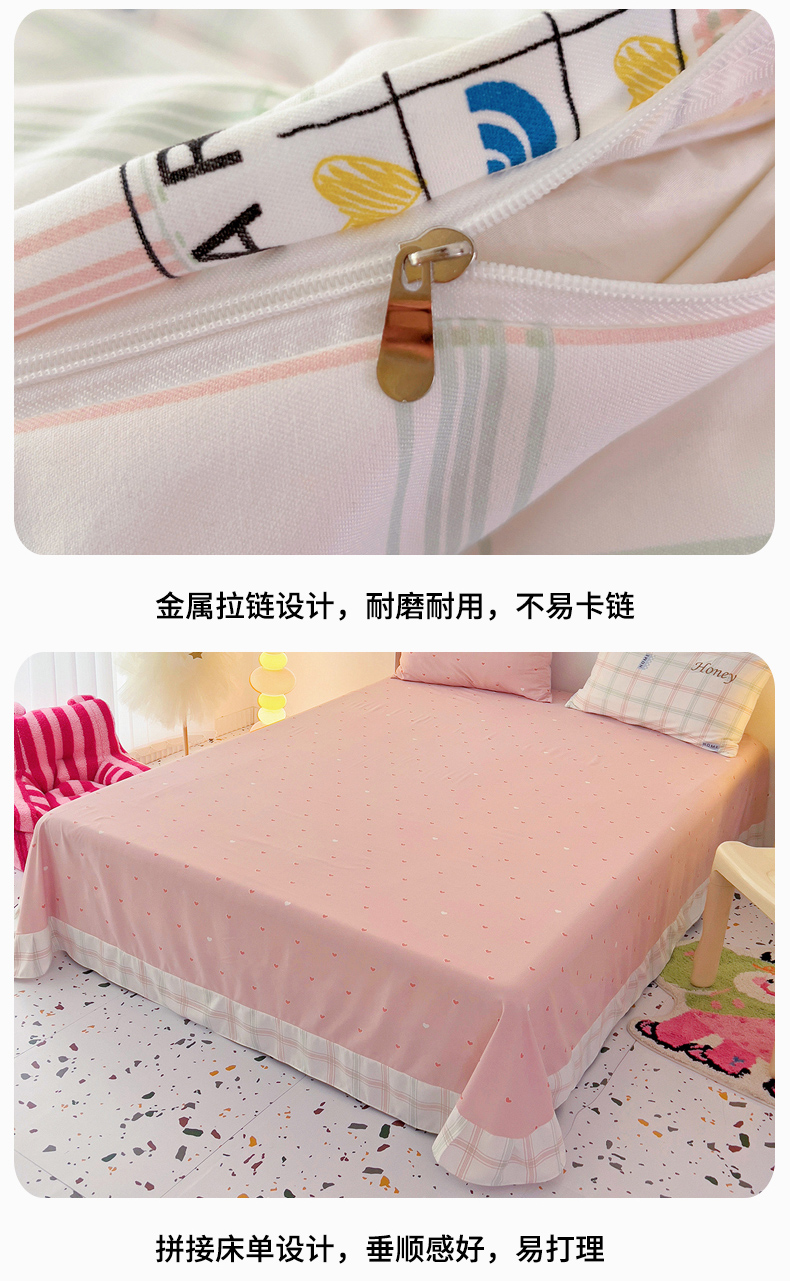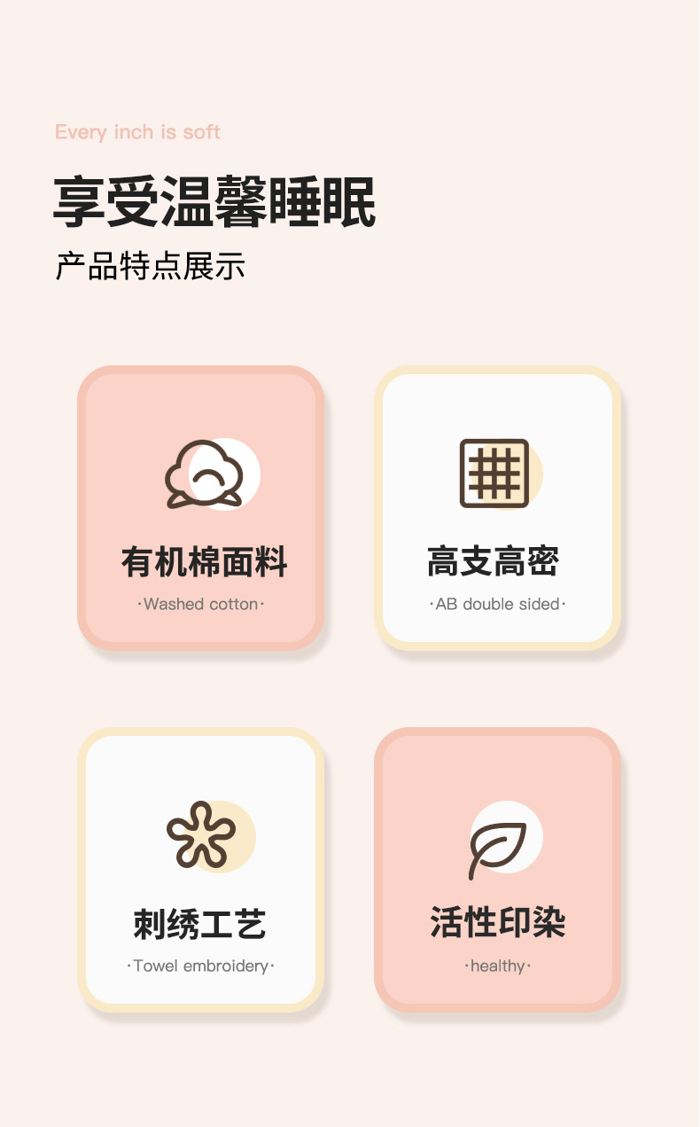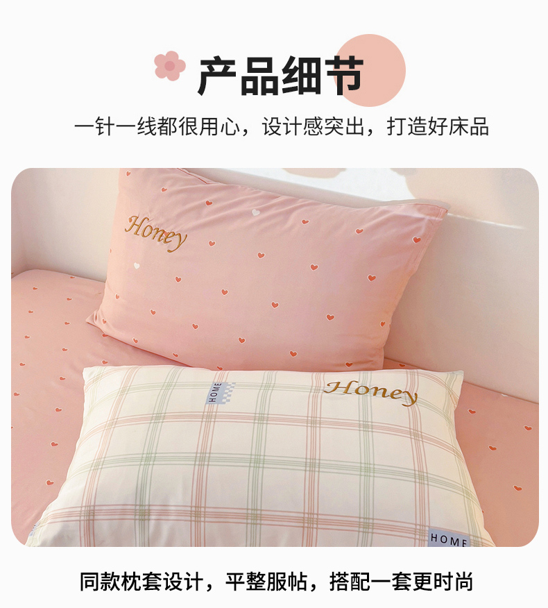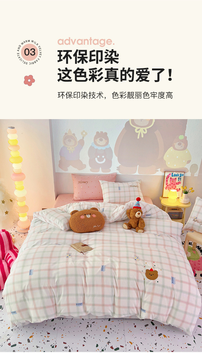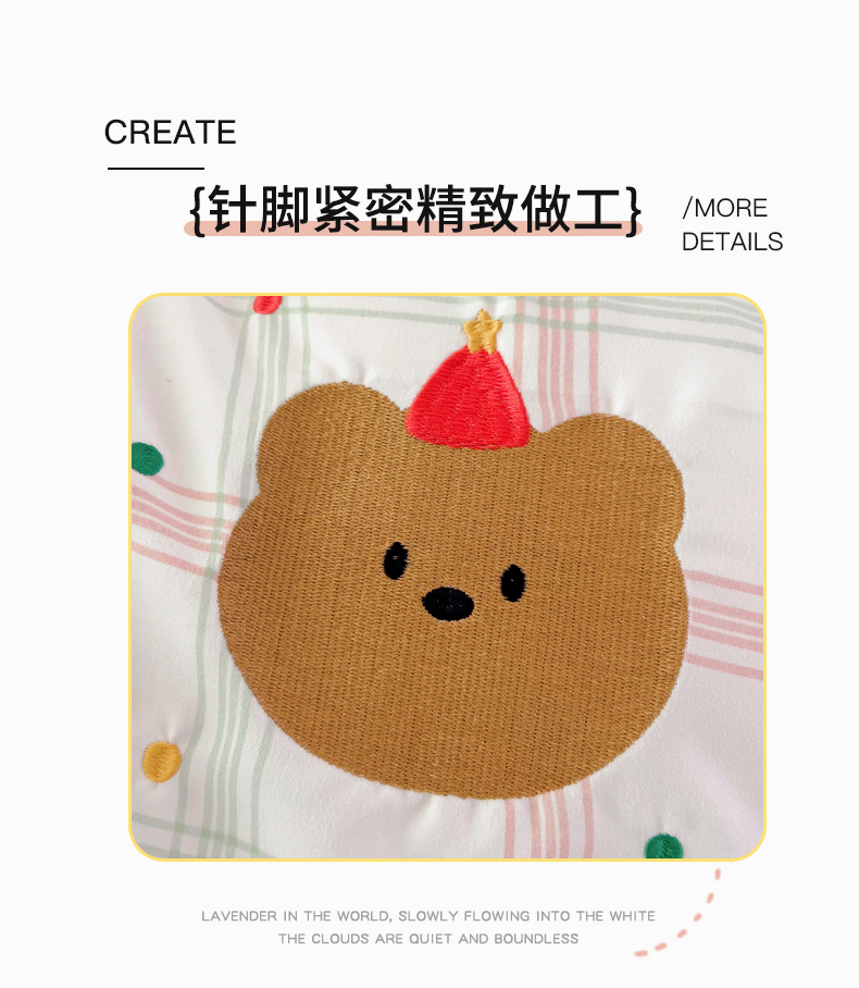 商品名称:(总)庭笙 新款A类双股有机棉卡通刺绣时尚纯色格子四件套-嘟嘟熊系列
