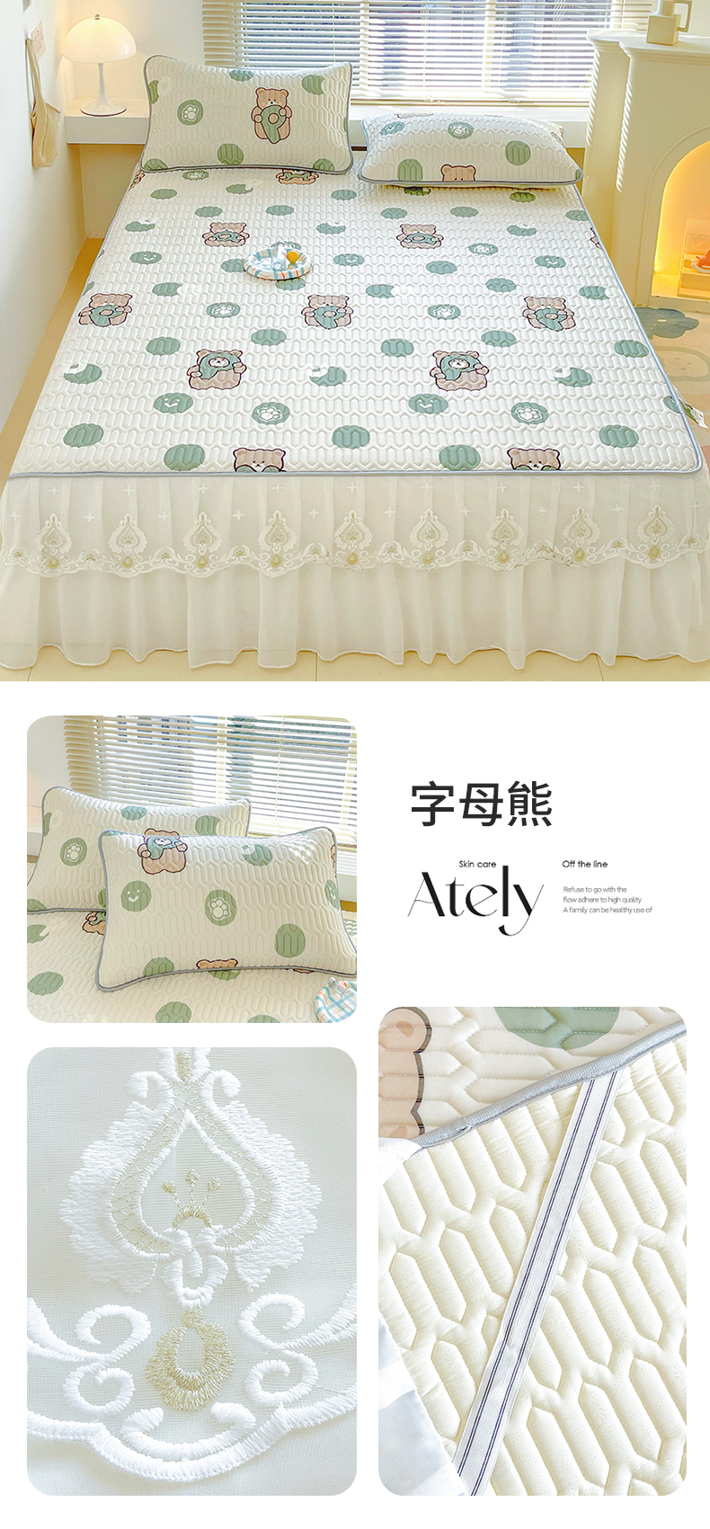 (总)米帛家纺 2024新款A类凉感丝卡通乳胶凉席床裙款,爱心熊灰,爱心熊咖,波点,彩色煤球,繁花,风尚,莓莓果果咖,条纹熊,童心恐龙,小熊伴嫁,星空,字母熊