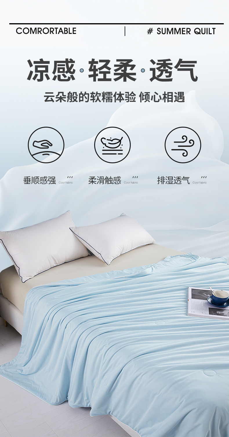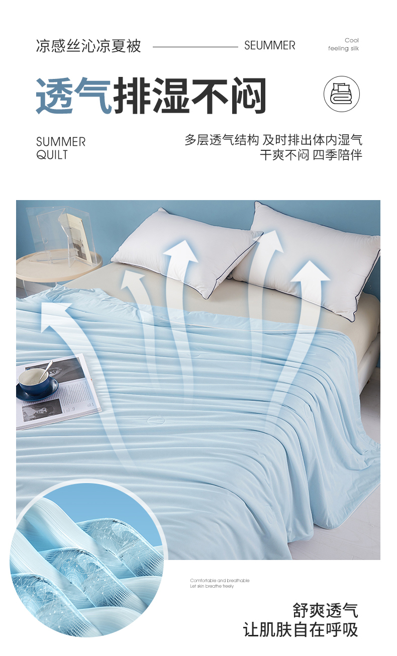 商品名称:圣尔雅家纺 2025新款凉感丝夏被 浅兰