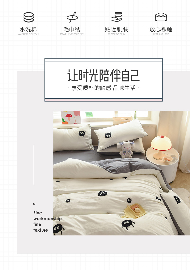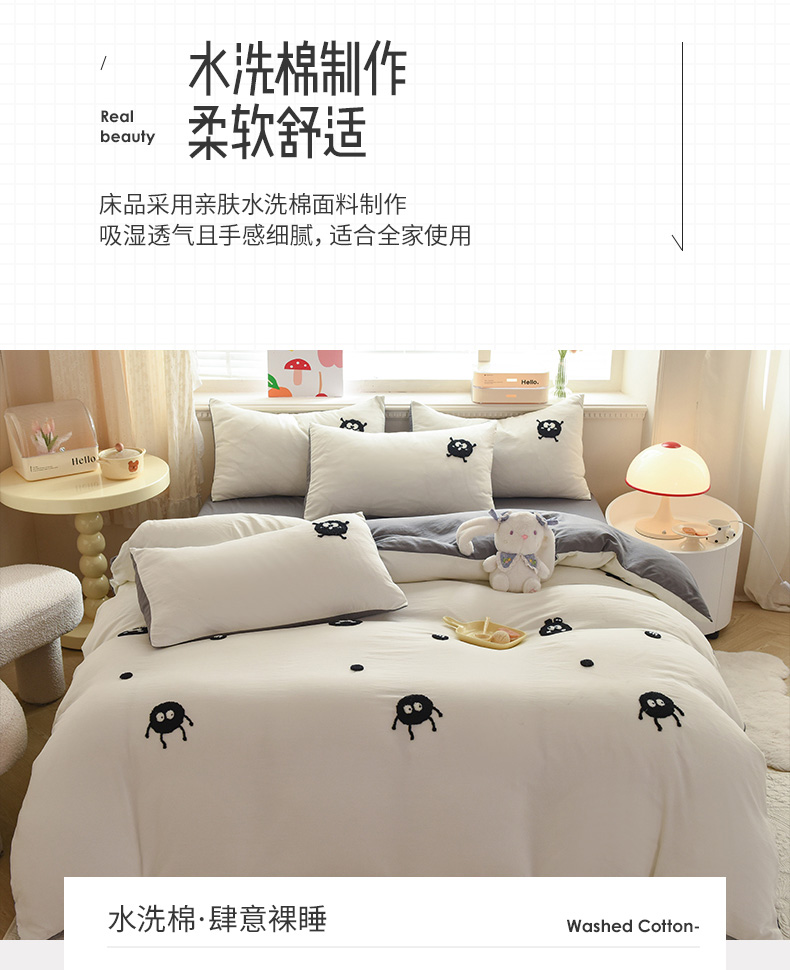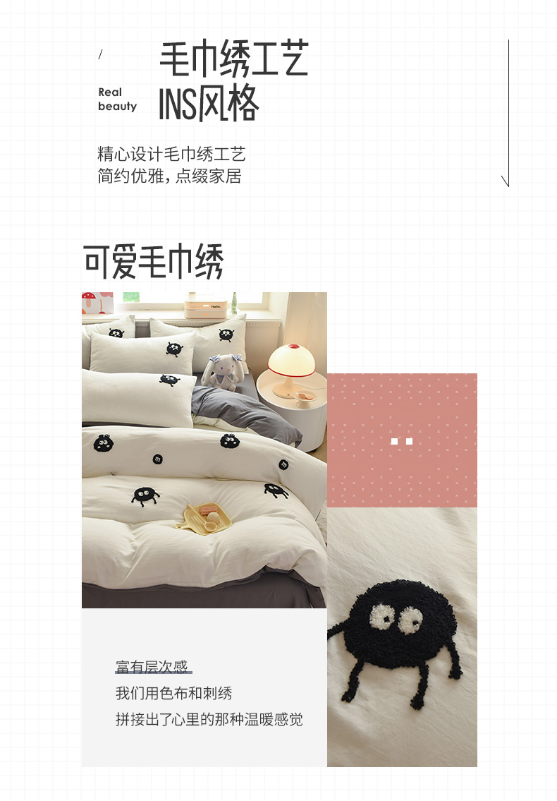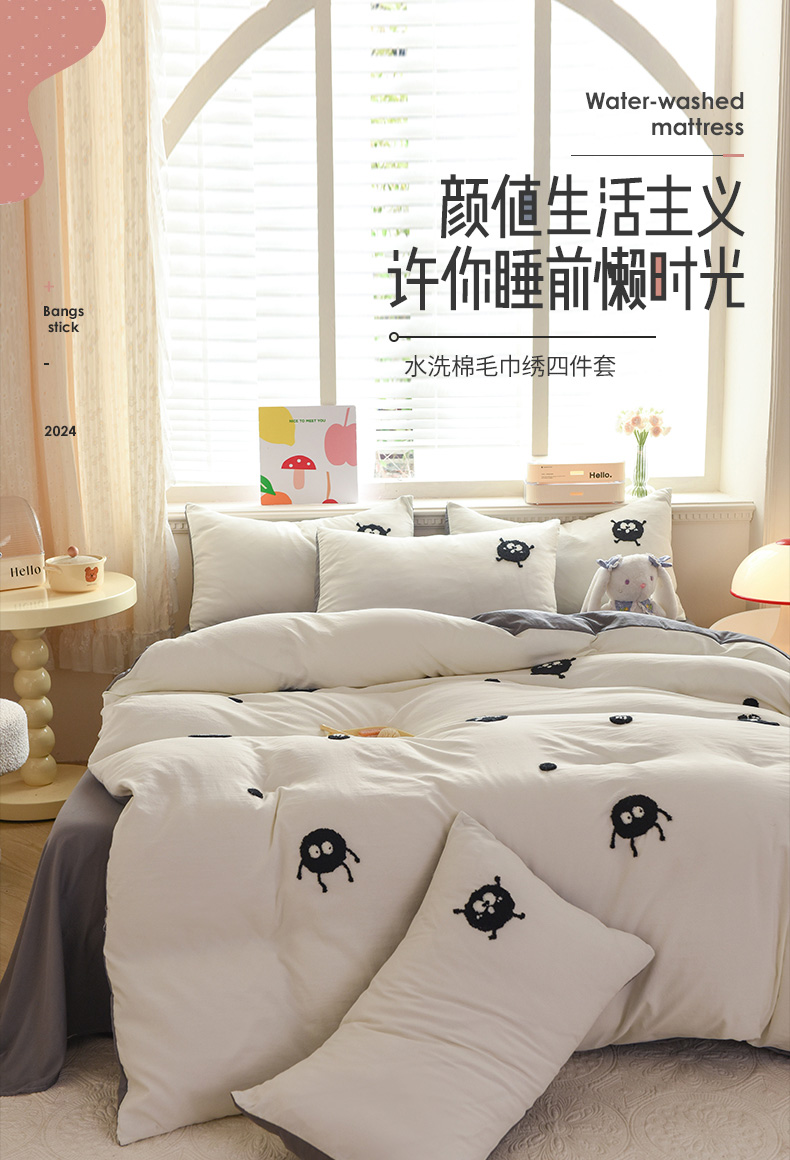 当前位置: 91家纺网 > 商品网购 > 床品套件 > 四件套 > 水洗棉四件套 > 莉莉安 2025新款水洗棉毛巾绣四件套-卡哇伊系列 卡哇伊-煤球