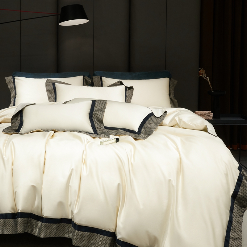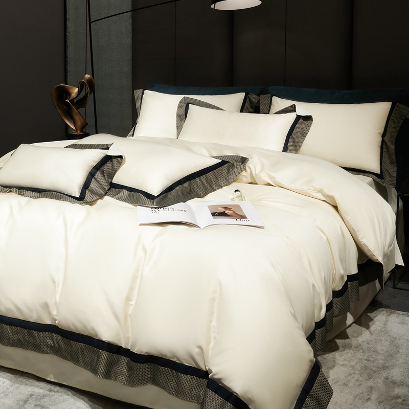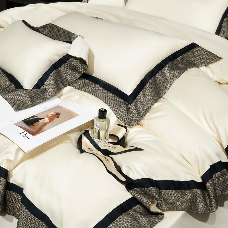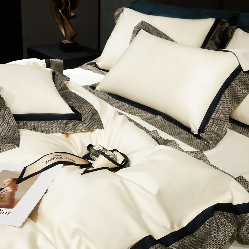 时亿家居 2024新款100支色织拼接长绒棉四件套-邂逅 邂逅奶香槟
