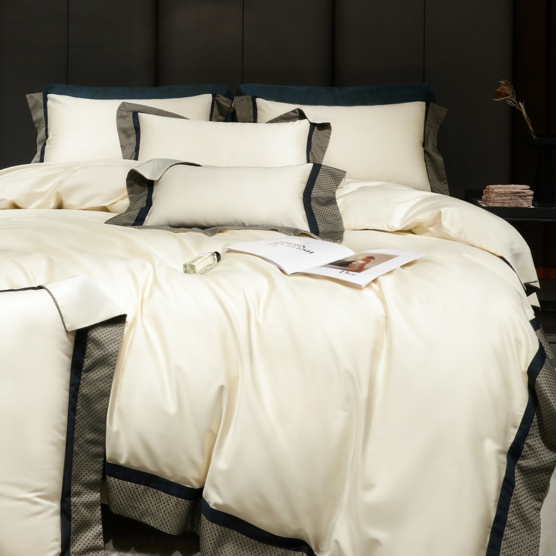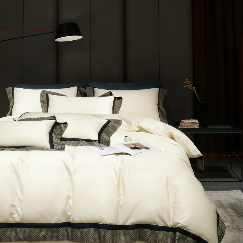 商品名称:时亿家居 2024新款100支色织拼接长绒棉四件套-邂逅 邂逅奶香槟