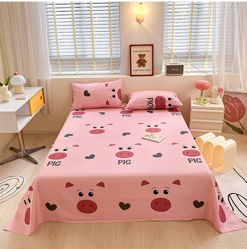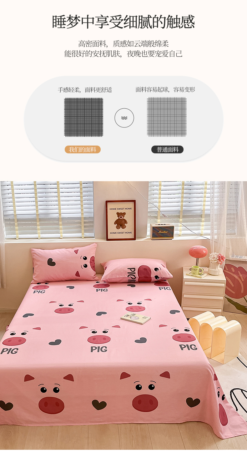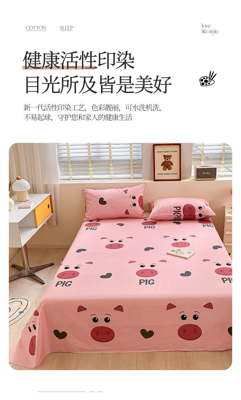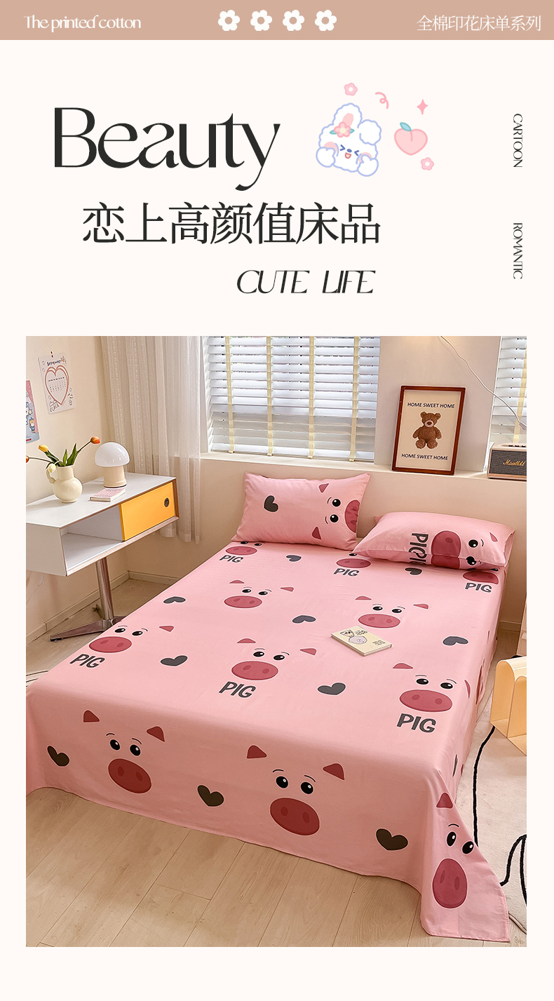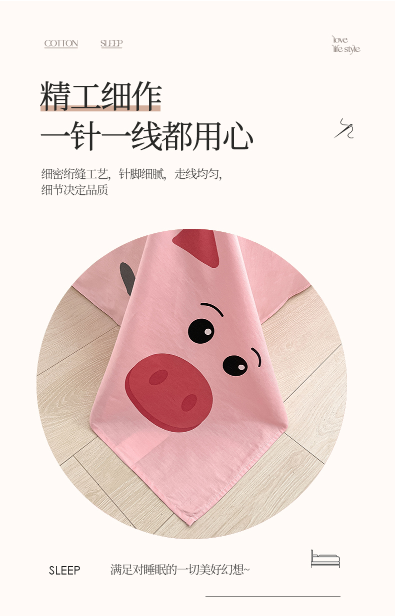 蓝邻 2024新款全棉单品系列单床单 可爱猪猪