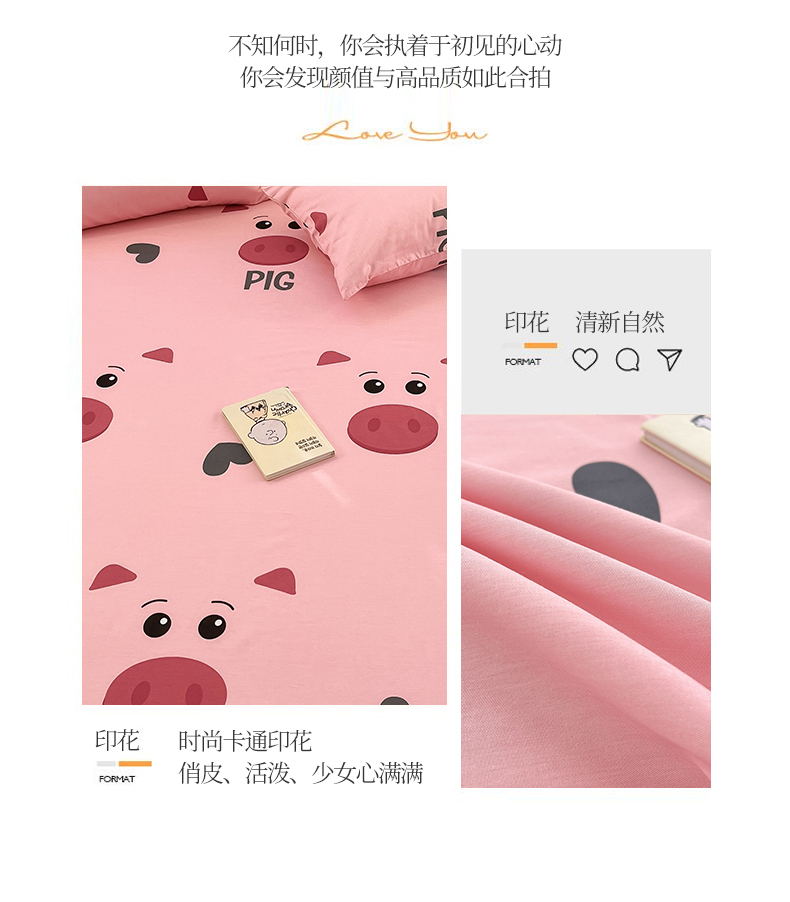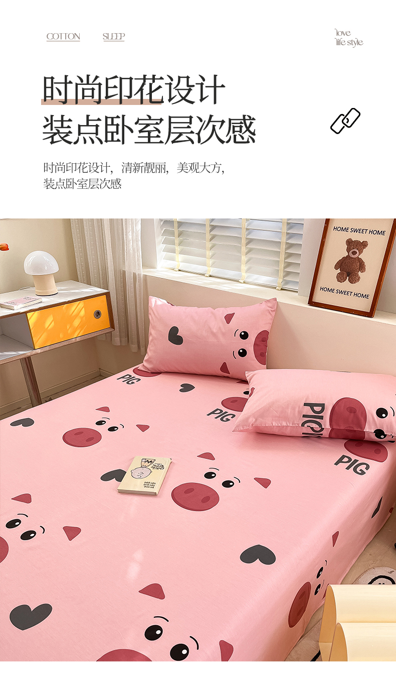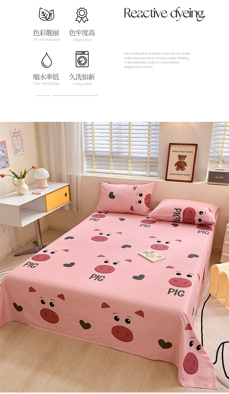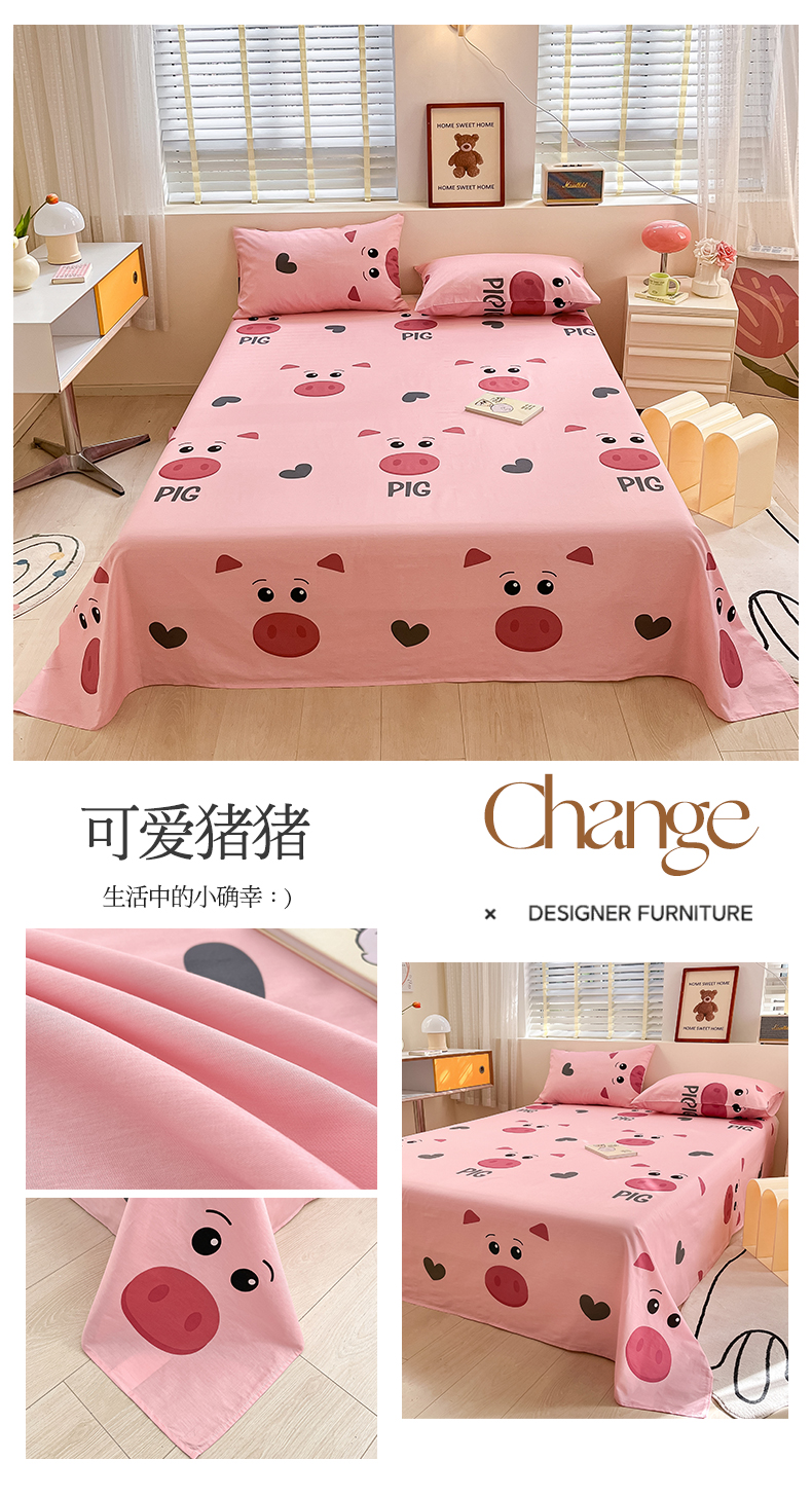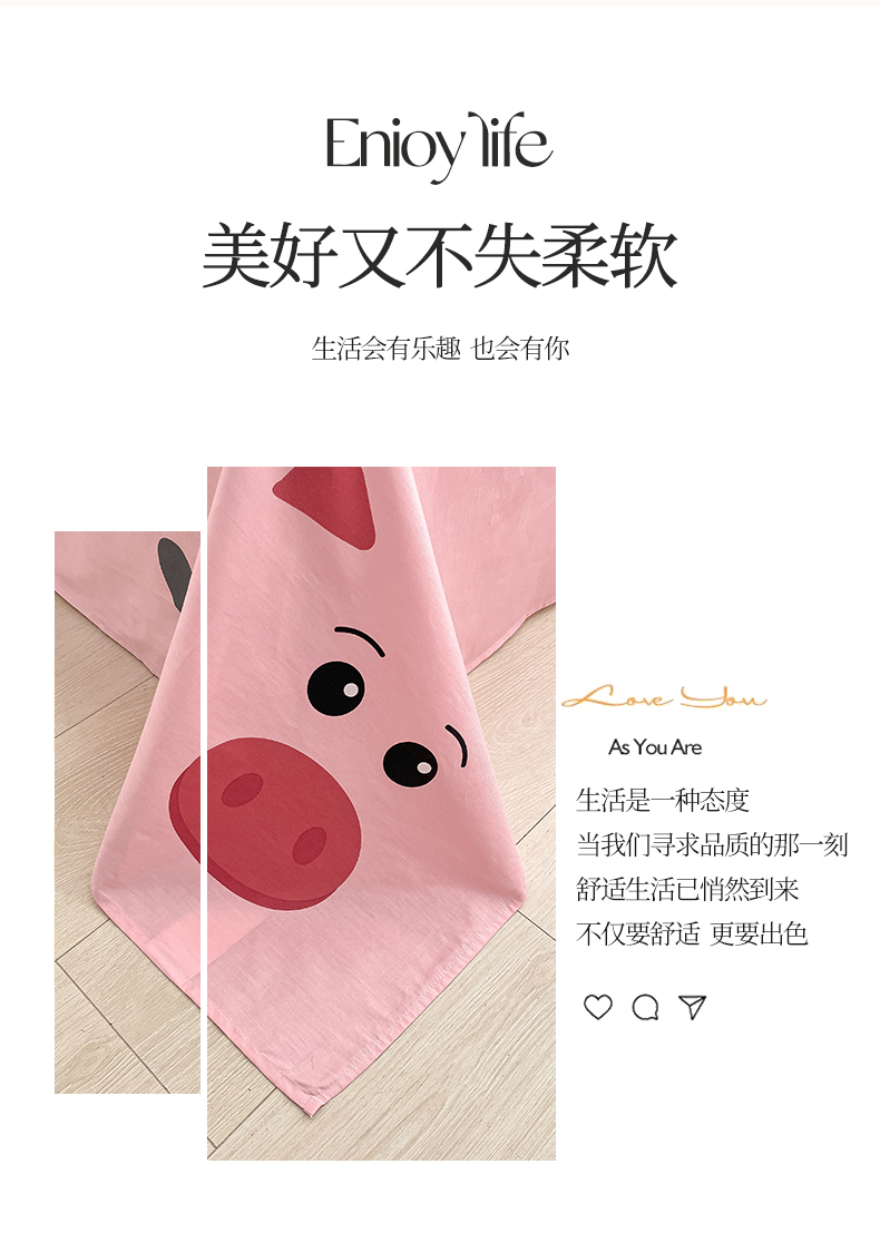 蓝邻 2024新款全棉单品系列单床单 可爱猪猪