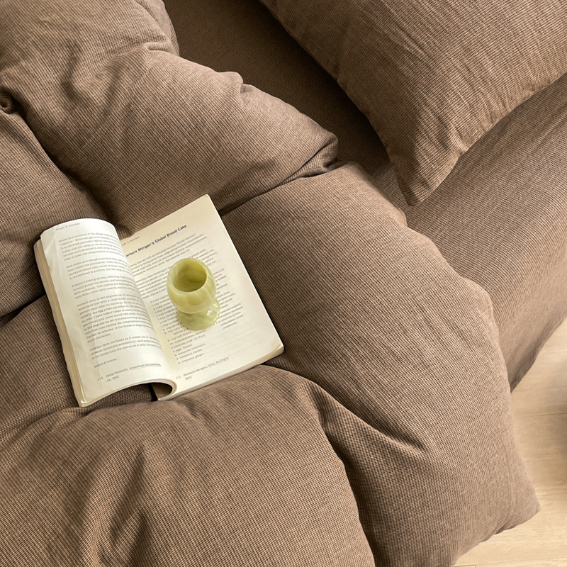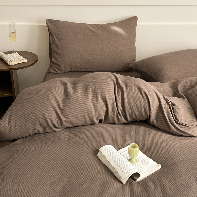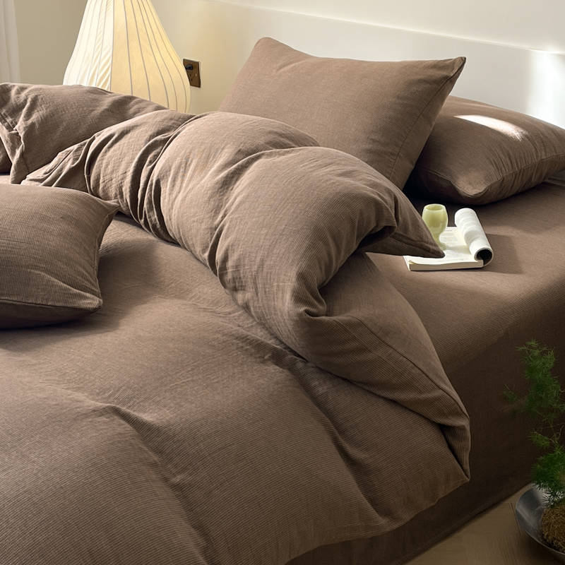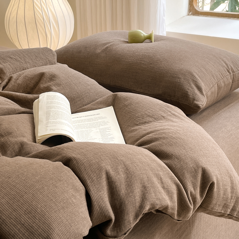 睡棉坊 2024新款全棉色织提花双层纱复古单被套 千喜格-红咖