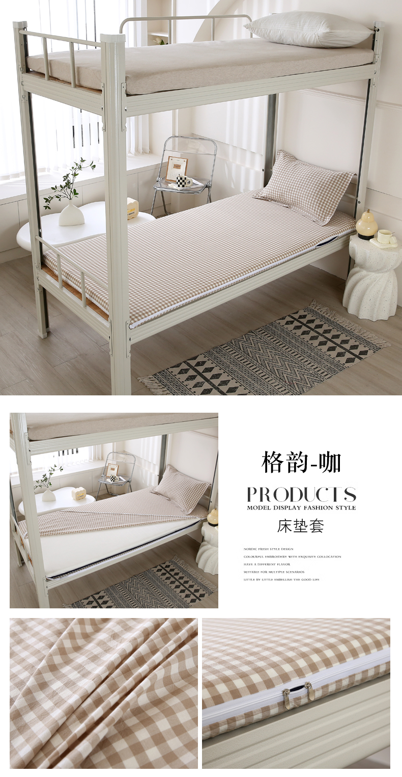 • 91家纺网 家纺一手货源 找家纺 凌云家纺 2025新款A类全棉水洗棉床垫套 格韵-咖
