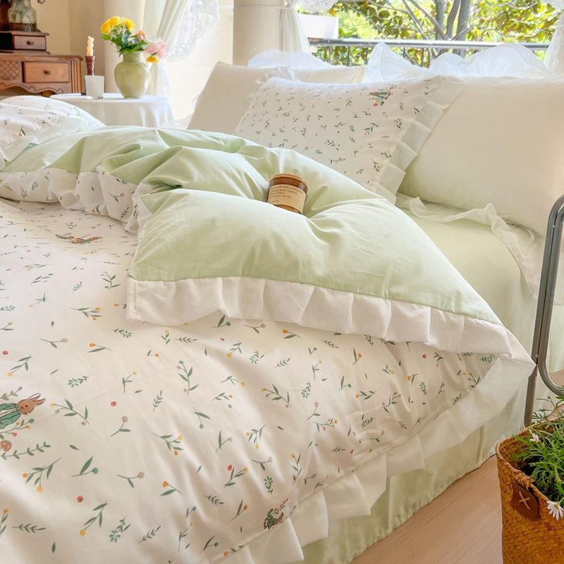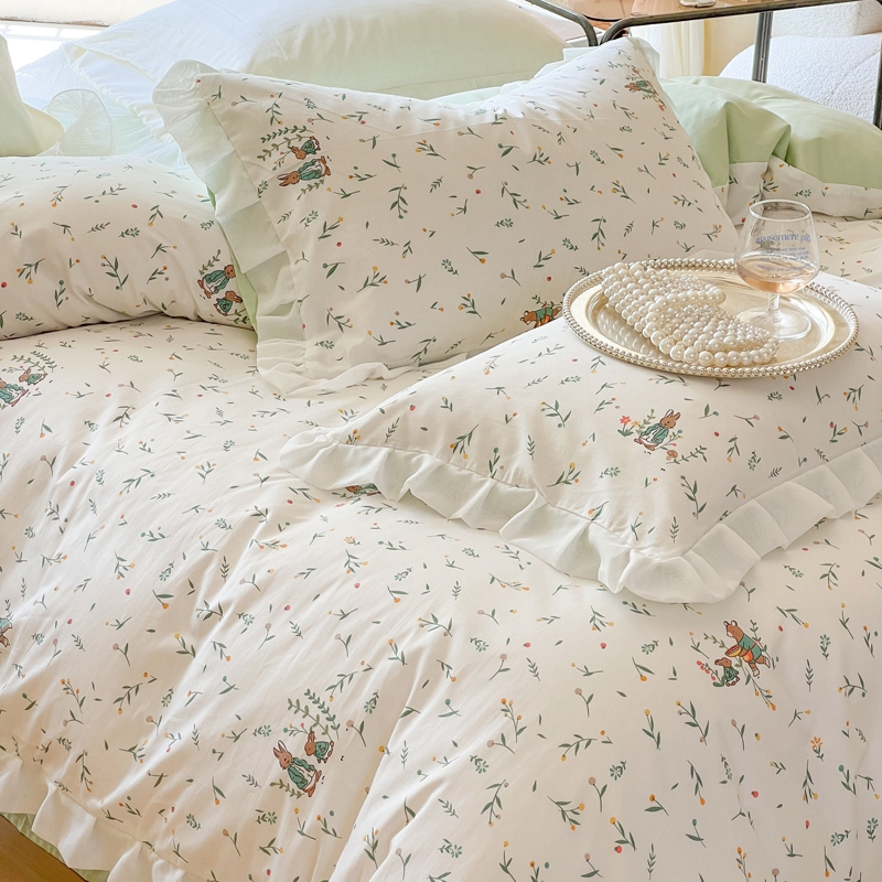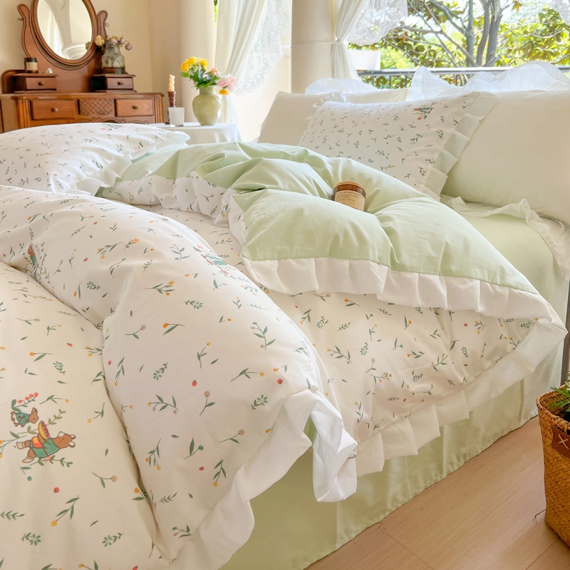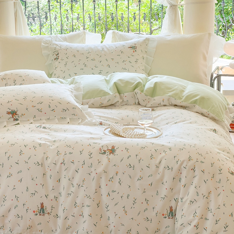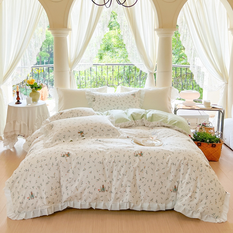 商品名称:乐童家纺 2024新款13372全棉雪纺花边四件套直播热款 春天里