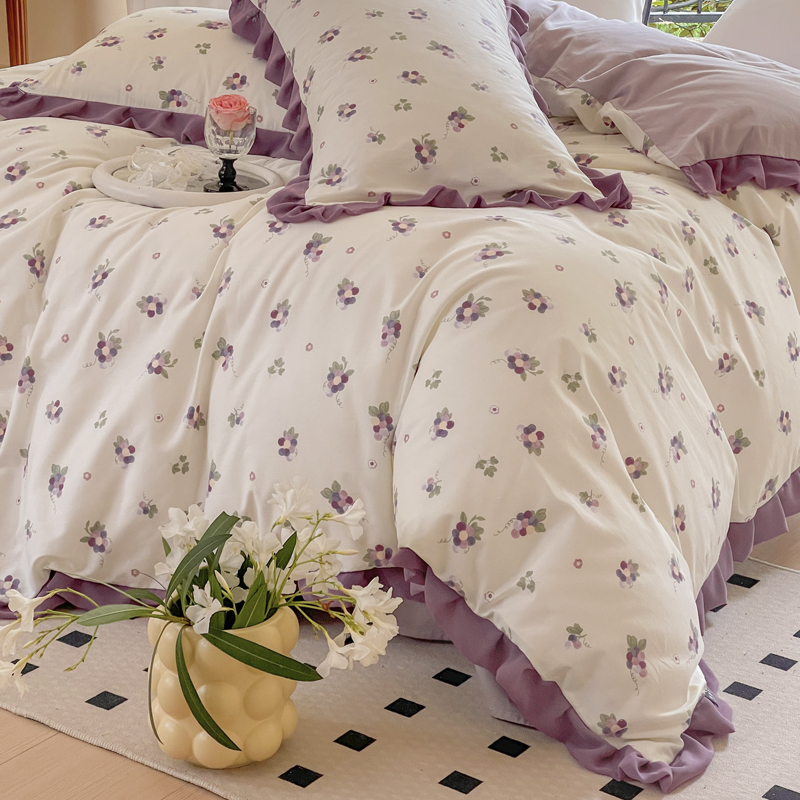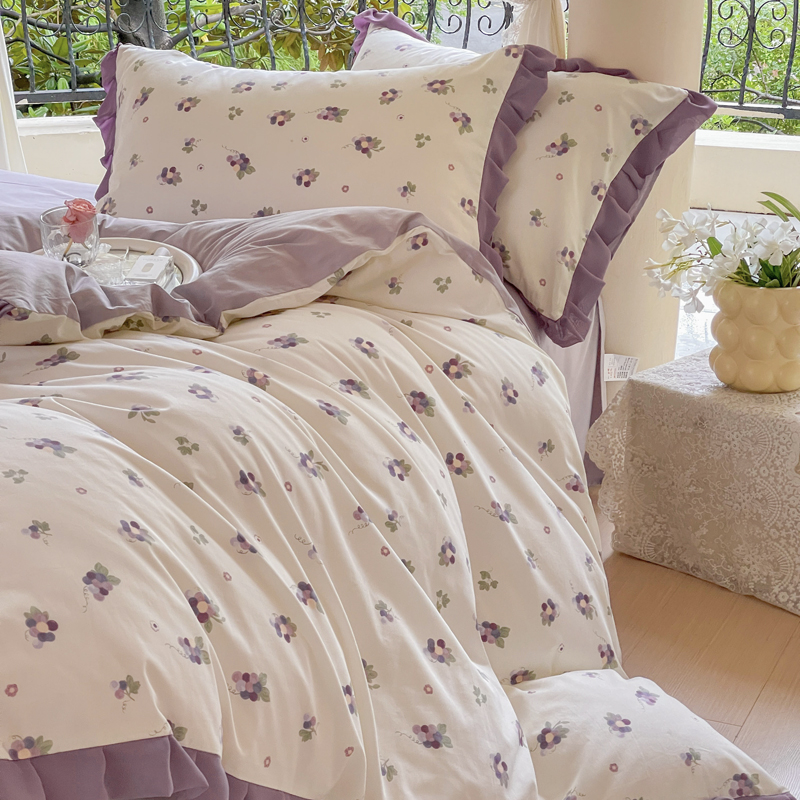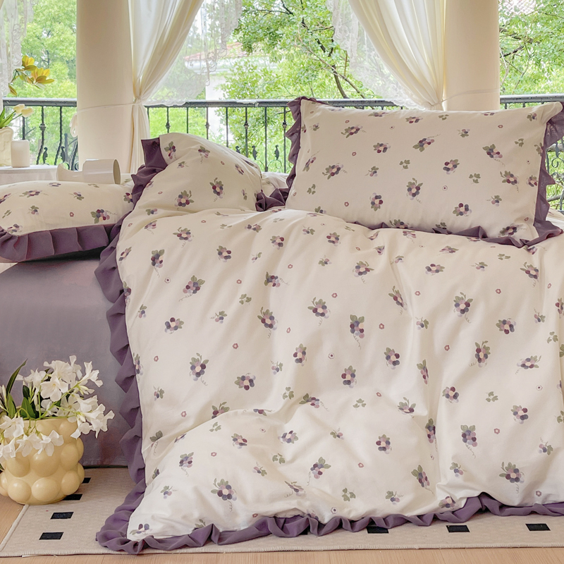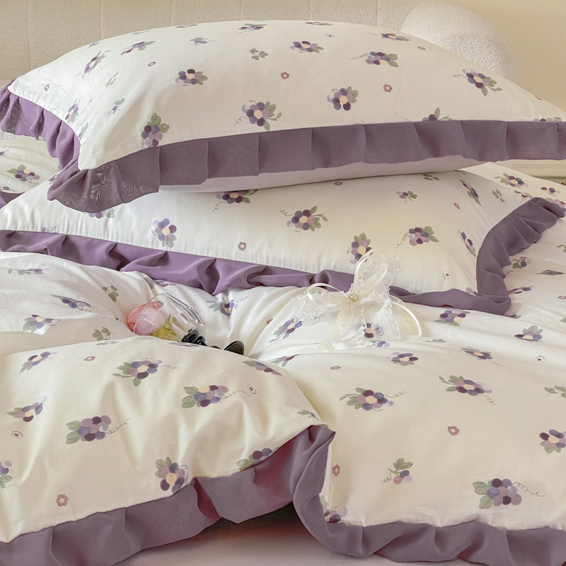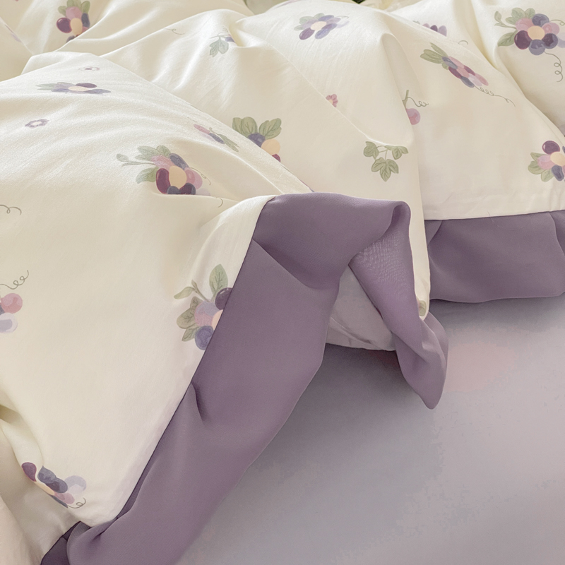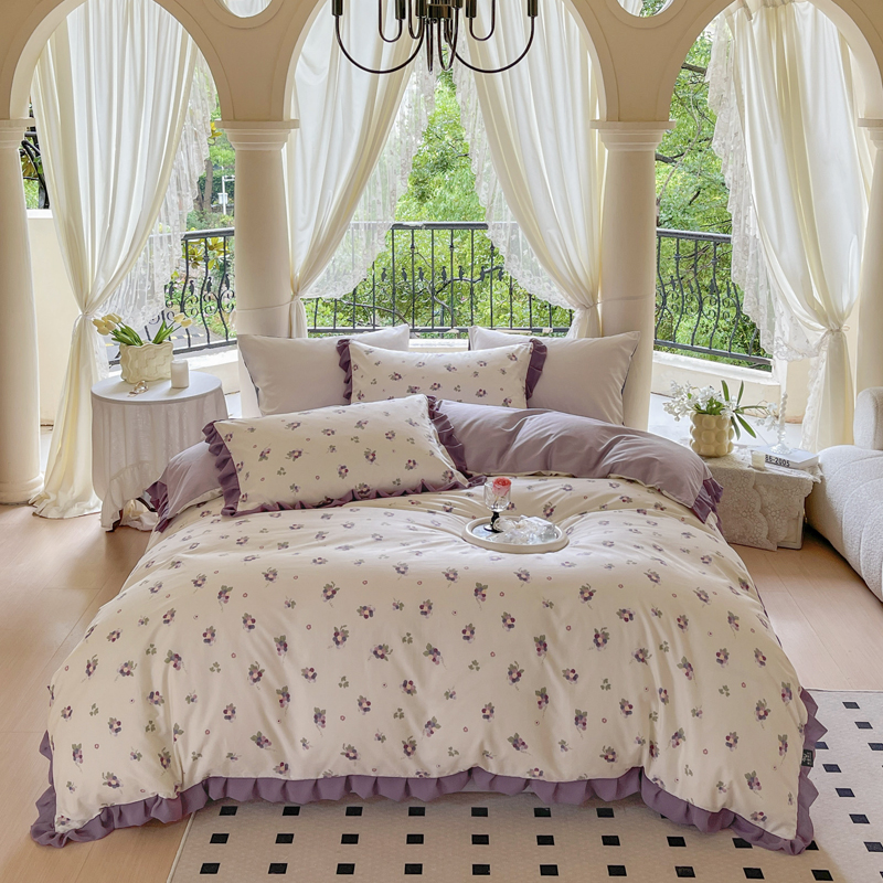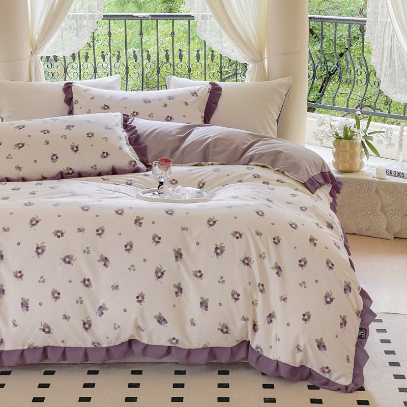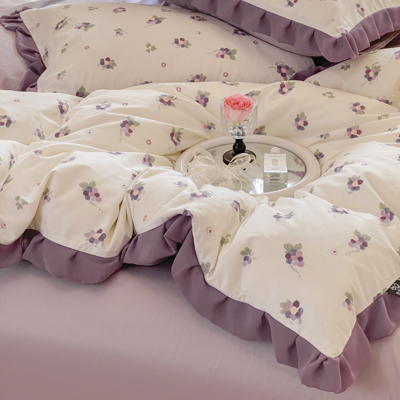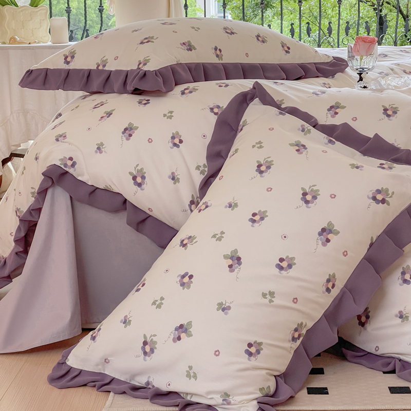商品名称:乐童家纺 2024新款13372全棉雪纺花边四件套直播热款 紫葡萄